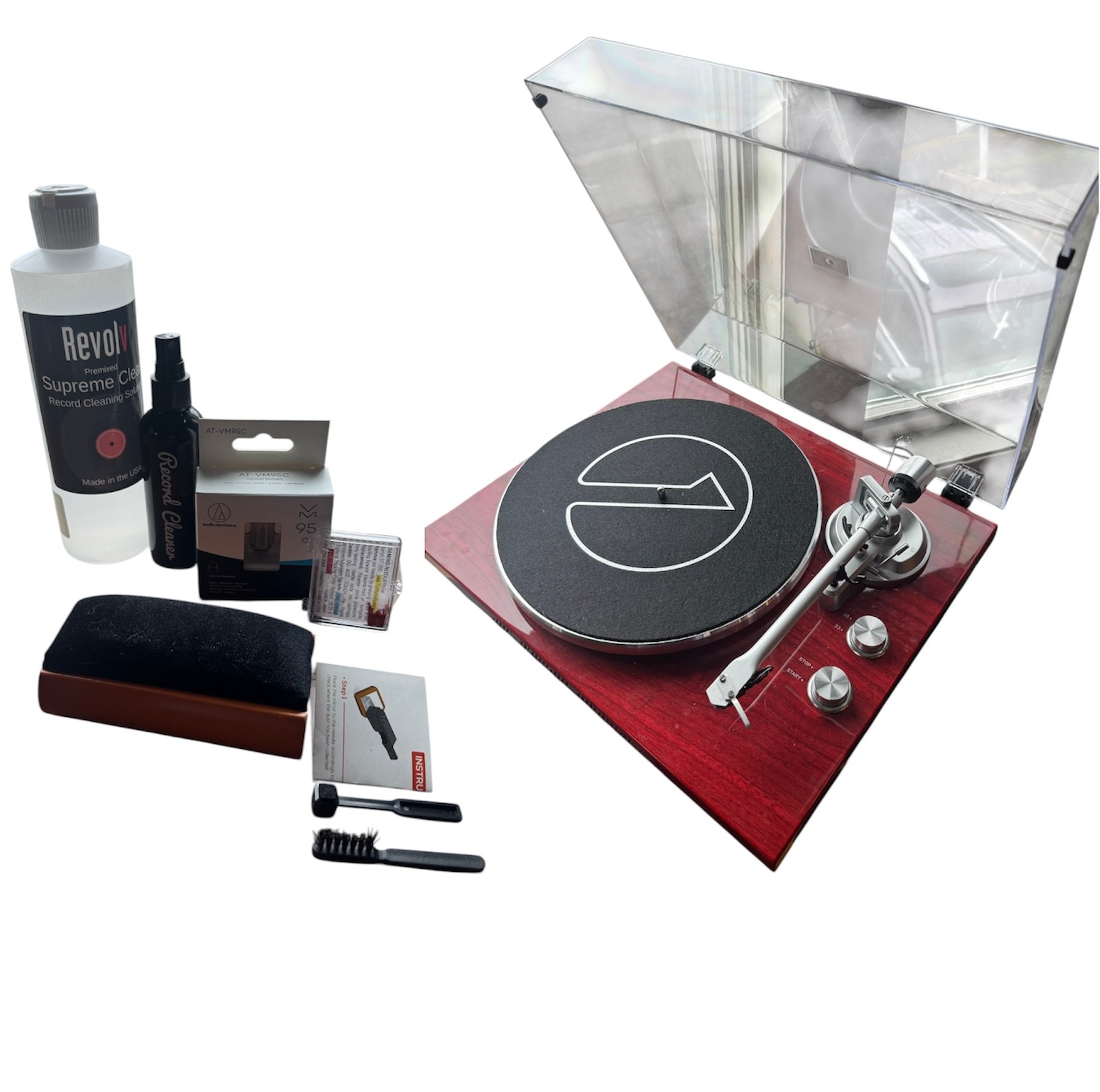 Included Accessories: “Big Fudge” all in one set — velvet brush, vinyl cleaner solution, mini brushes. Also includes 2 additional needles and extra vinyl cleaning solution.