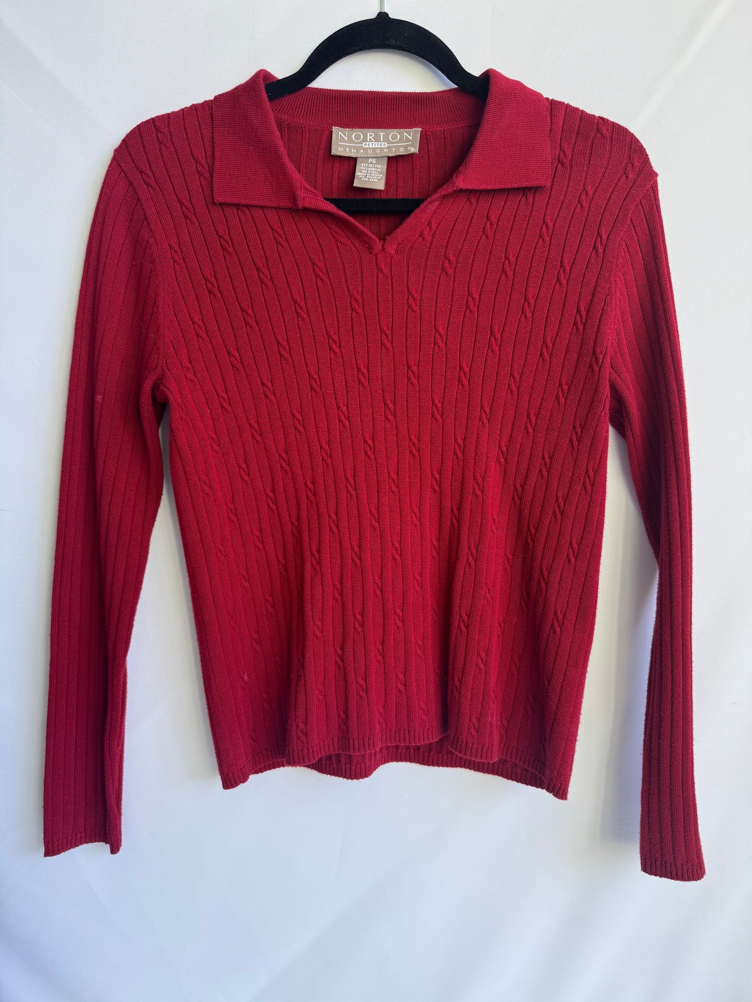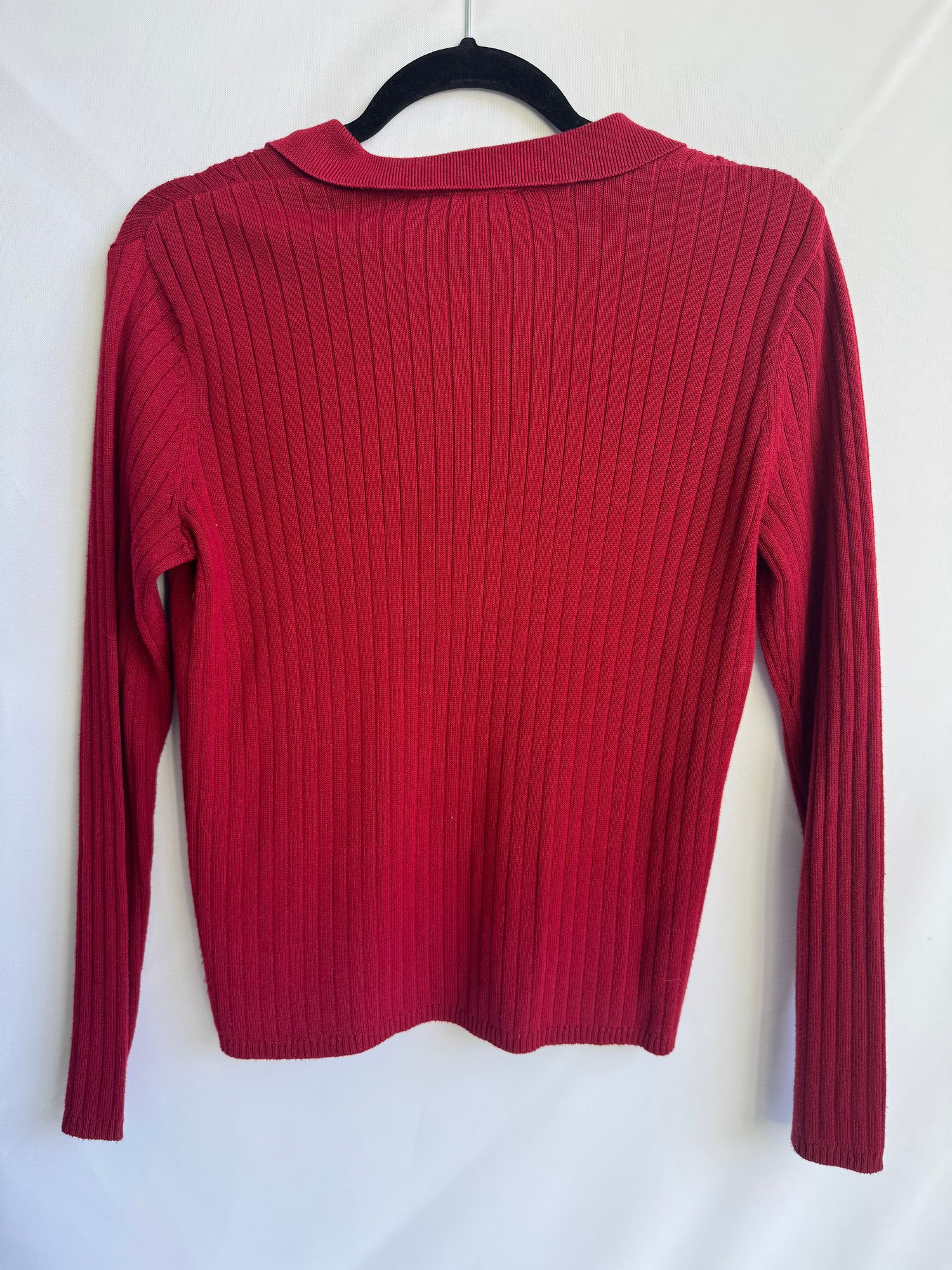 Style: Lightweight, red, collared sweater