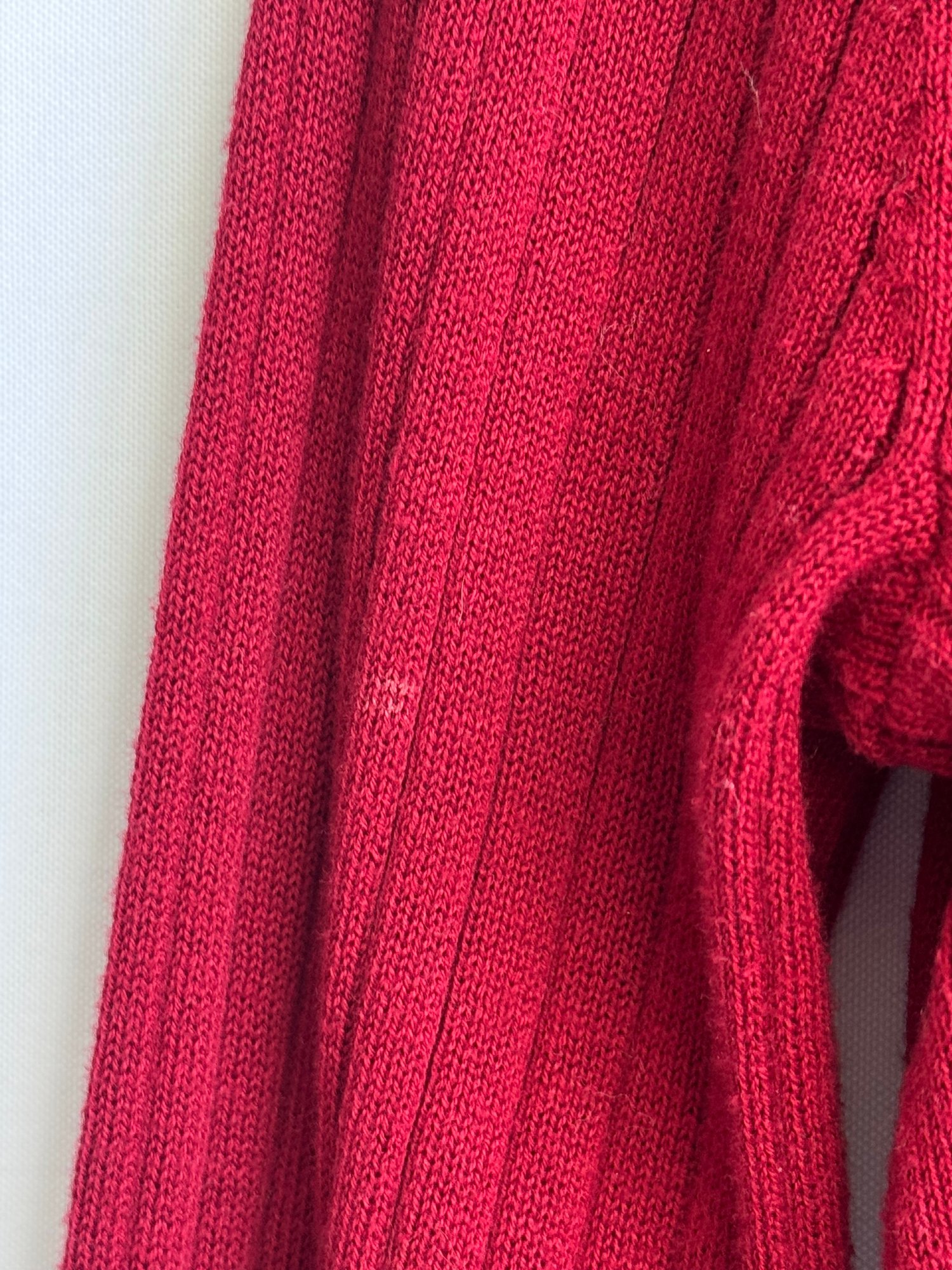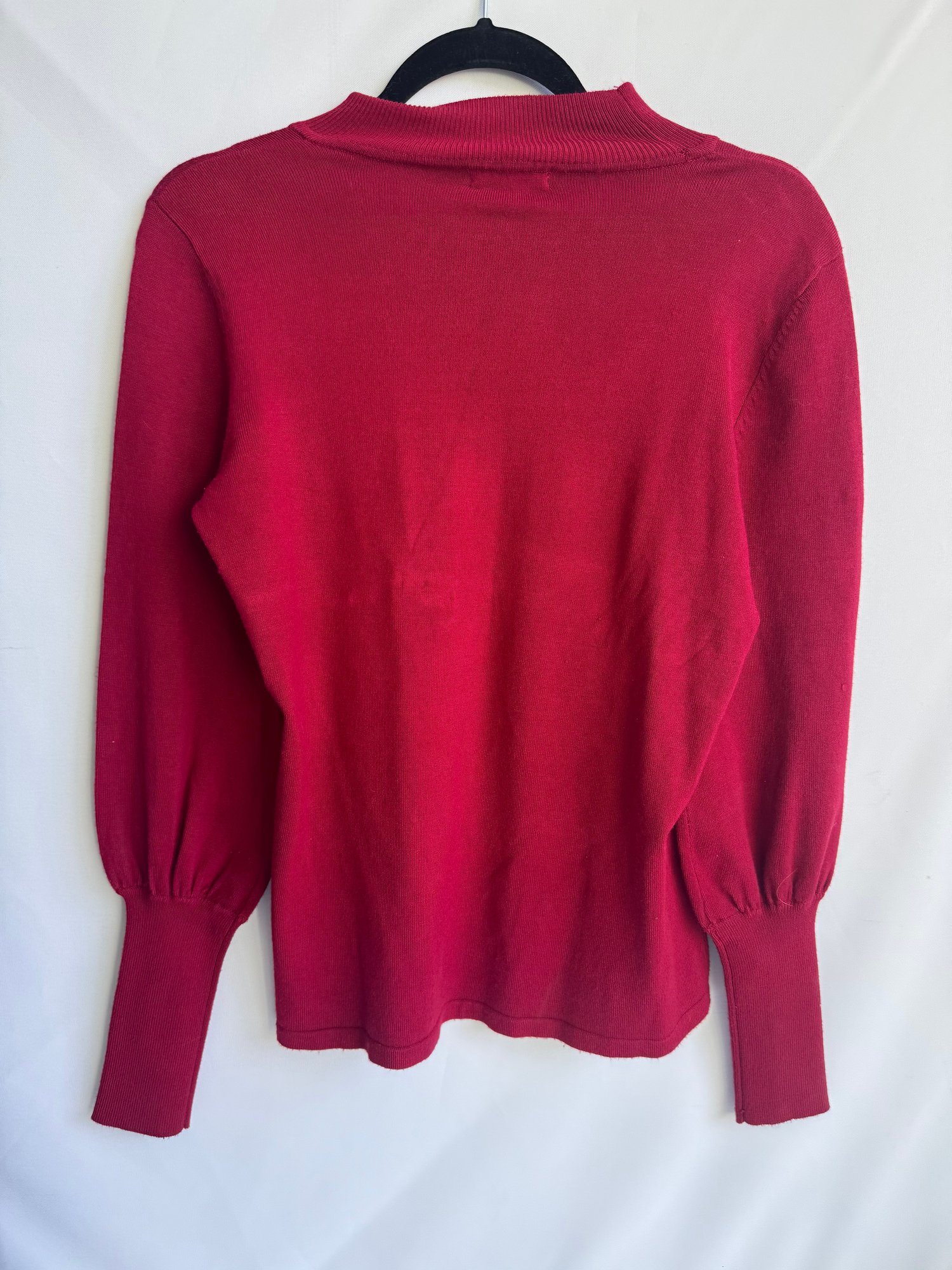 Style: Lightweight, red sweater with long cuffs and ballon sleeves