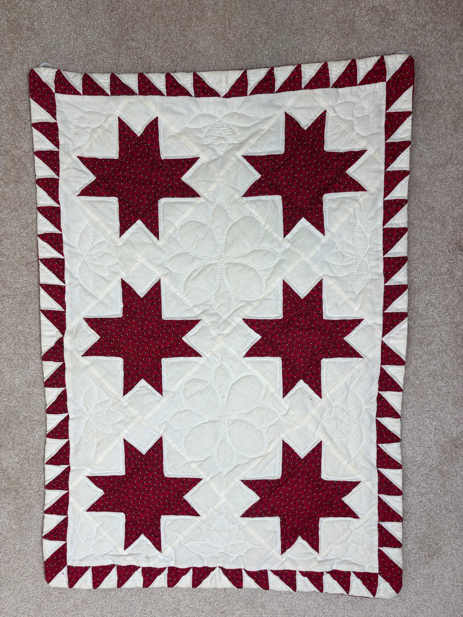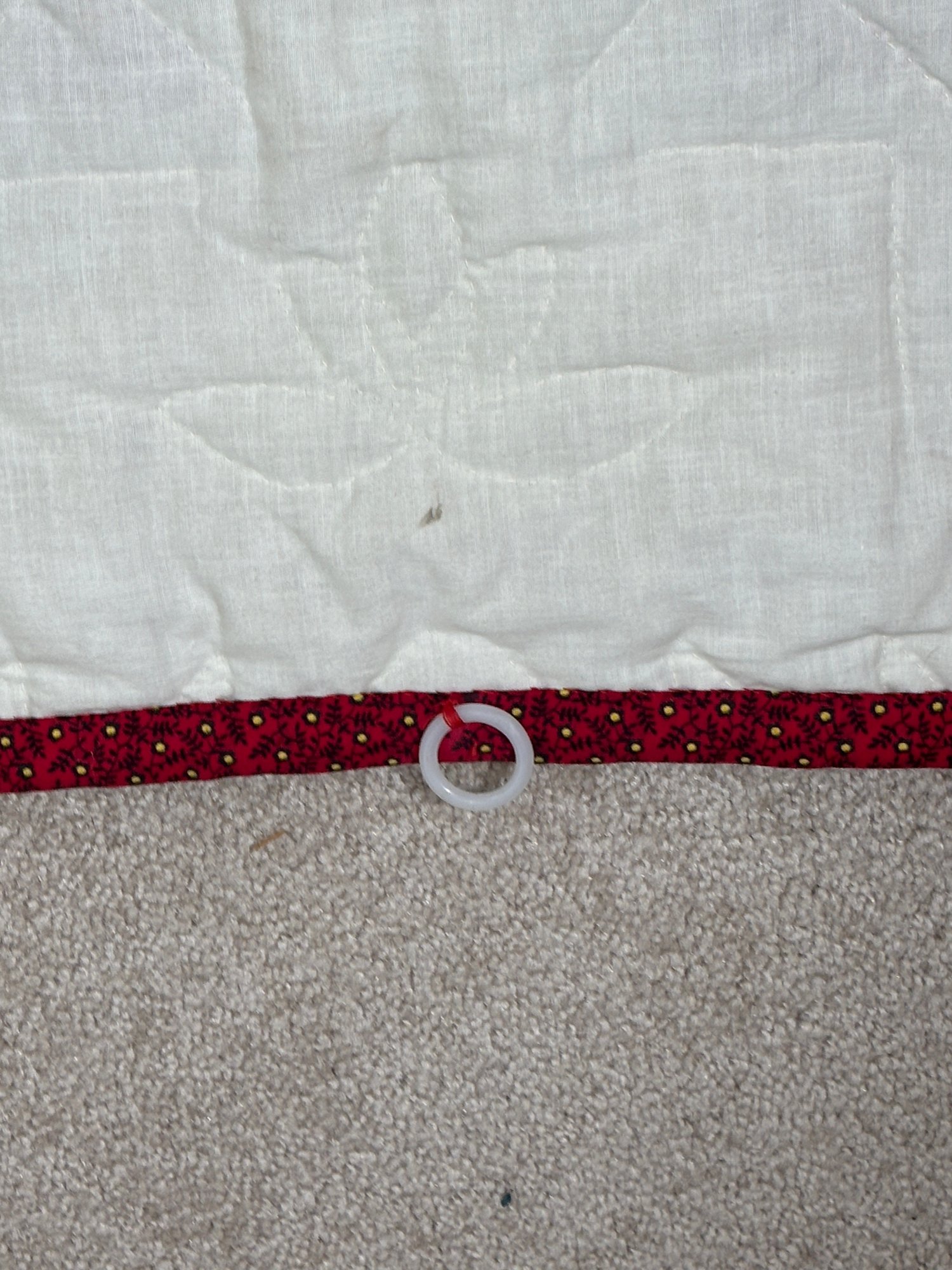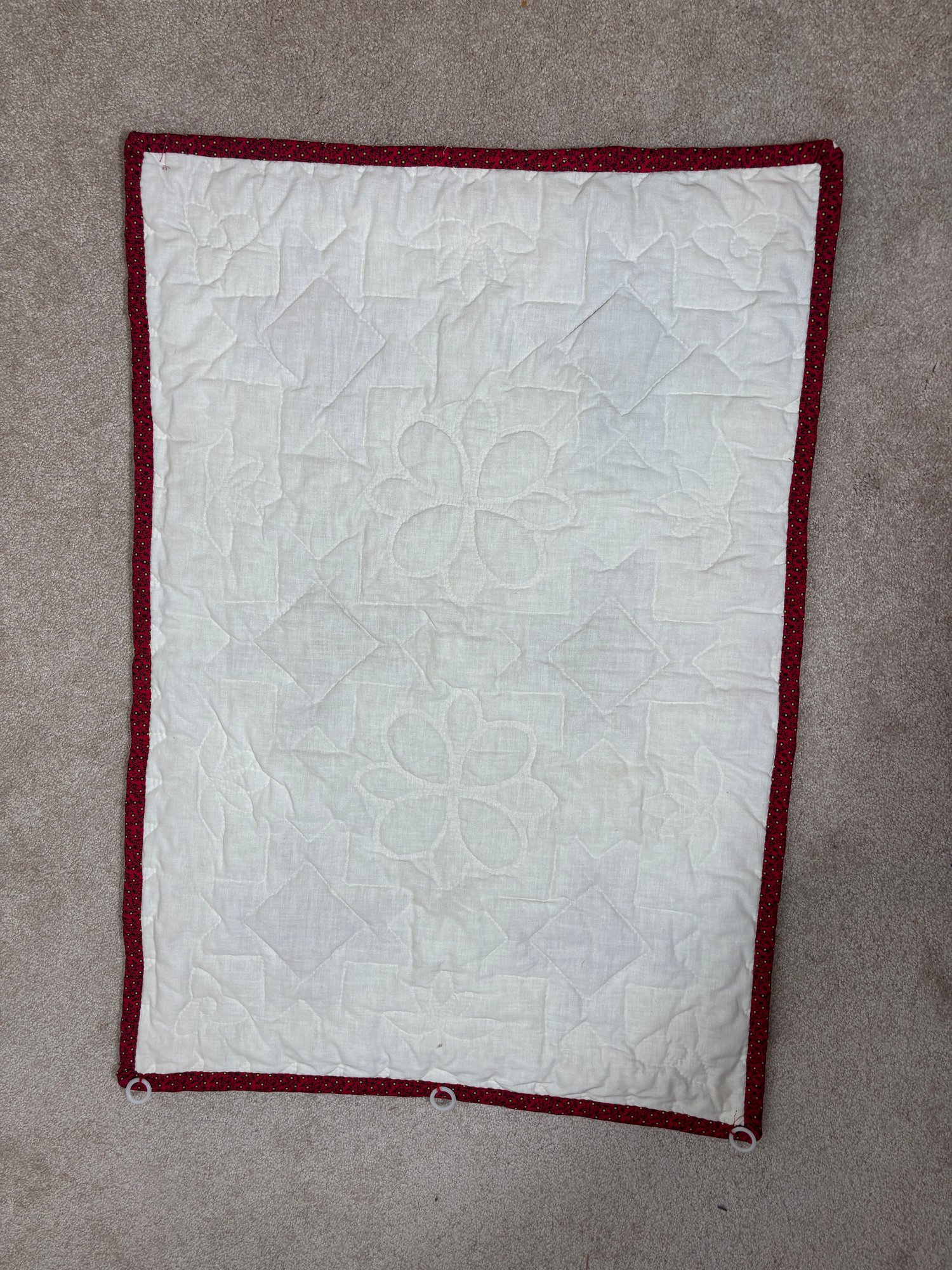 Notes: Quilt has plastic hooks to hang it
