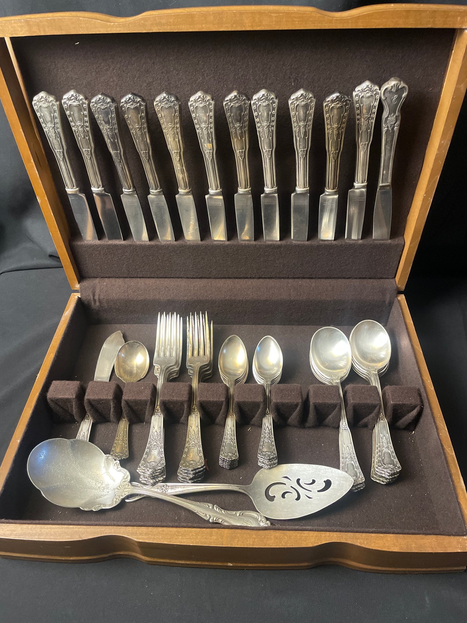 12 knives (1 not matching) 10 soup spoons, 12 spoons,