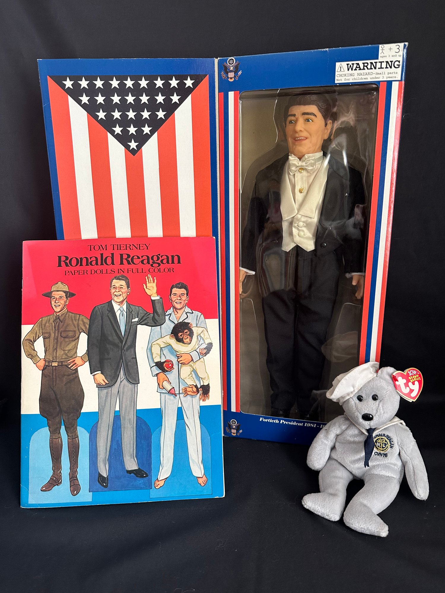 Ronald Reagan Doll, Beanie Baby, And Book (gbm1)