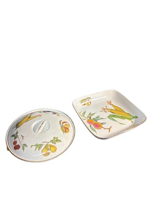 Royal Worcester casserole and serving dishes Dimensions of regular serving dishes 10.5 inches long. Casserole serving dish dimensions 10.5 inches long