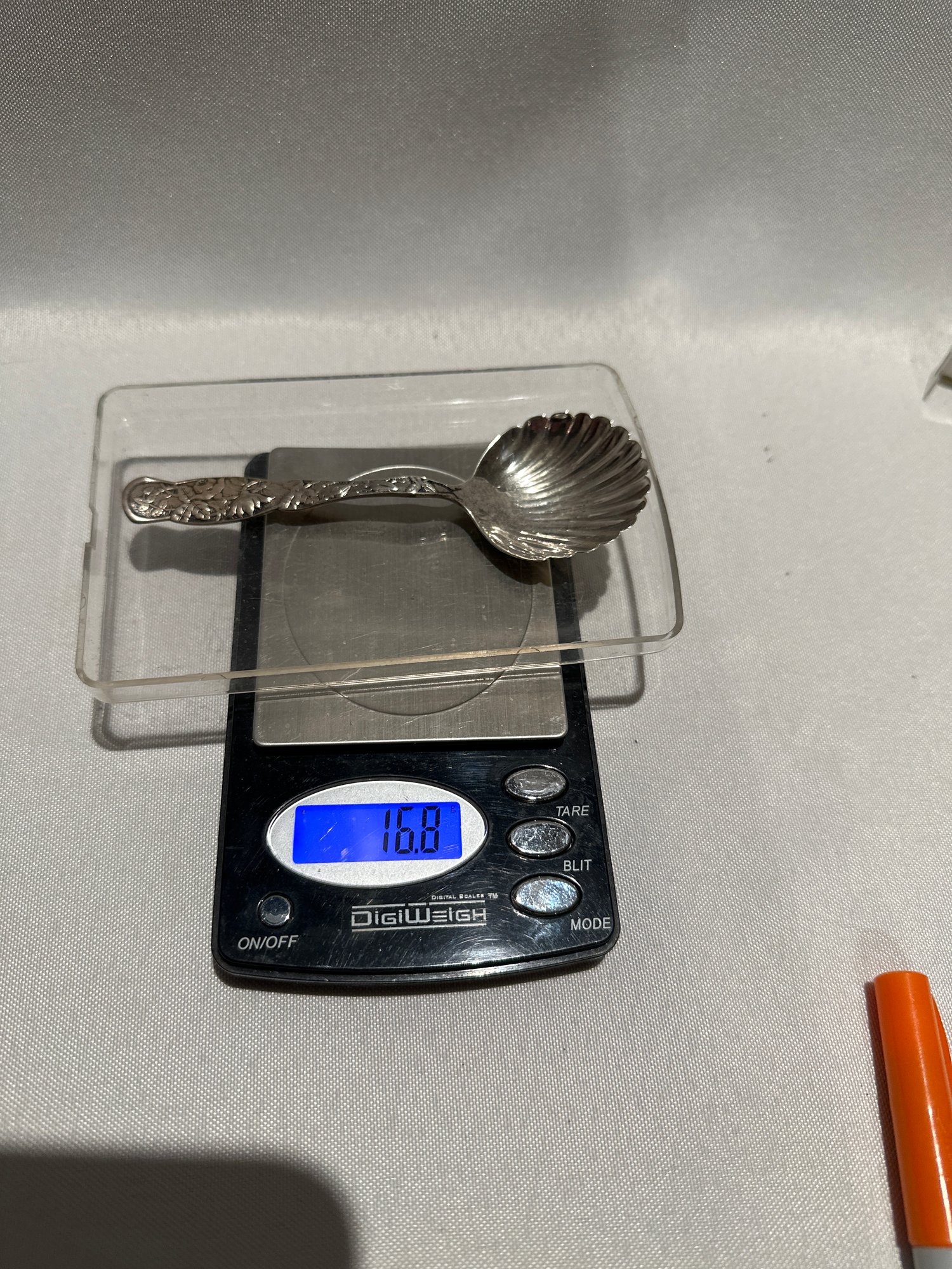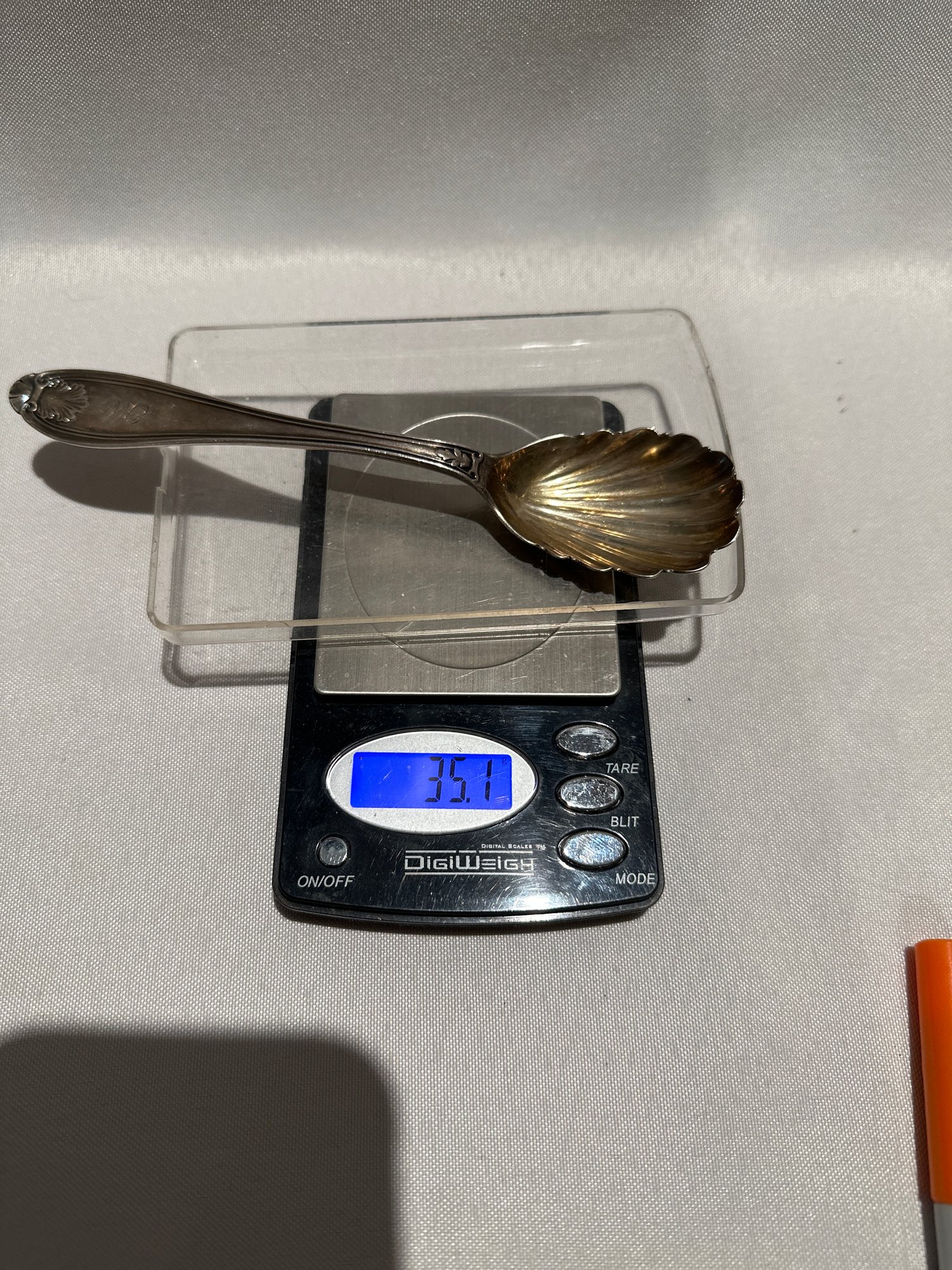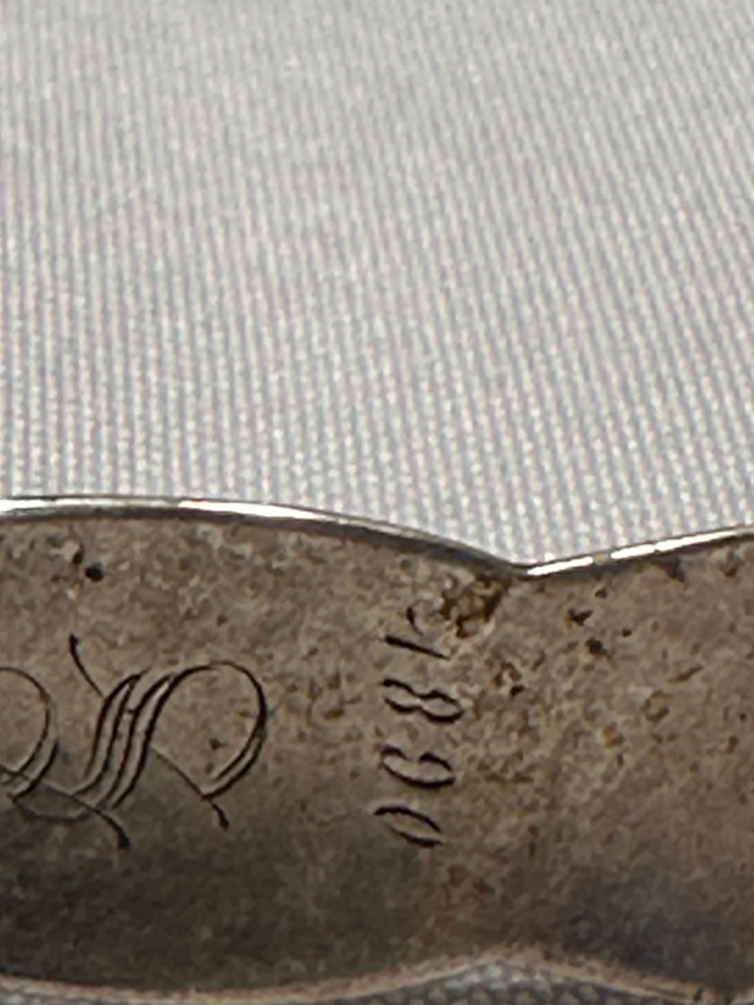 Large spoon Marked Patent 1847 Olive fluted spoon scratches silver
