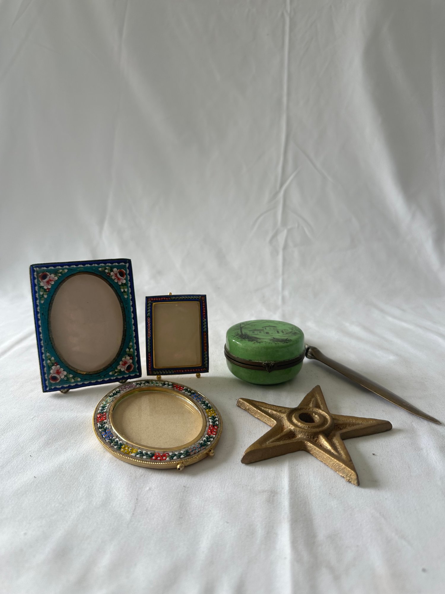 Notes: Chips on letter opener, one frame missing stand seen in pictures