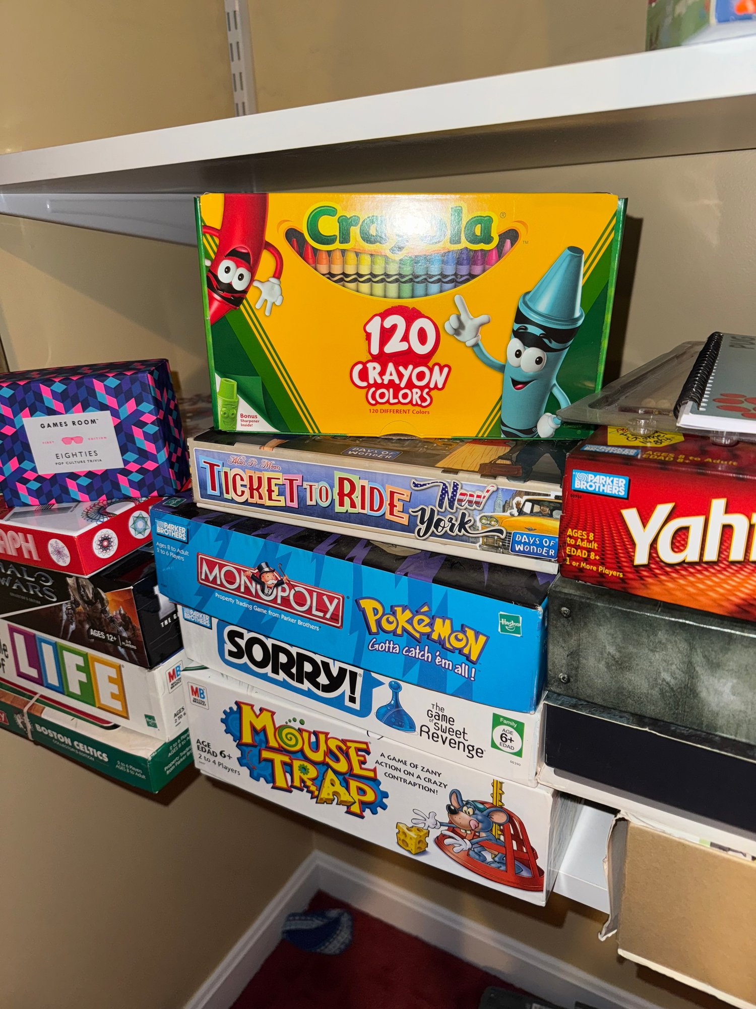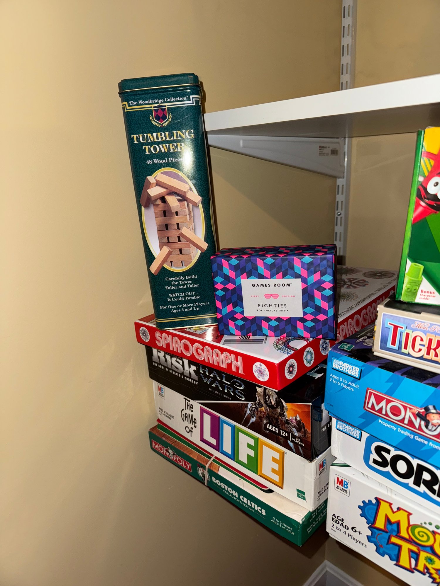 includes a shelf full of assorted board games