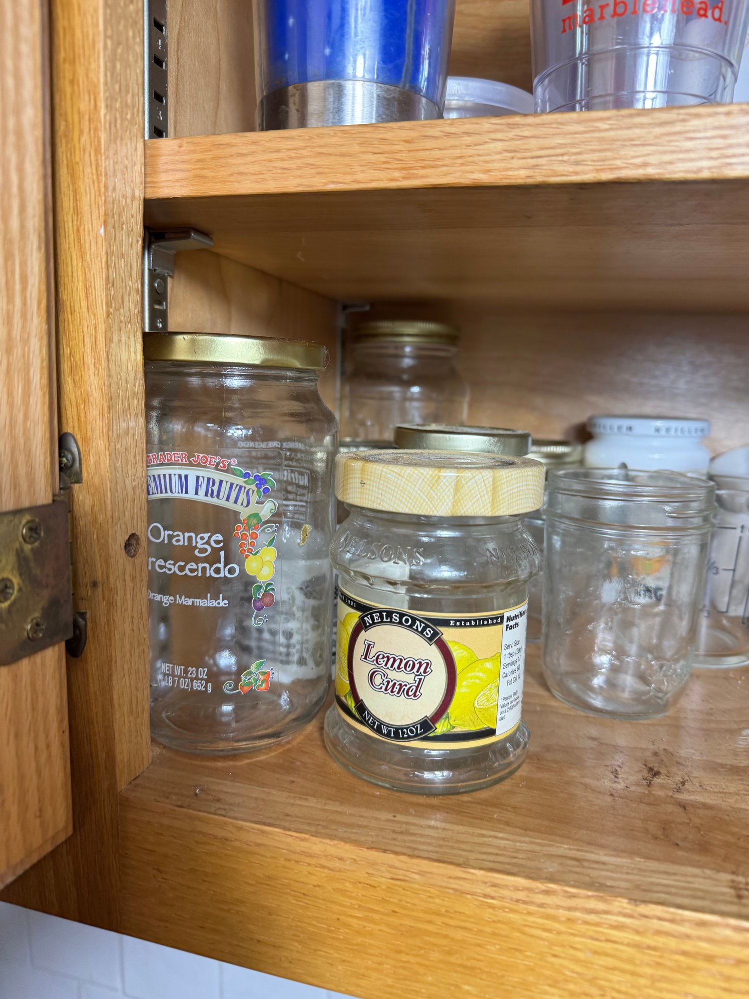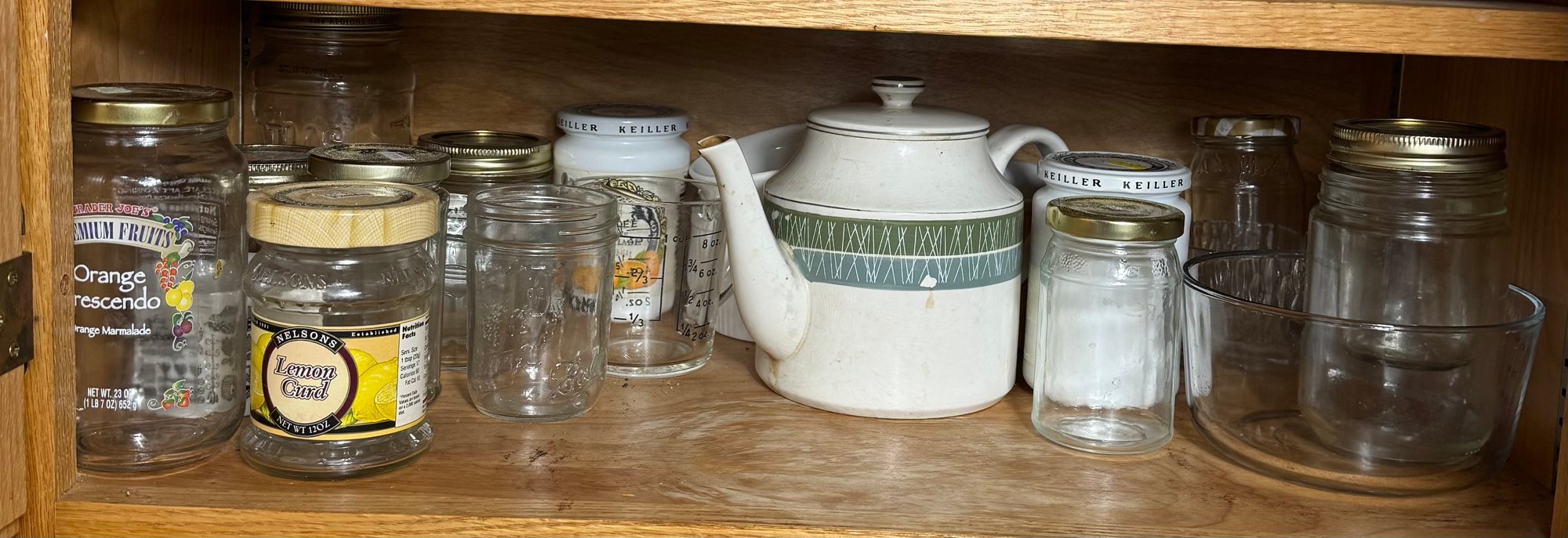mostly glass jars, some porcelains