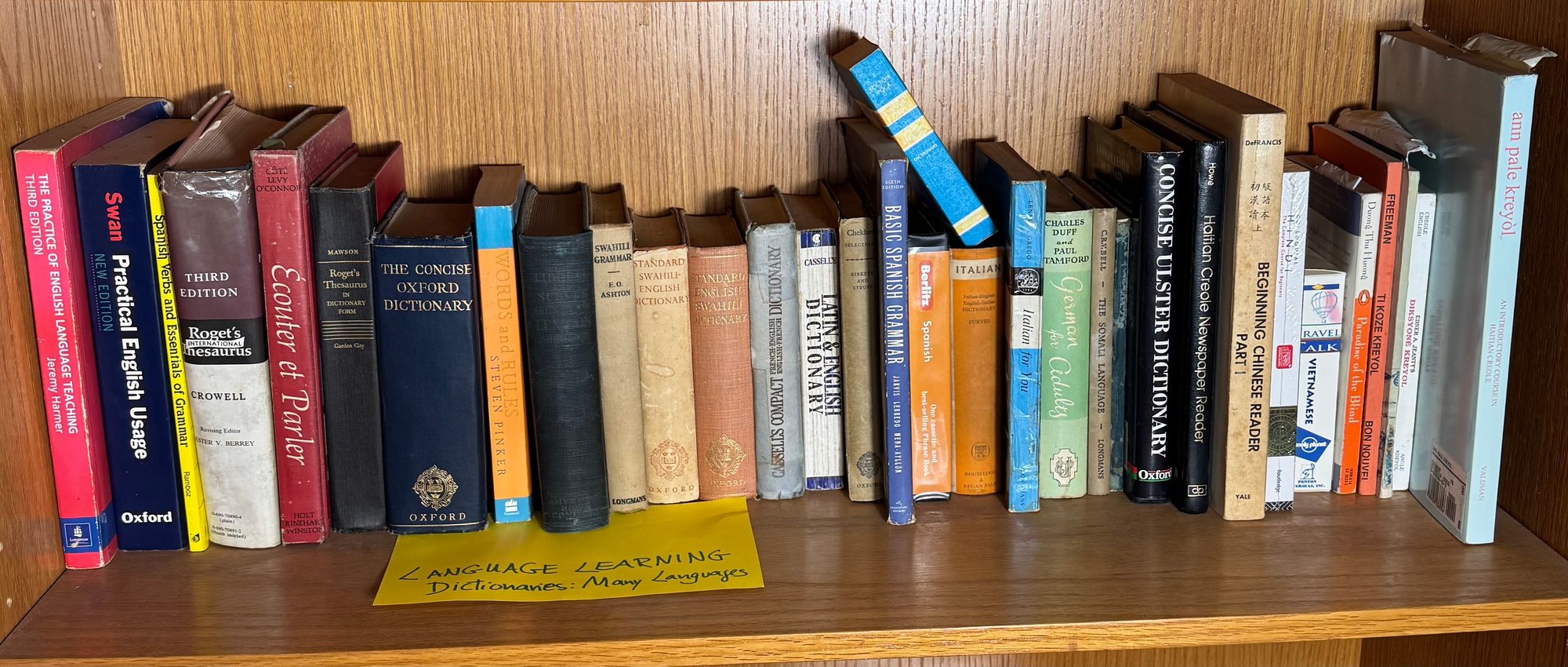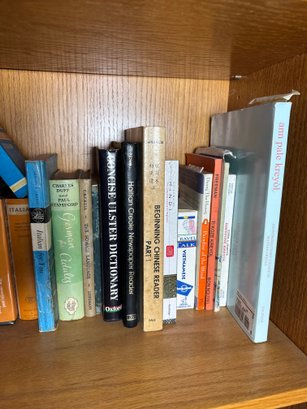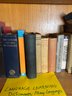 includes a shelf full of assorted books