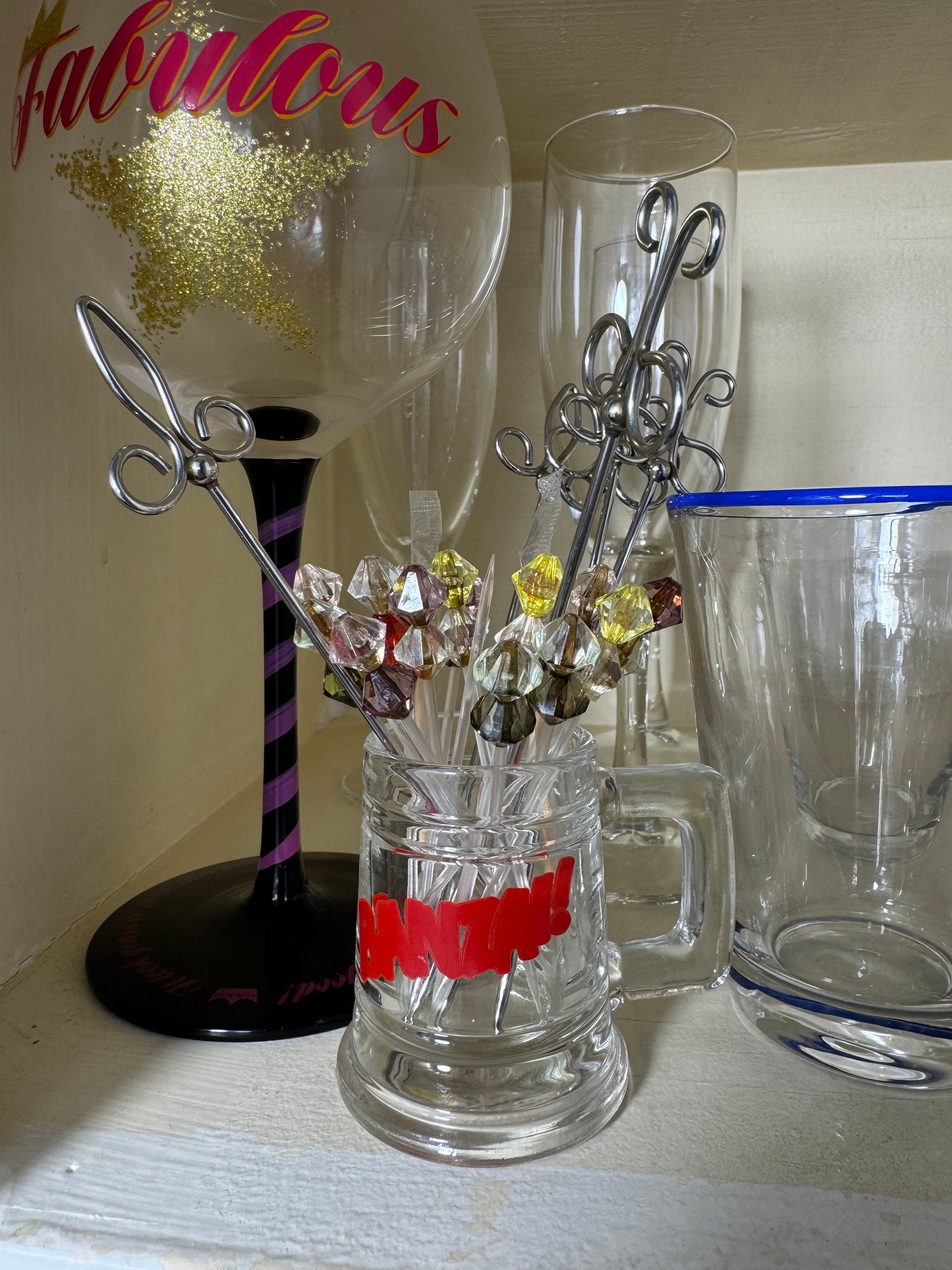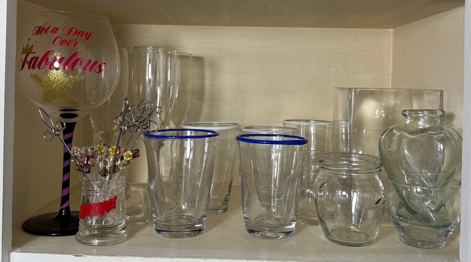 includes the entire shelf of assorted glassware