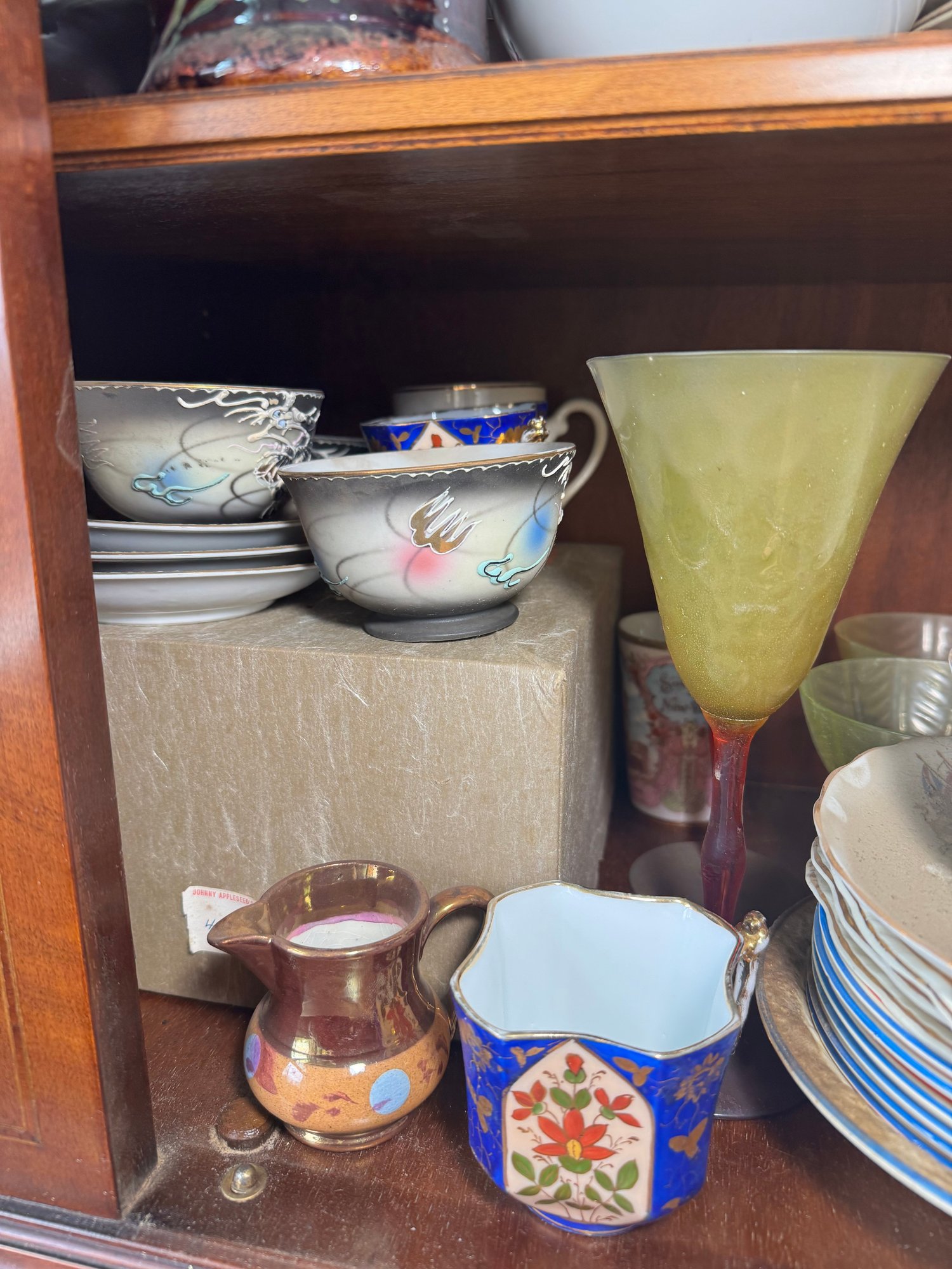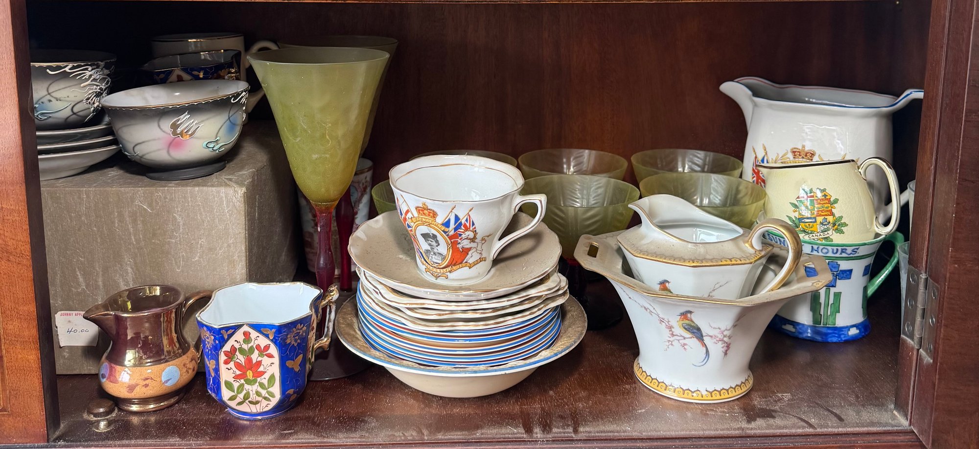 includes a shelf full of assorted ceramics & china