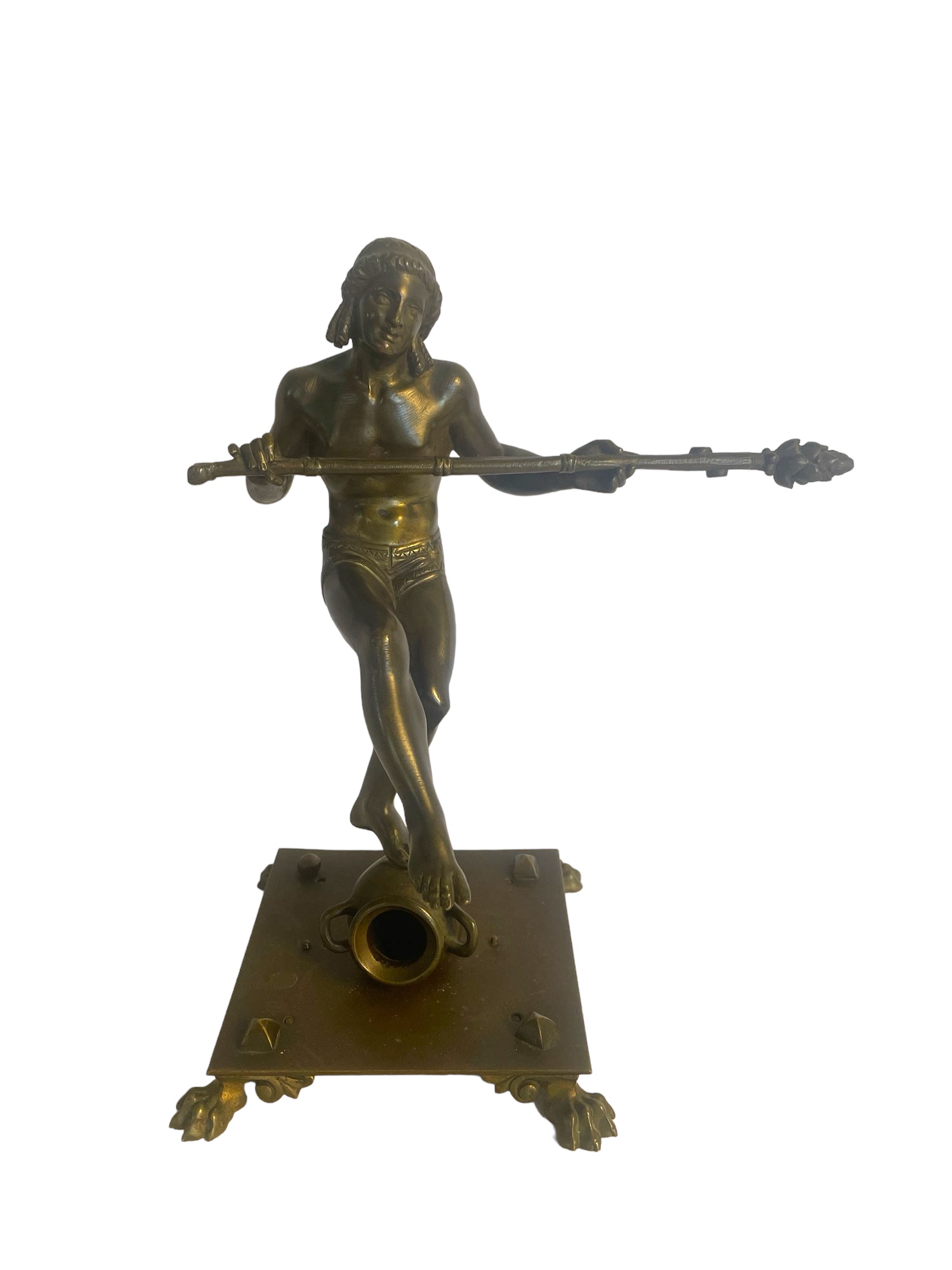 Footed bronze warrior statue signed by E. Carlier