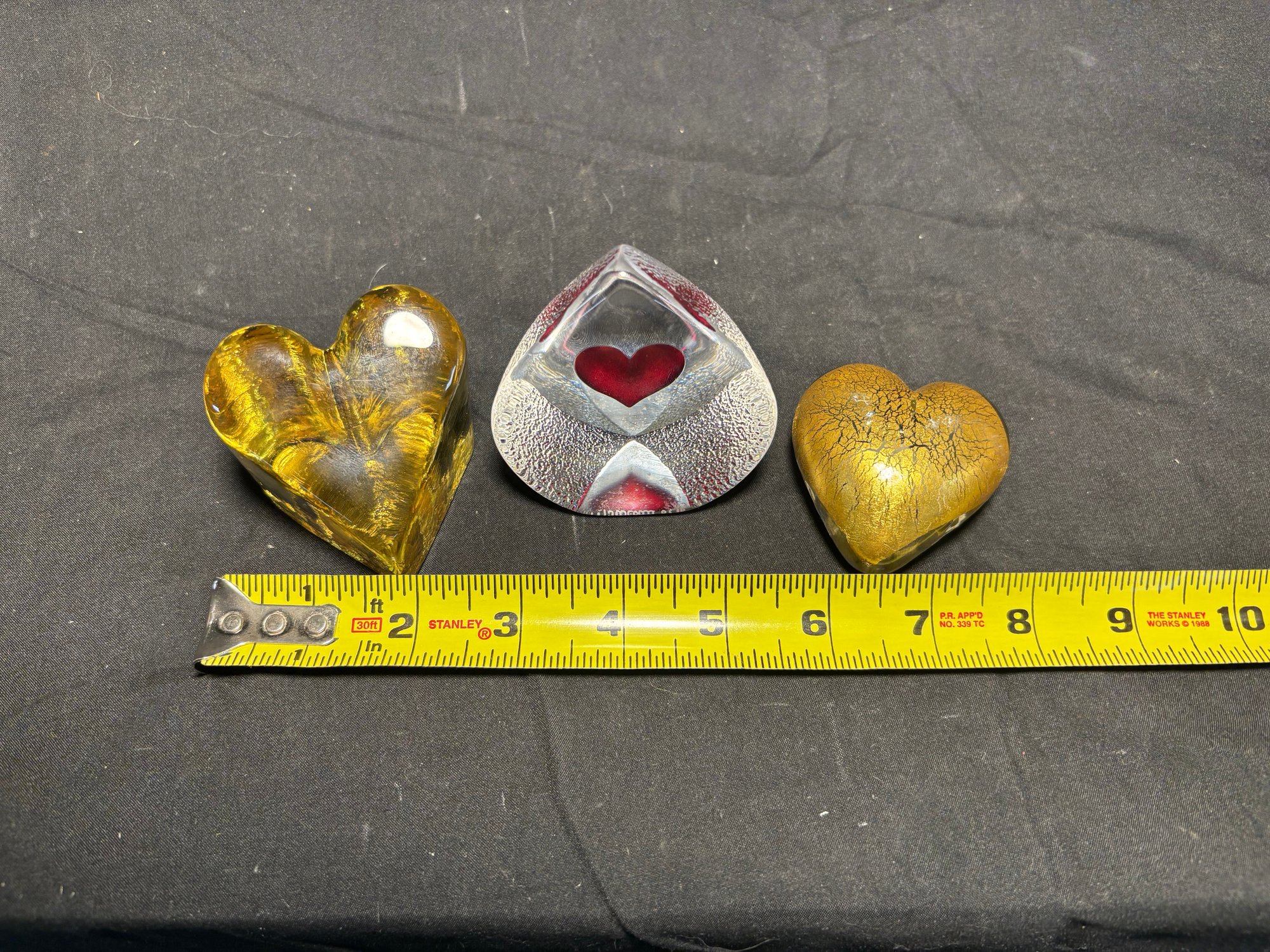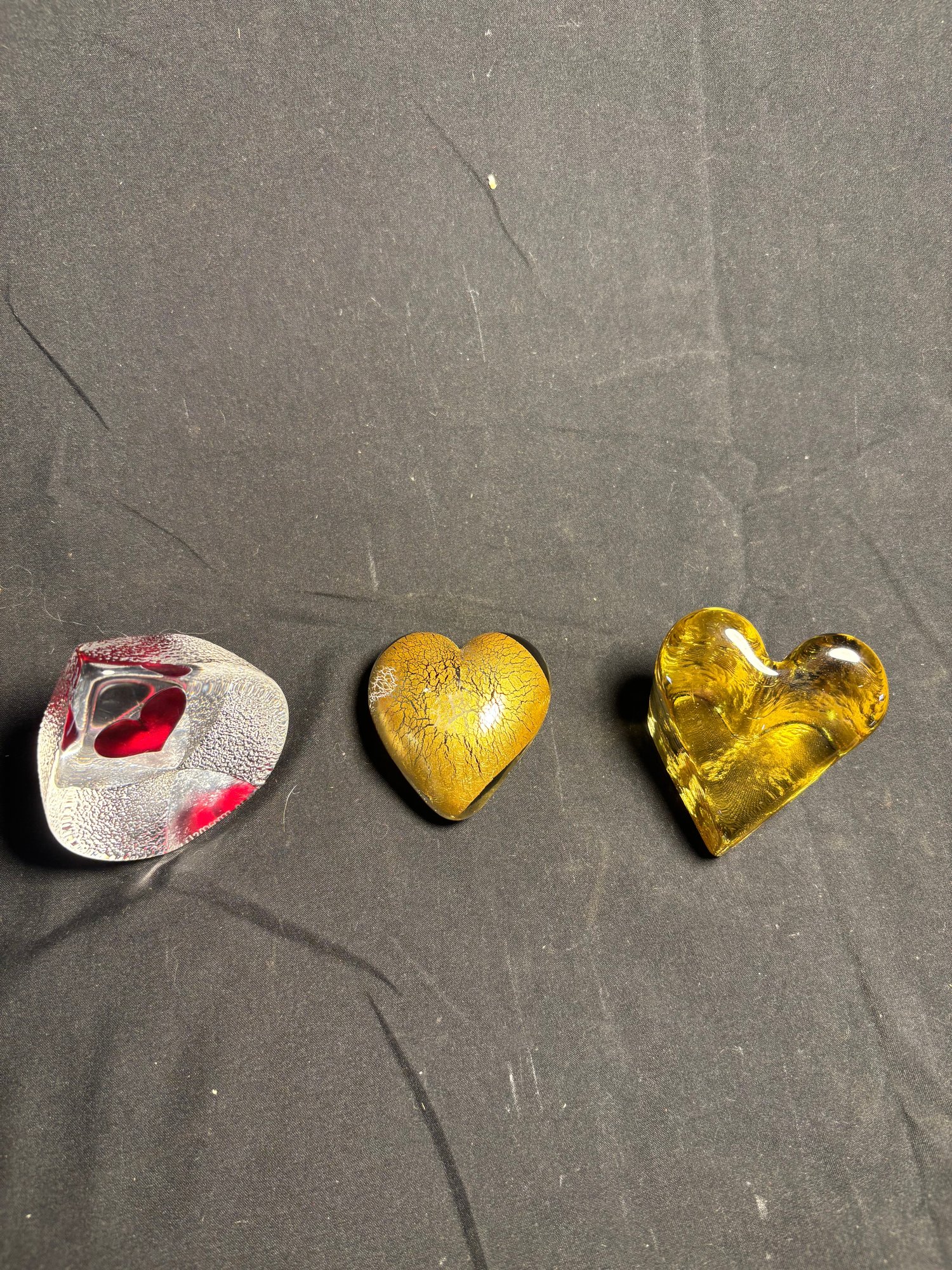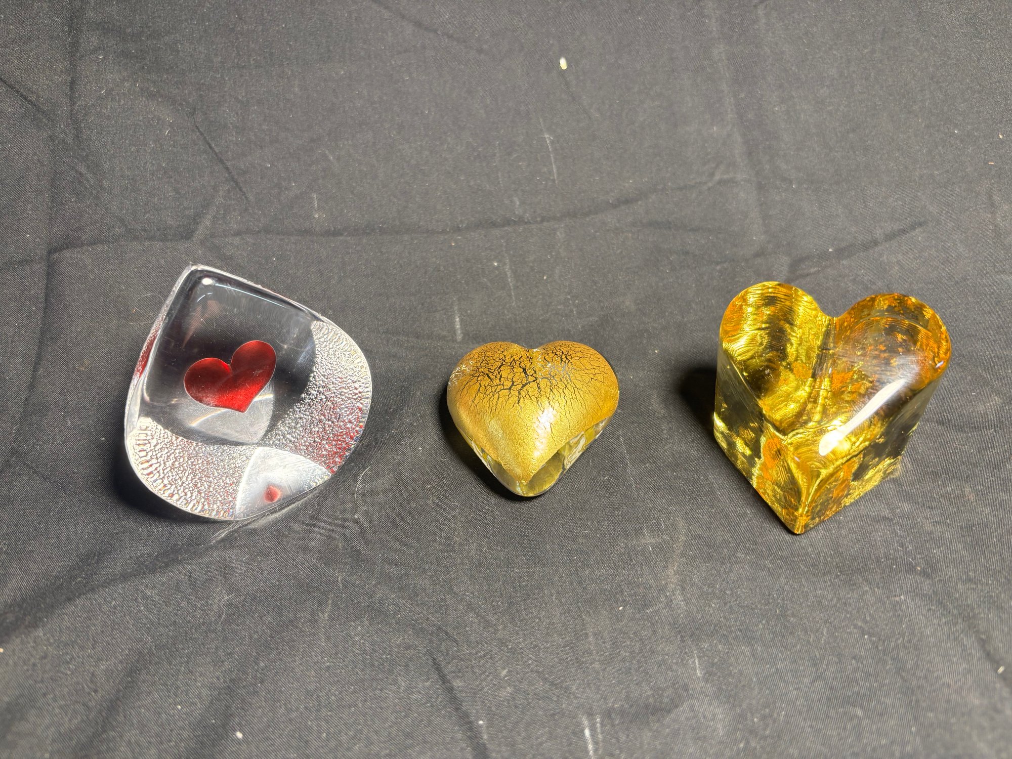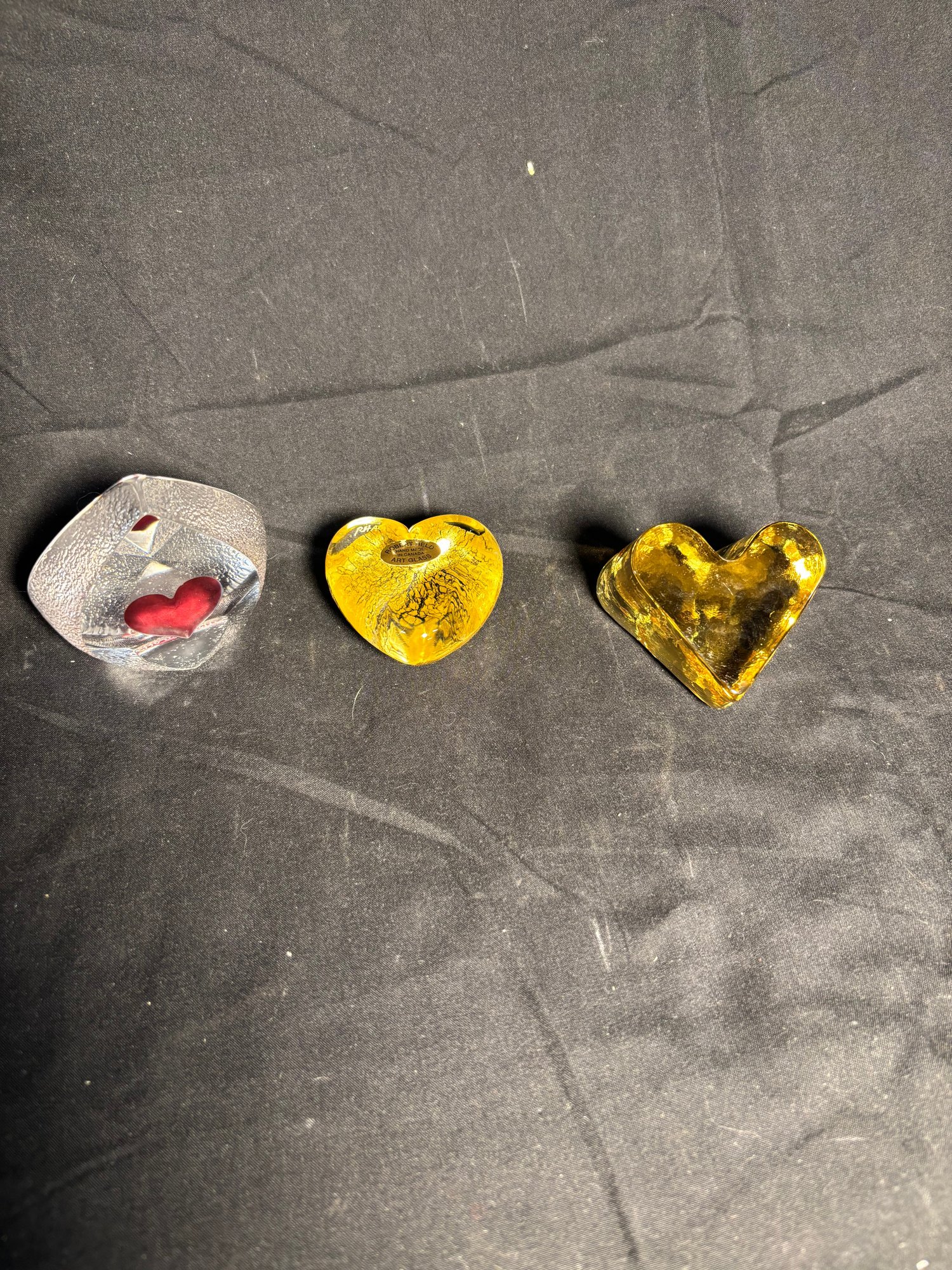 Signed Glass Heart Art Pieces