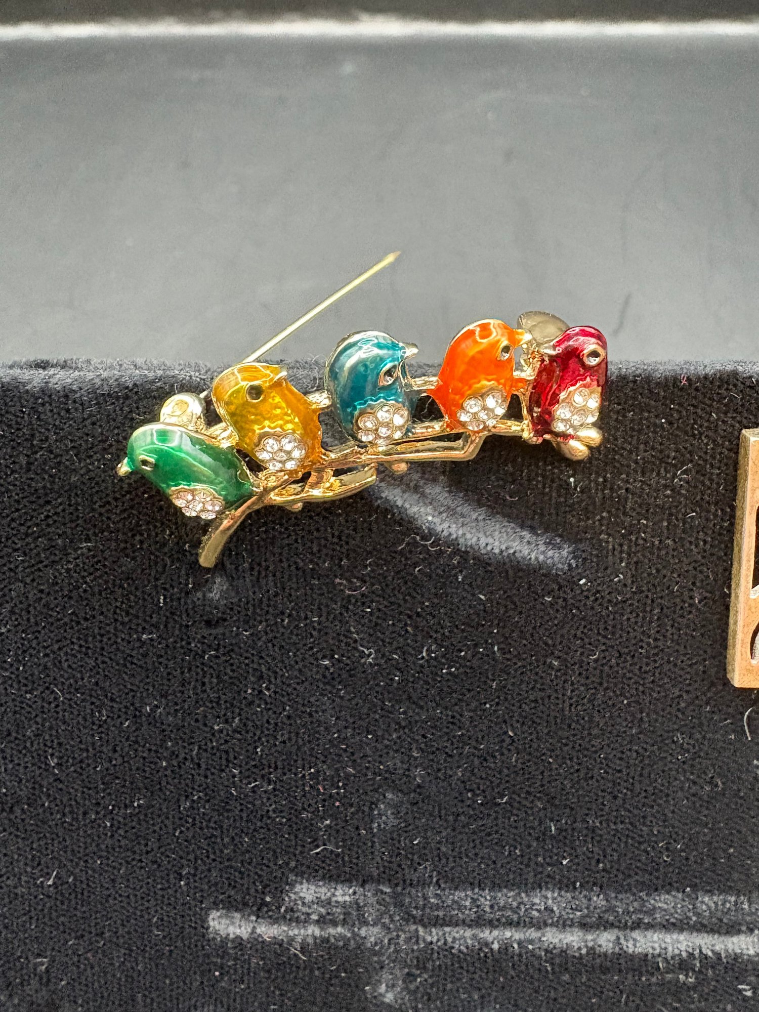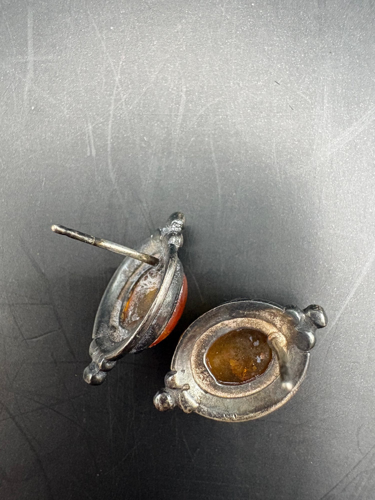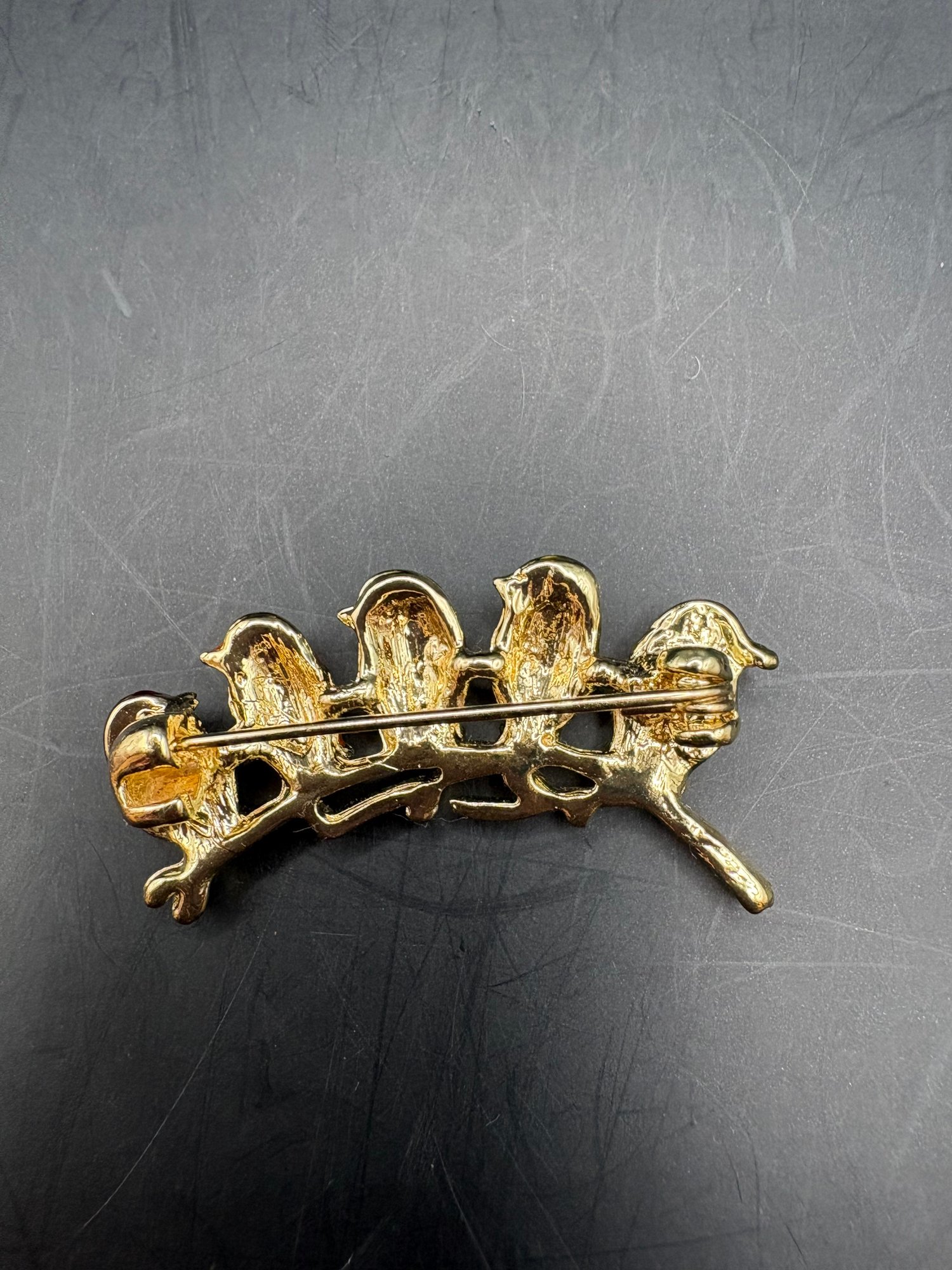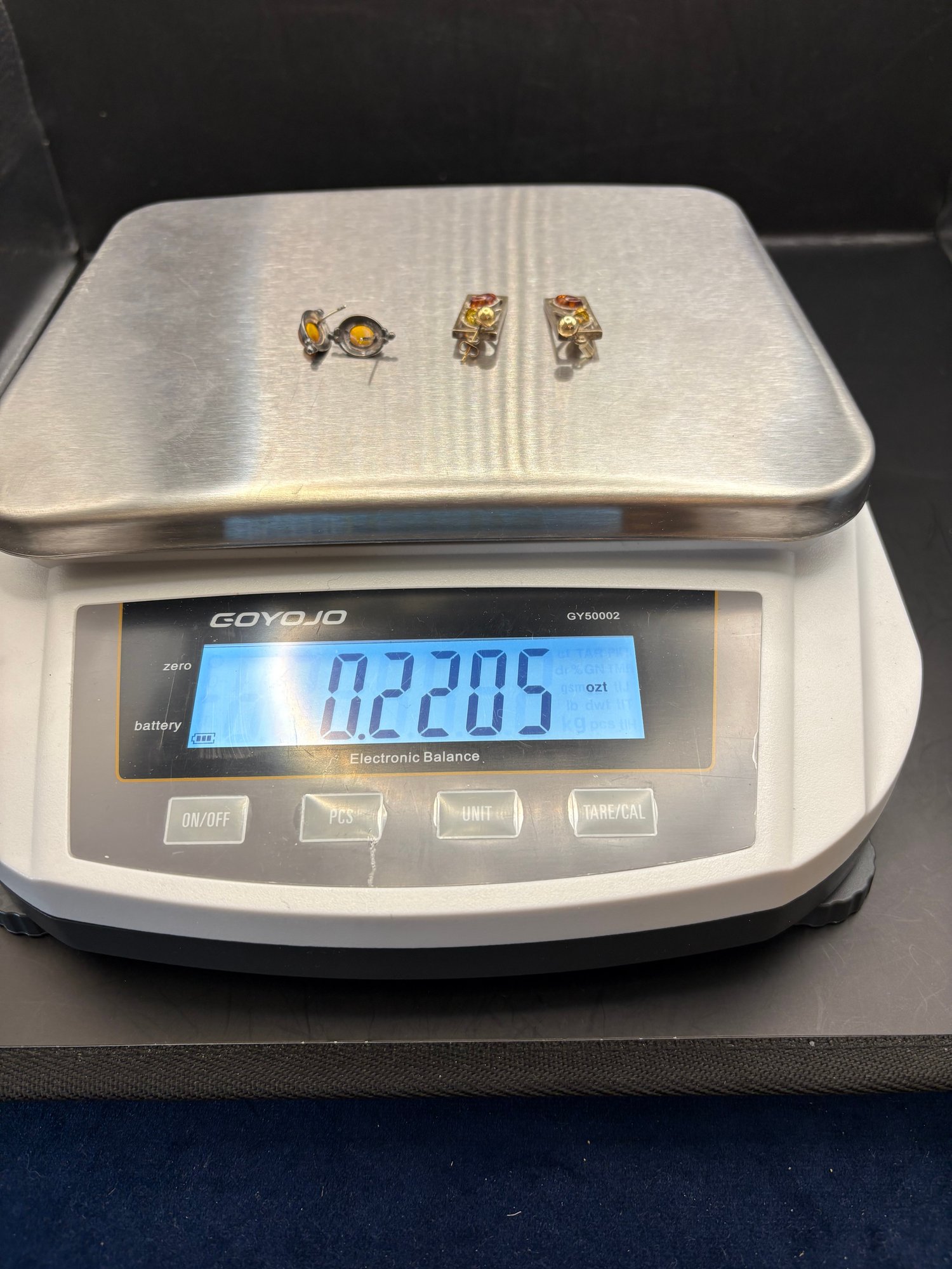 Three pairs of 925 sterling earrings with different gems, amber maybe citrine and the bird pen has five different color little birds with sparkly belly, gold tone on a branch 2 pairs Ozt. 0.2205.