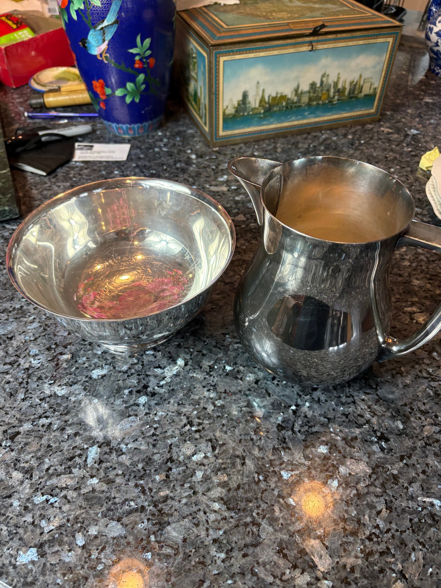 Dimensions pitcher is approximately 7.25 inches tall. Bowl is approximately 4.25 inches tall and 8 inches in diameter