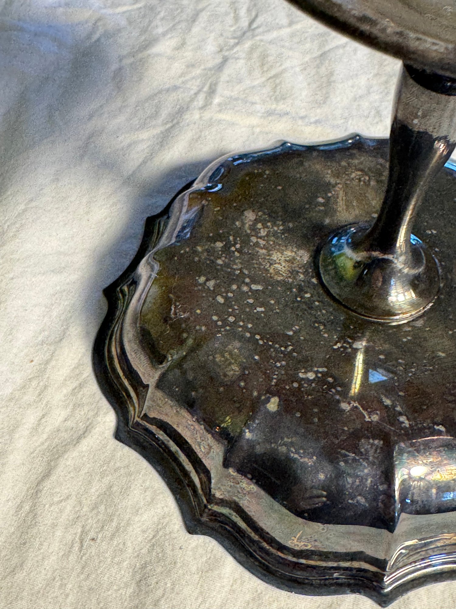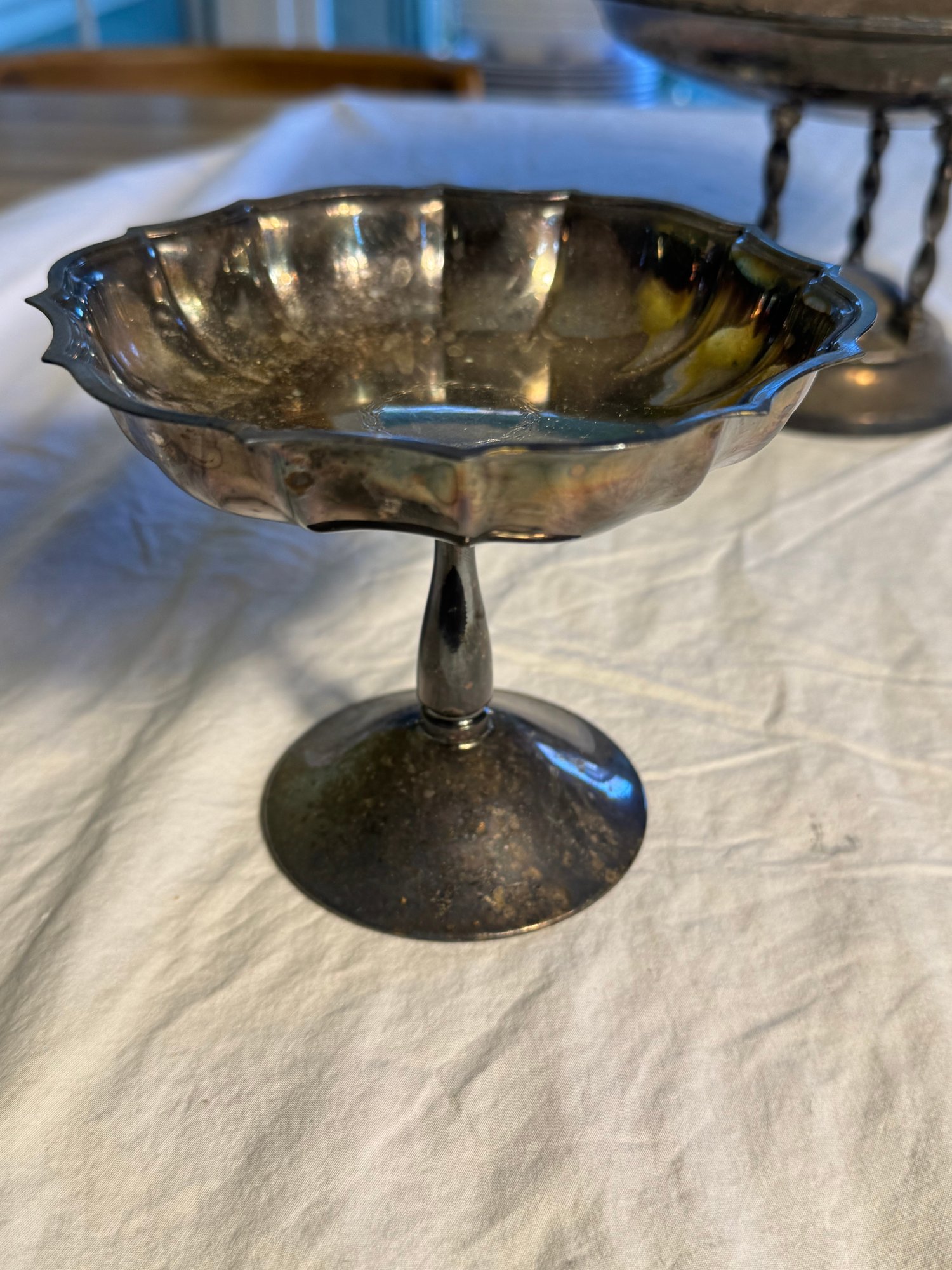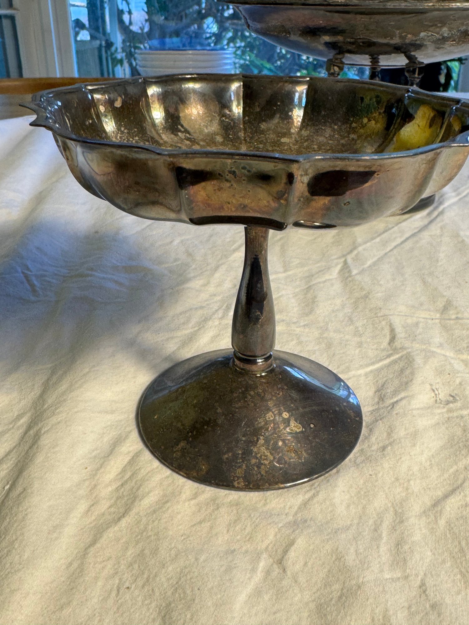 The large compote isn’t clearly marked, but appears to be silver plate