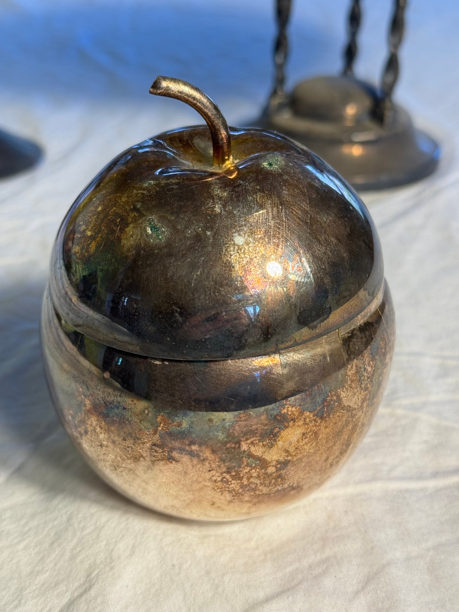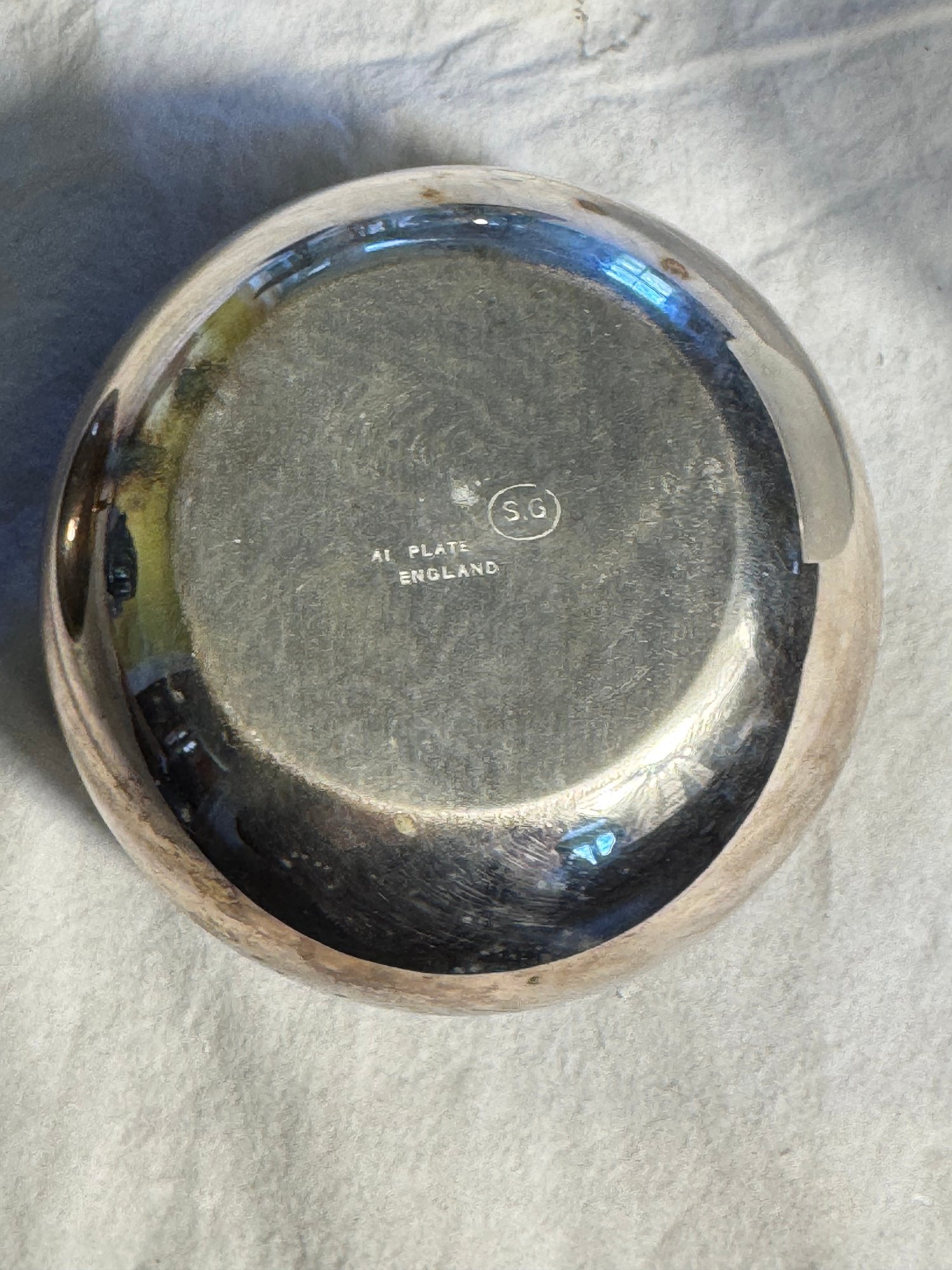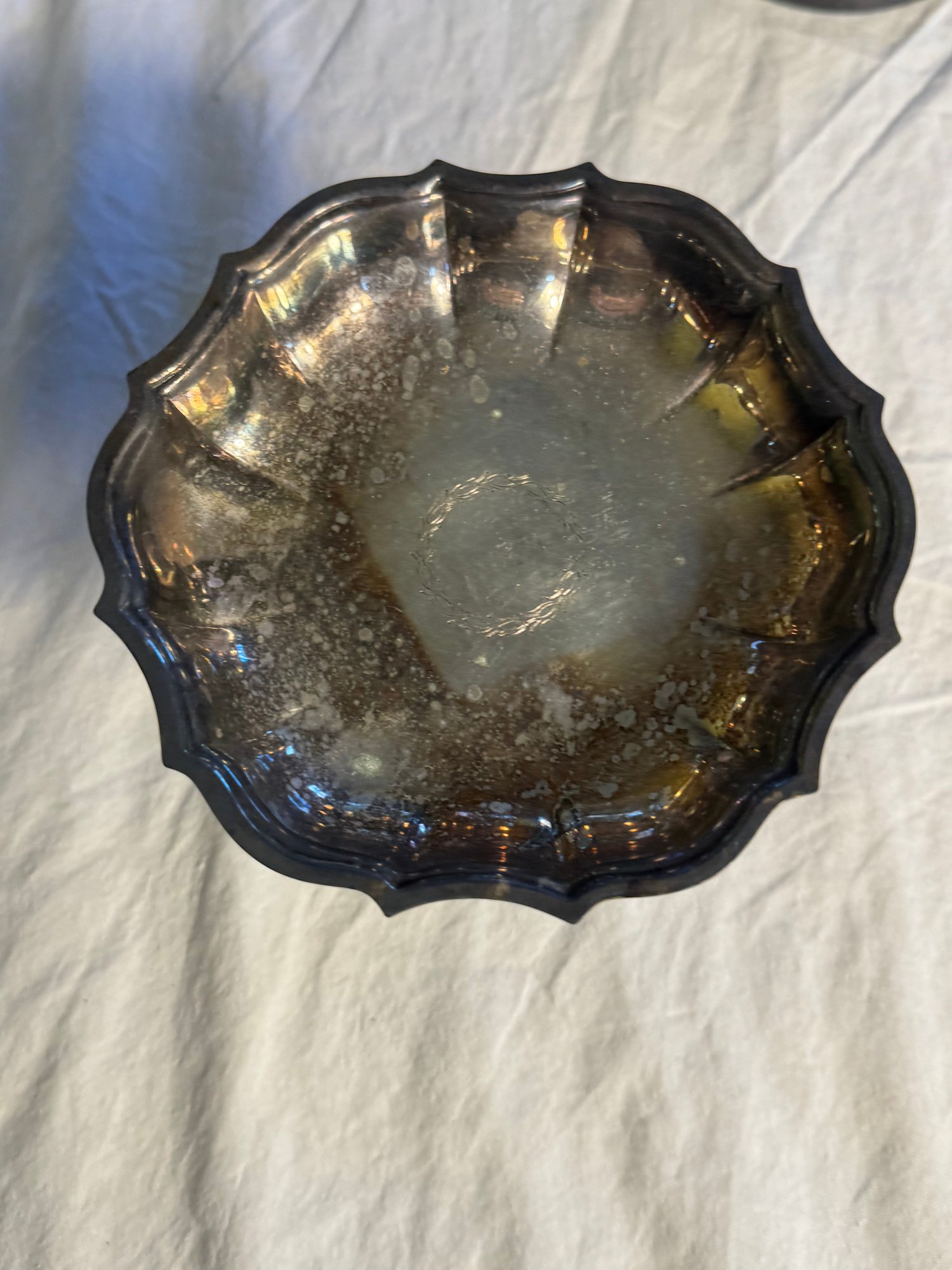 The large compote isn’t clearly marked, but appears to be silver plate
