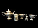 Teapot, sugar, creamer, cigarette box, pepper shaker