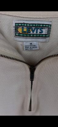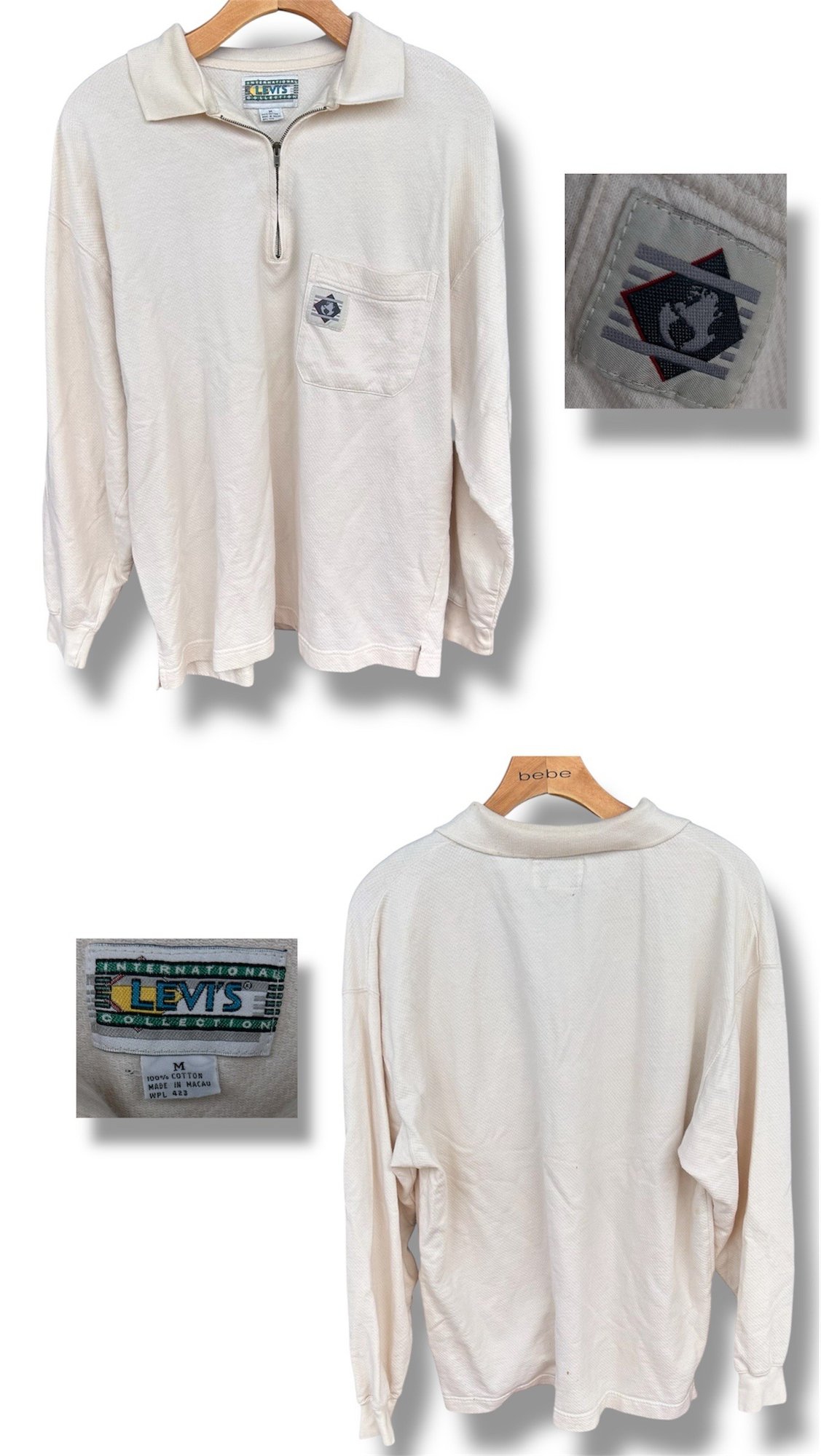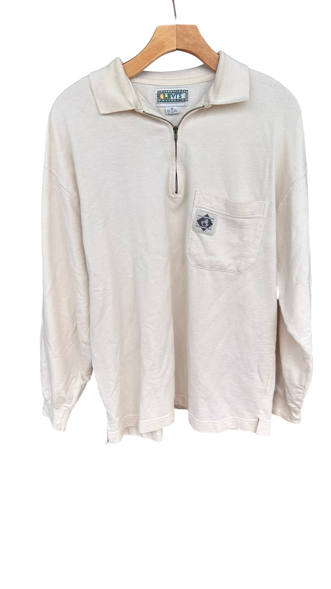 Vintage Levi’s International Collection long sleeve in an off-white tone. Features chest pocket with globe logo patch and quarter-zip collar.