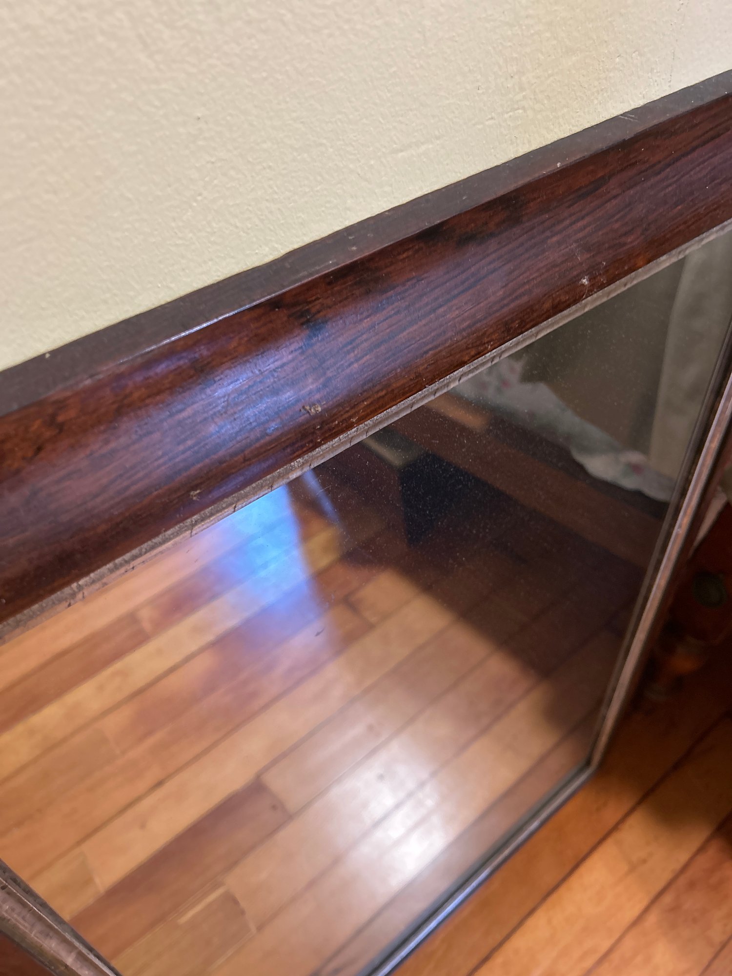 Real Wood Antique Mirror - good condition, might need replacement paper backing in the future. 25.5 x 34.5