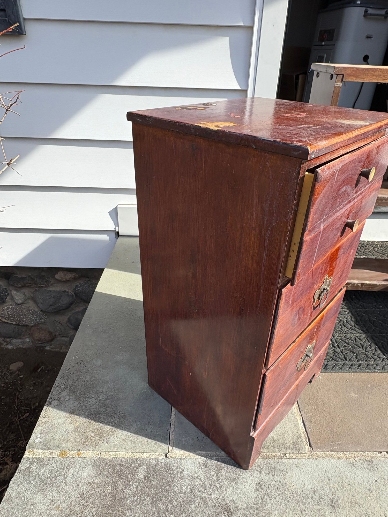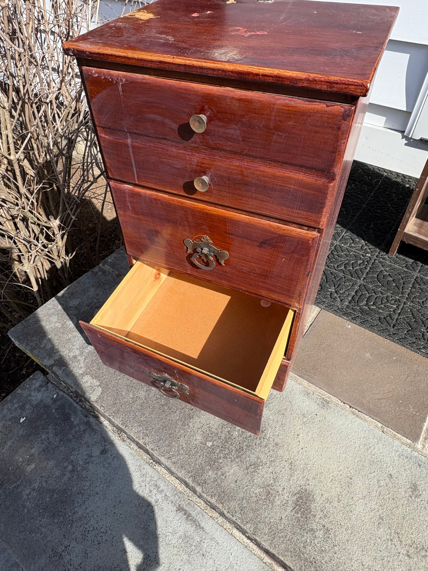 Dresser: 11.25 by 14.5 by 26 inches tall. Drawer open 11.25
