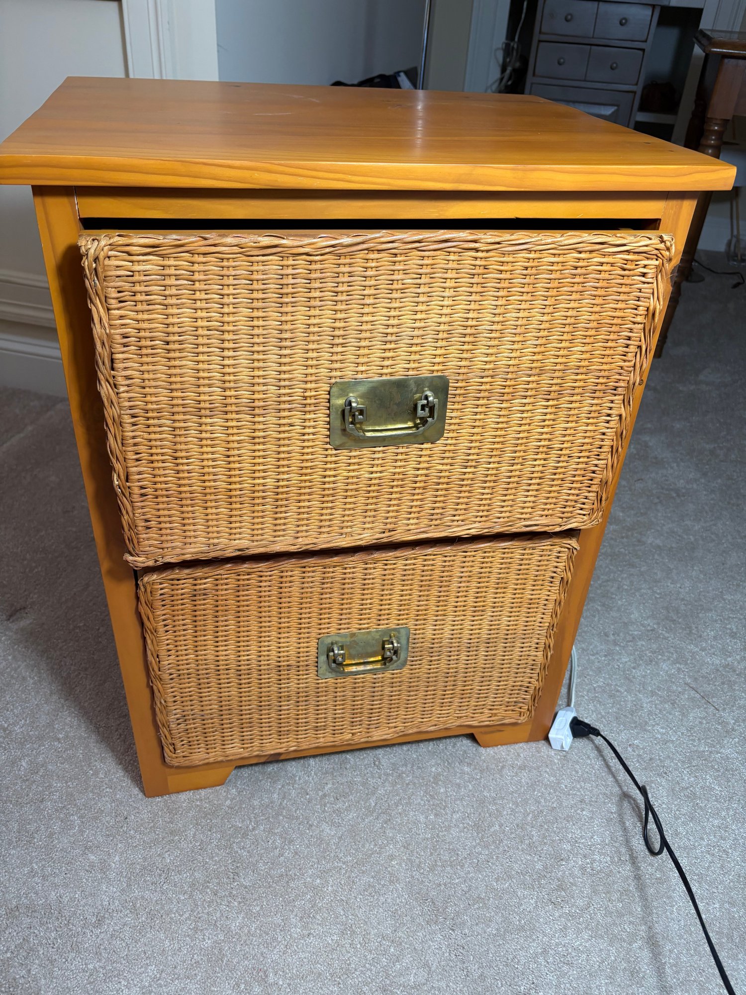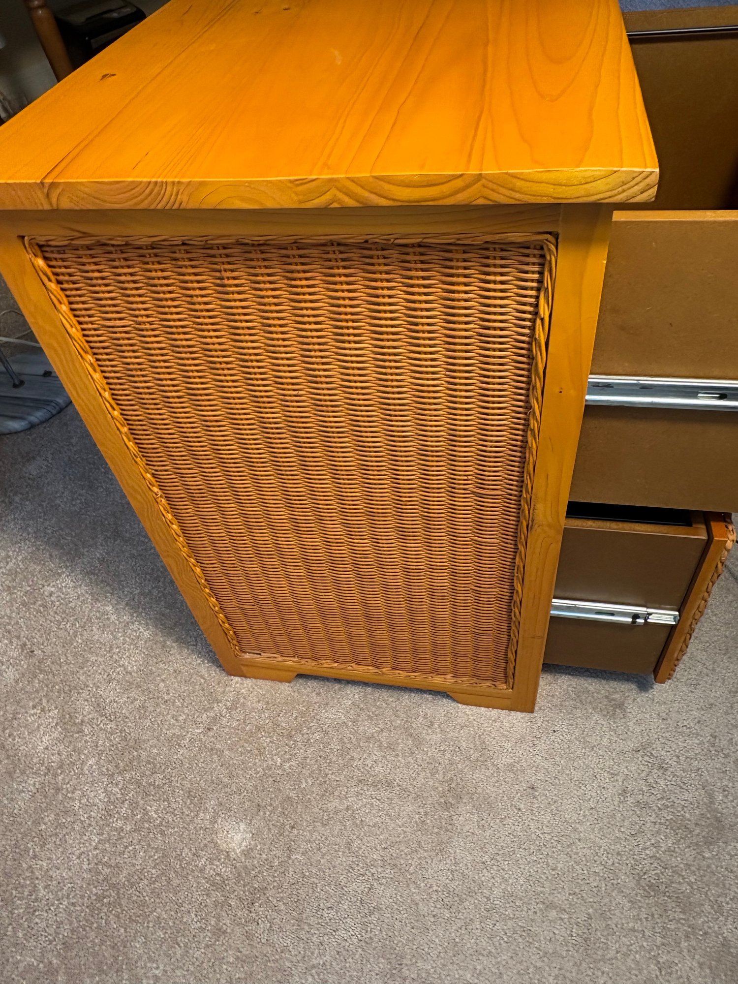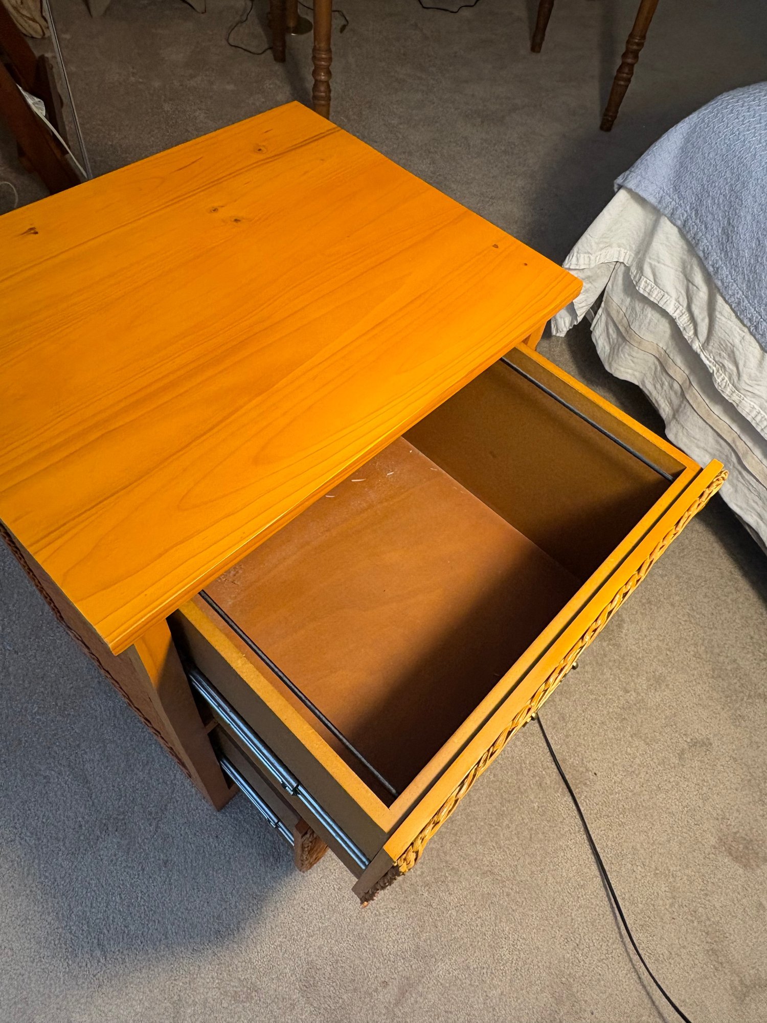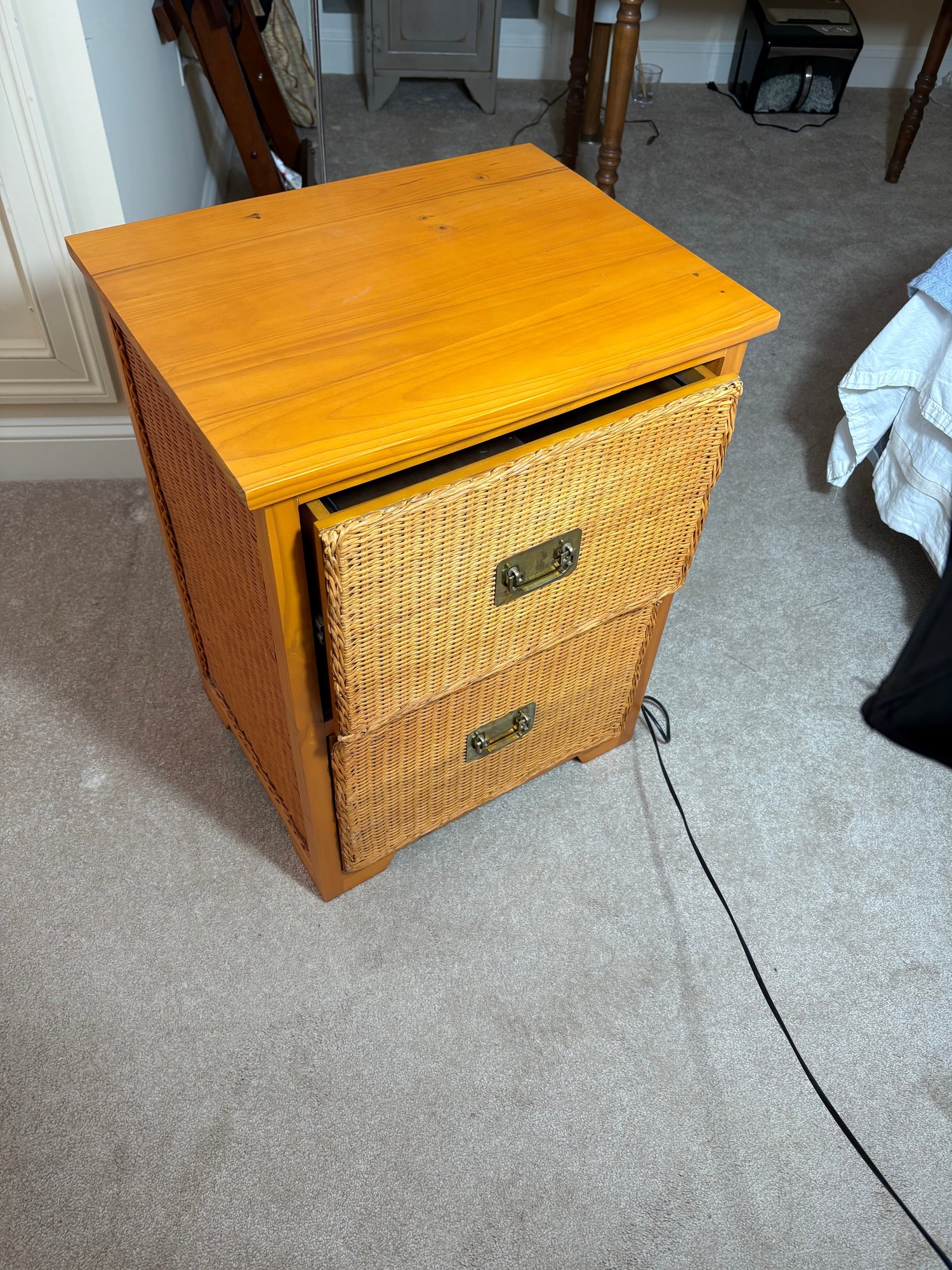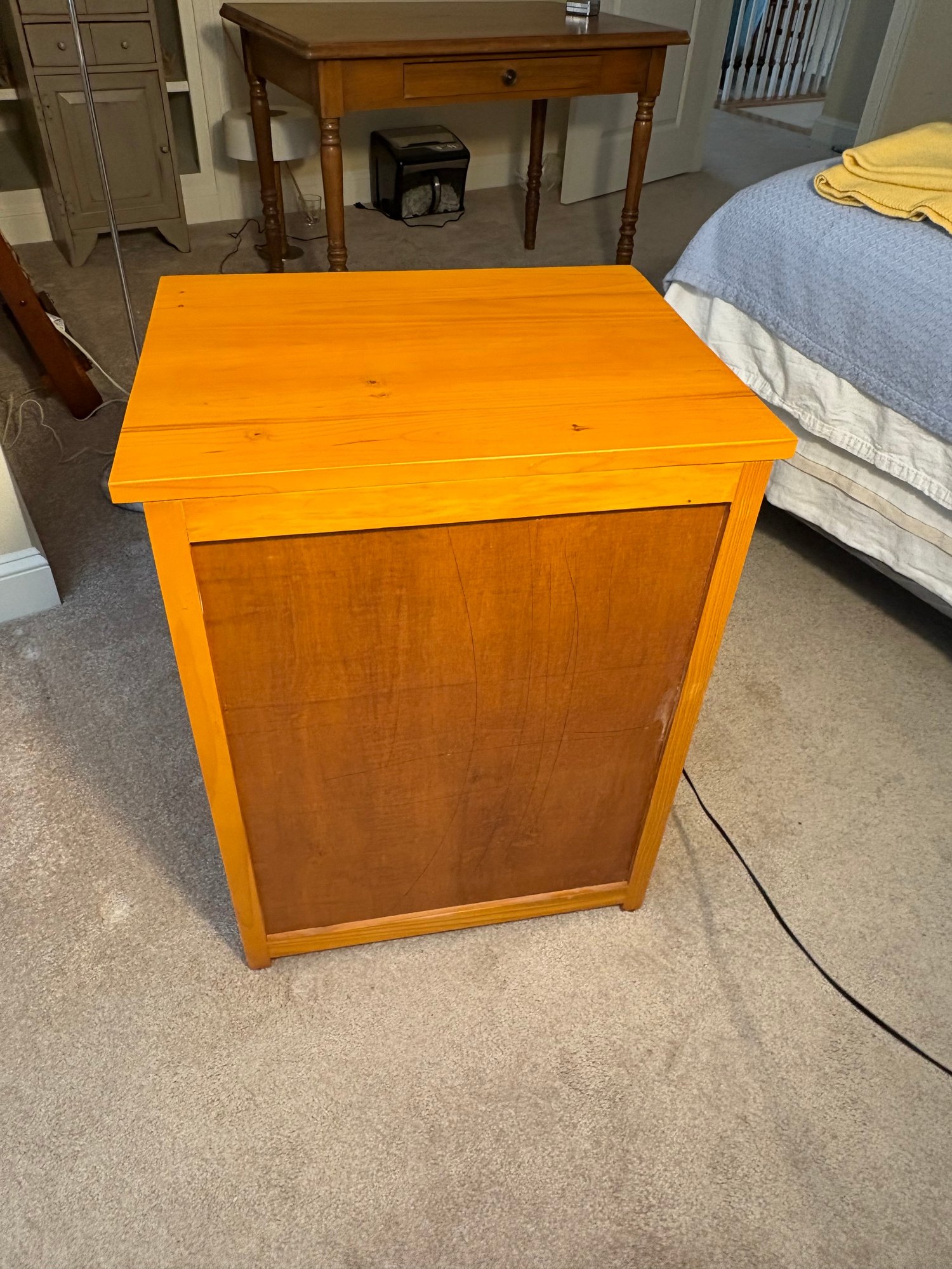 Dimensions approximately 17 by 21.5 by 28 inches tall. Drawer open approximately 14.5 inches long