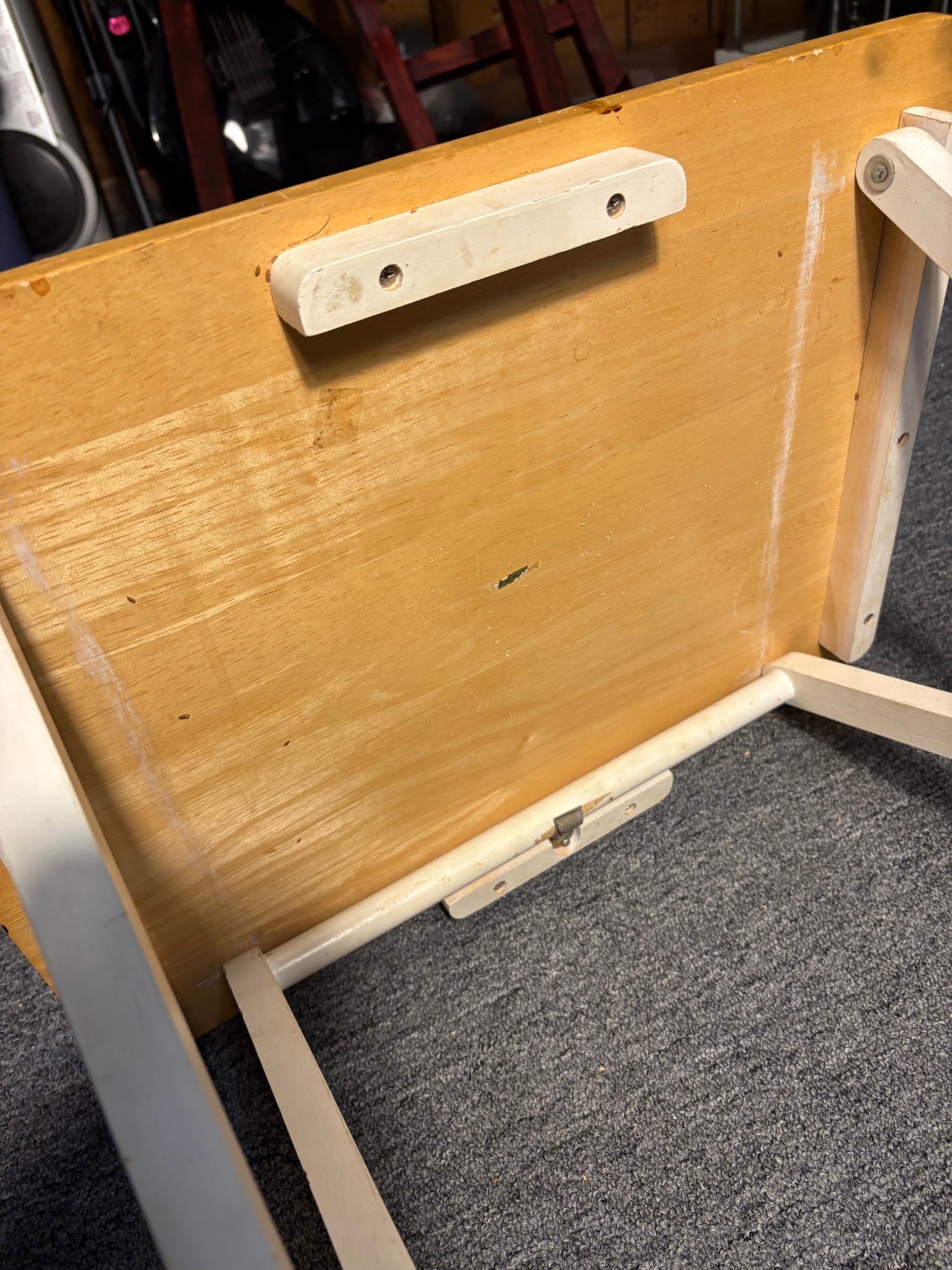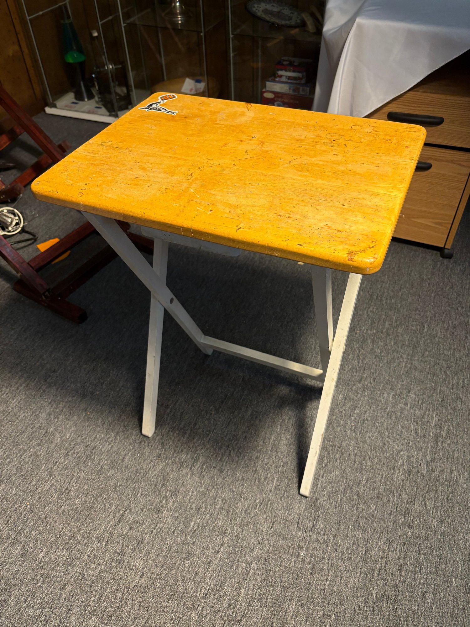 Notes: Table is scratched and stained on the top. Has a sticker on the top of the table