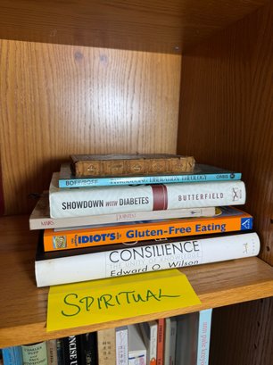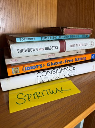 includes a stack of assorted spiritual & health related books