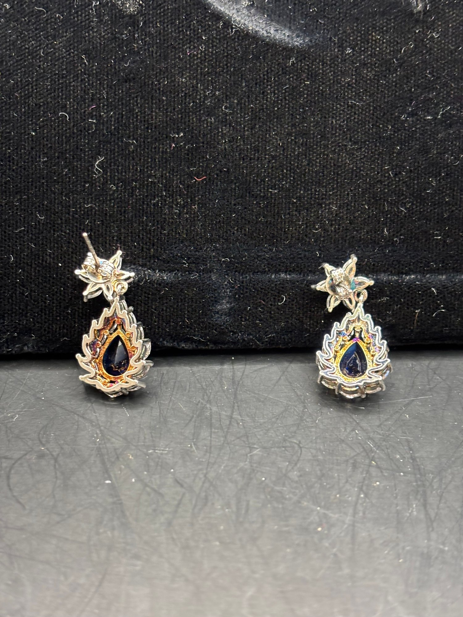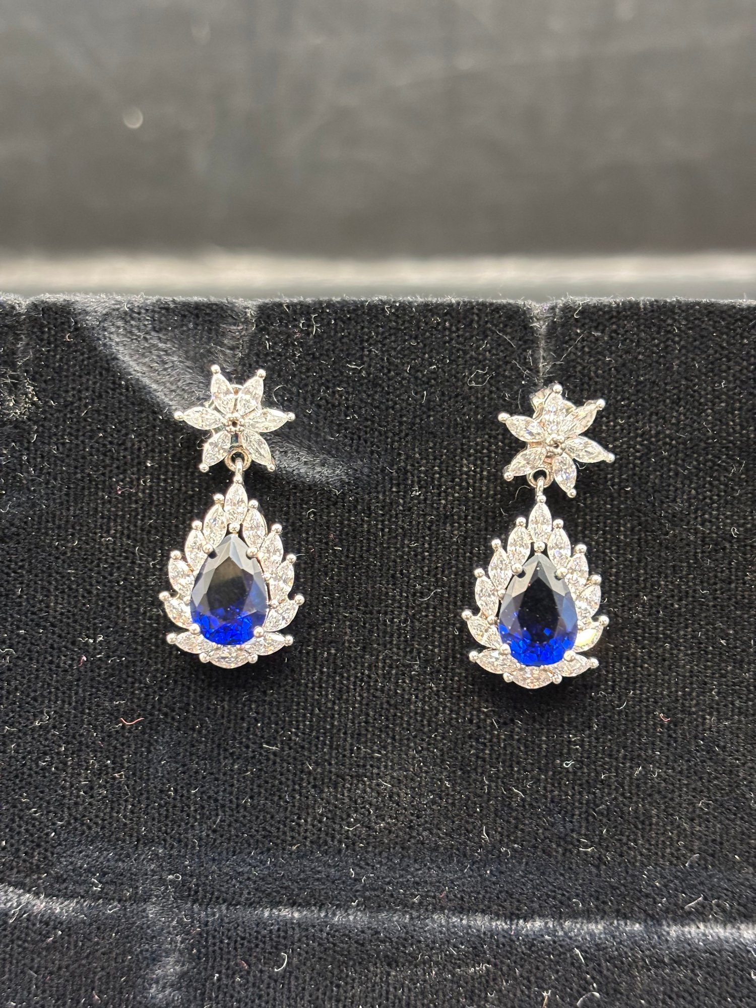 1- pair of sapphire like and crystal costume earrings, studs