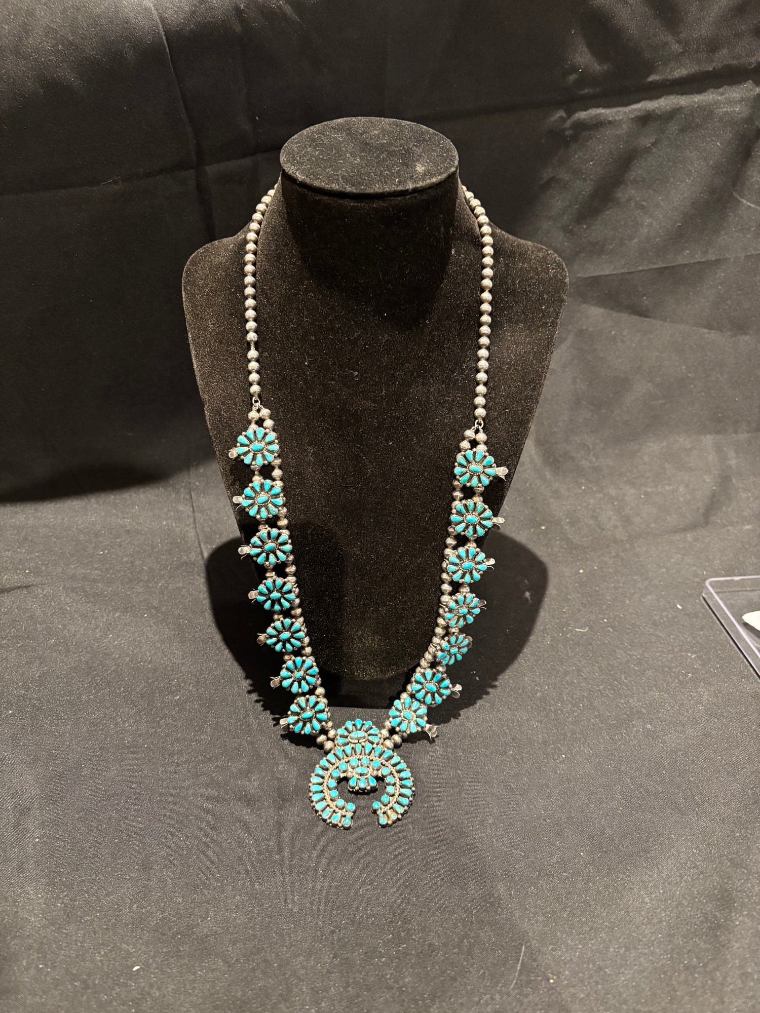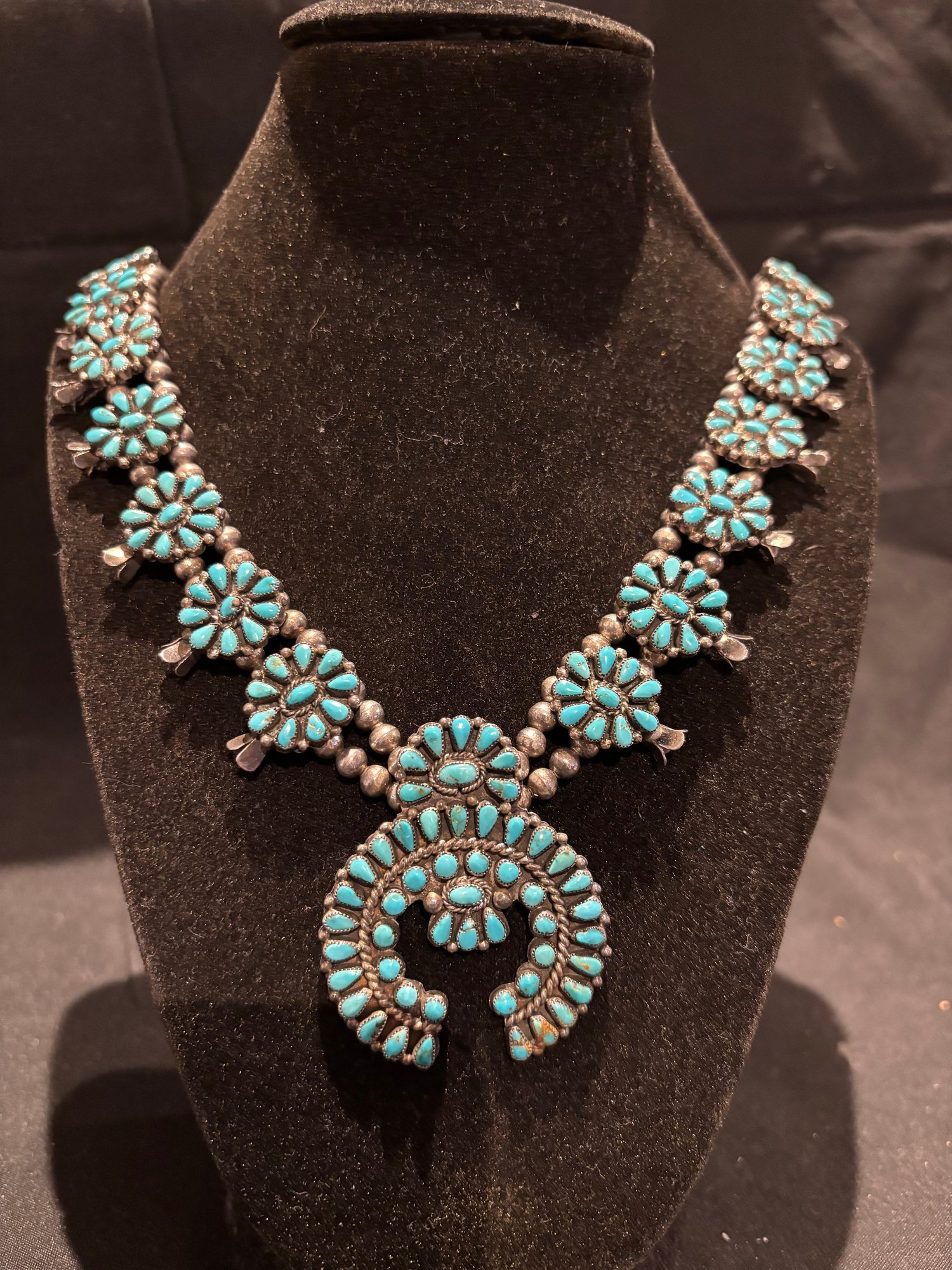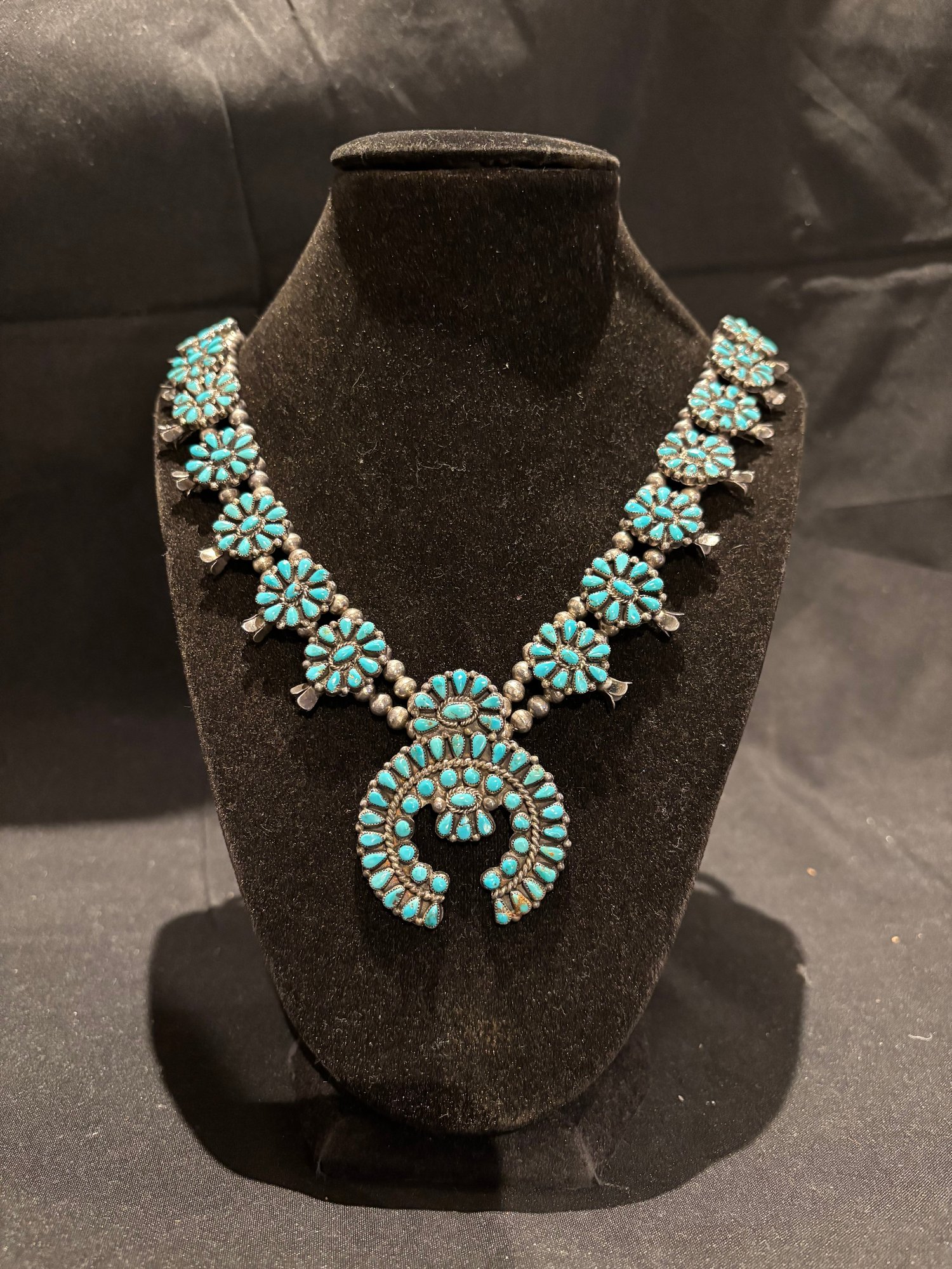 Sterling And Turquoise Squash Blossom Native American Necklace