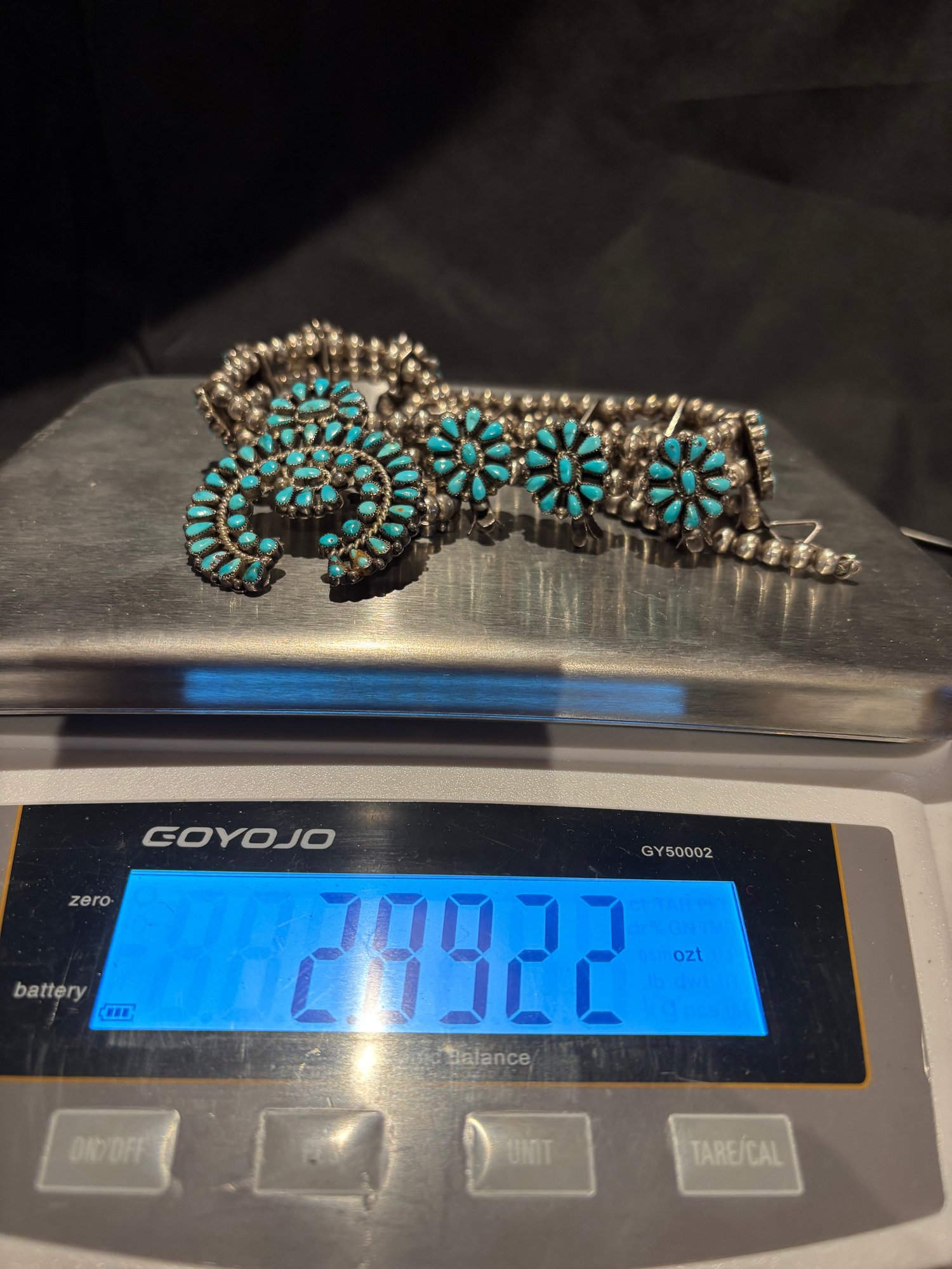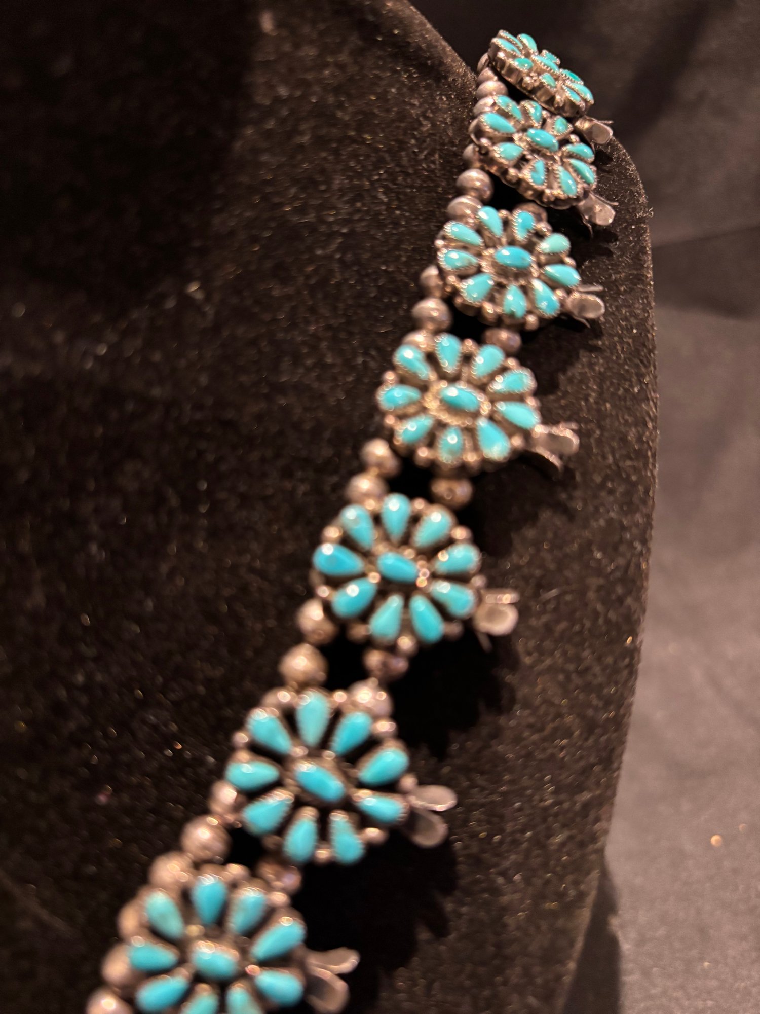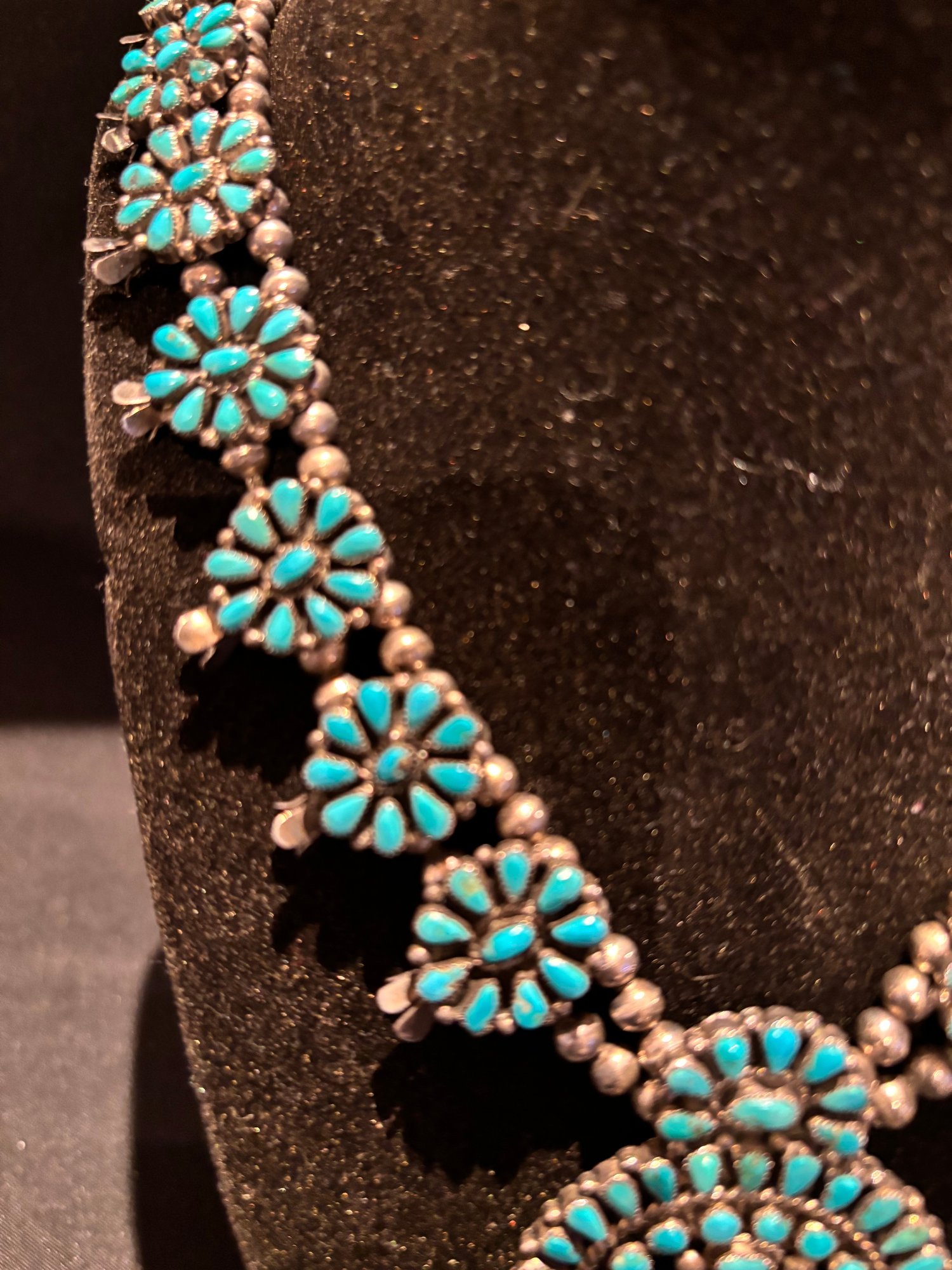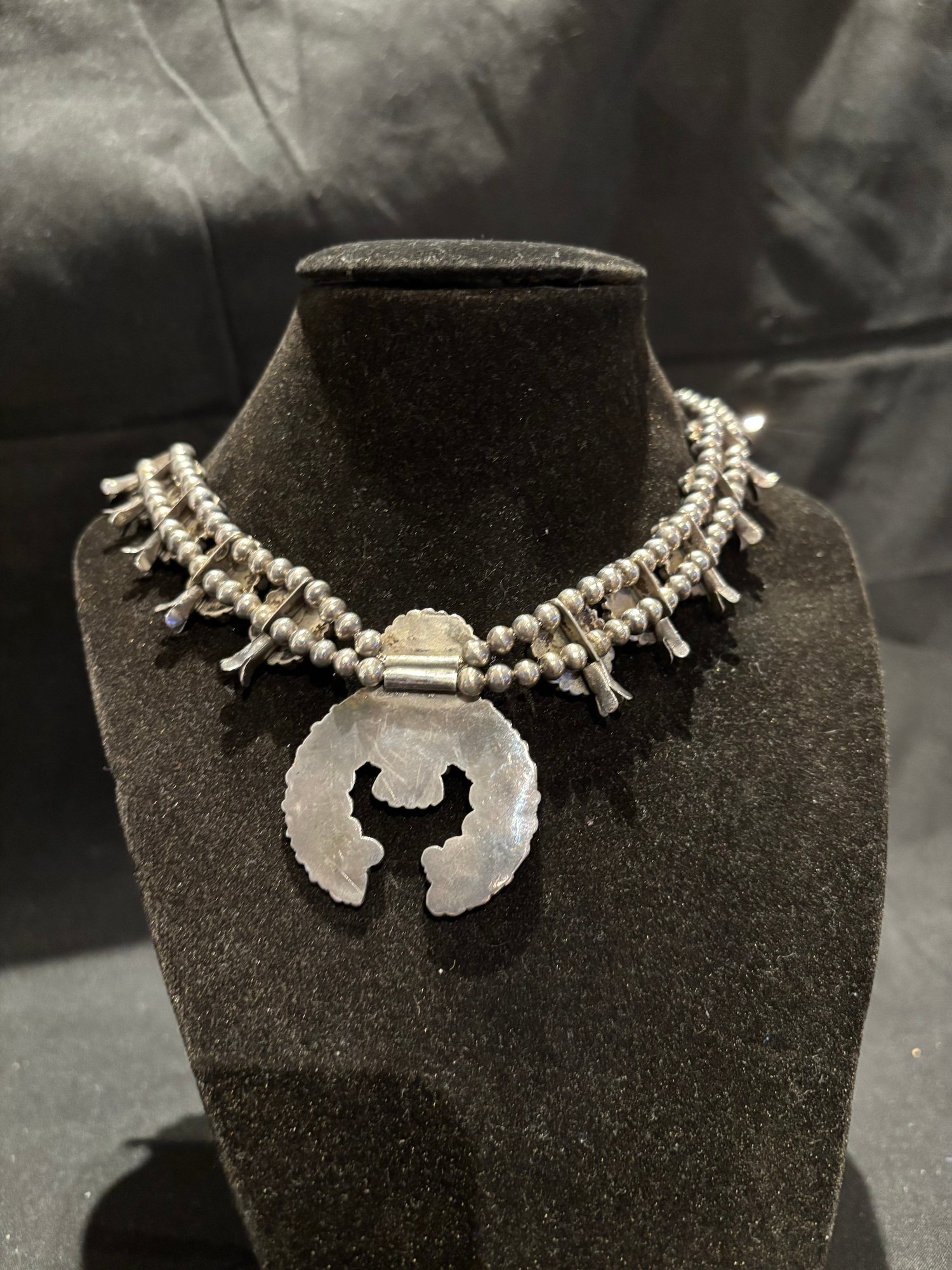 Sterling And Turquoise Squash Blossom Native American Necklace