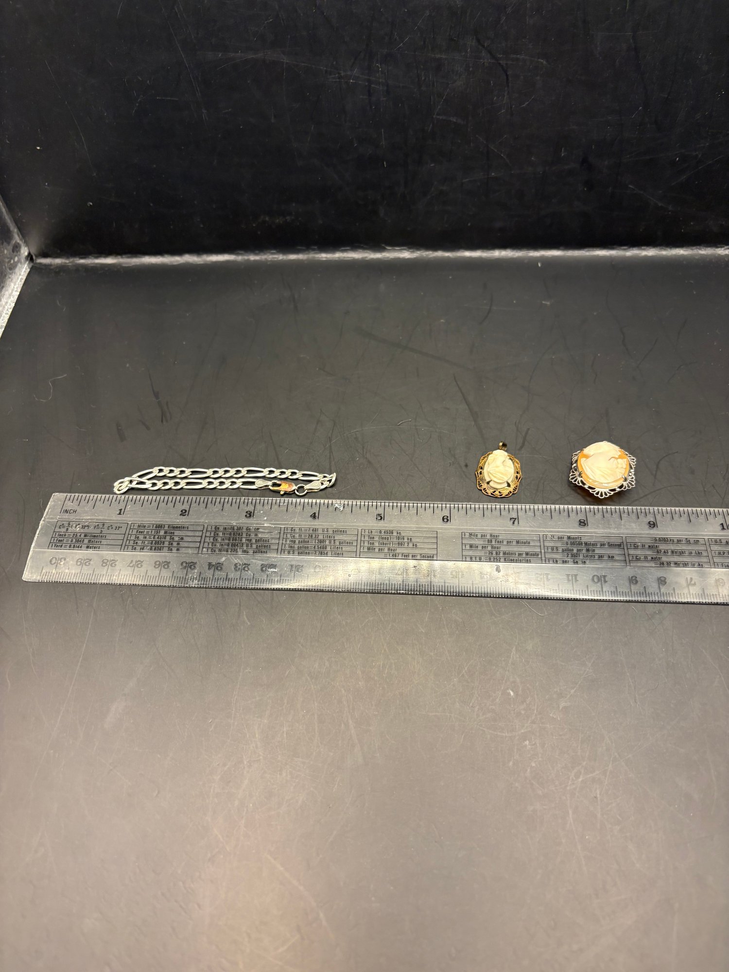 925 Sterling cameos one the pin and one is an vintage necklace pendant along with a 925 bracelet with a replacement clasp that is not 925