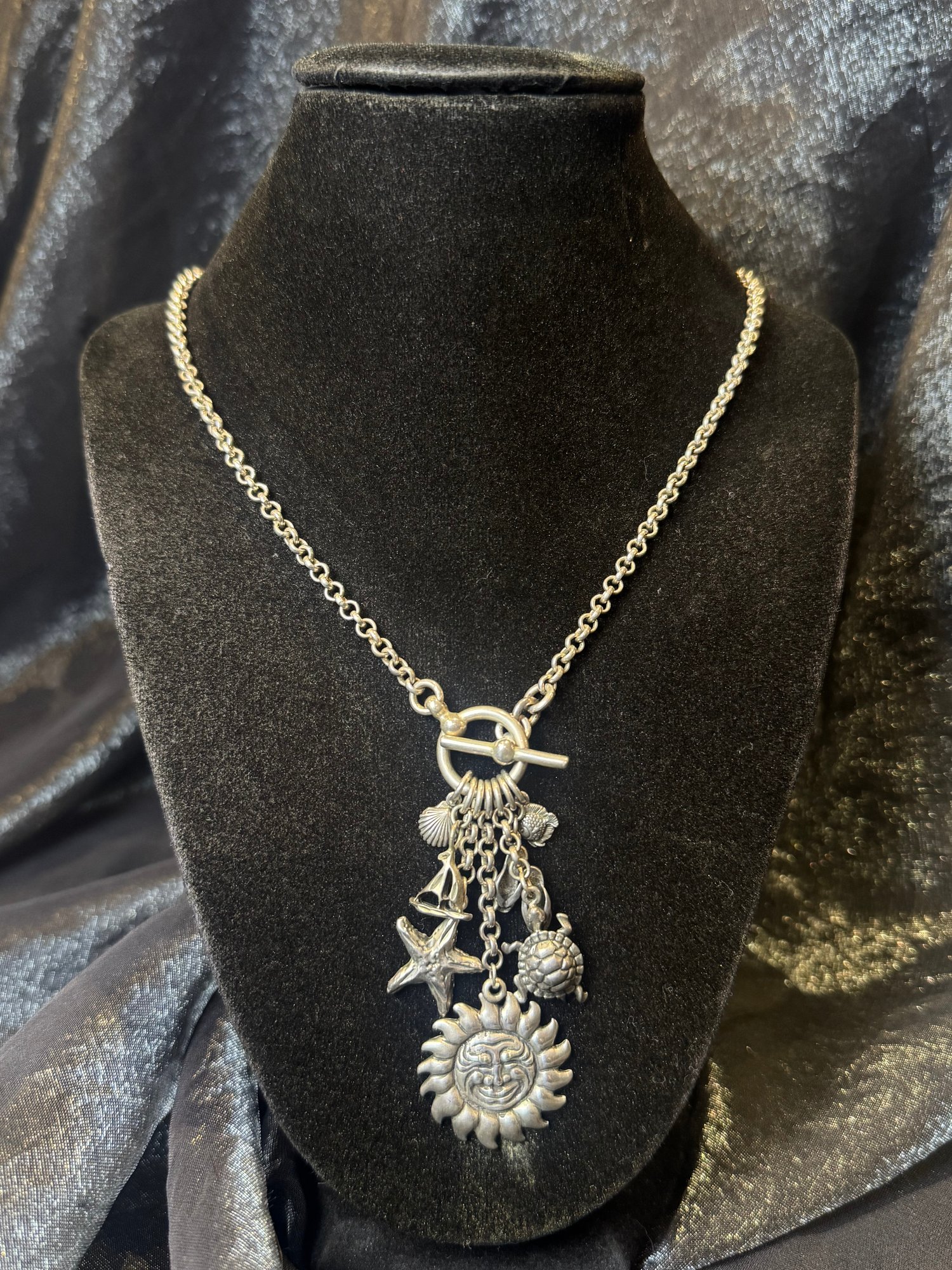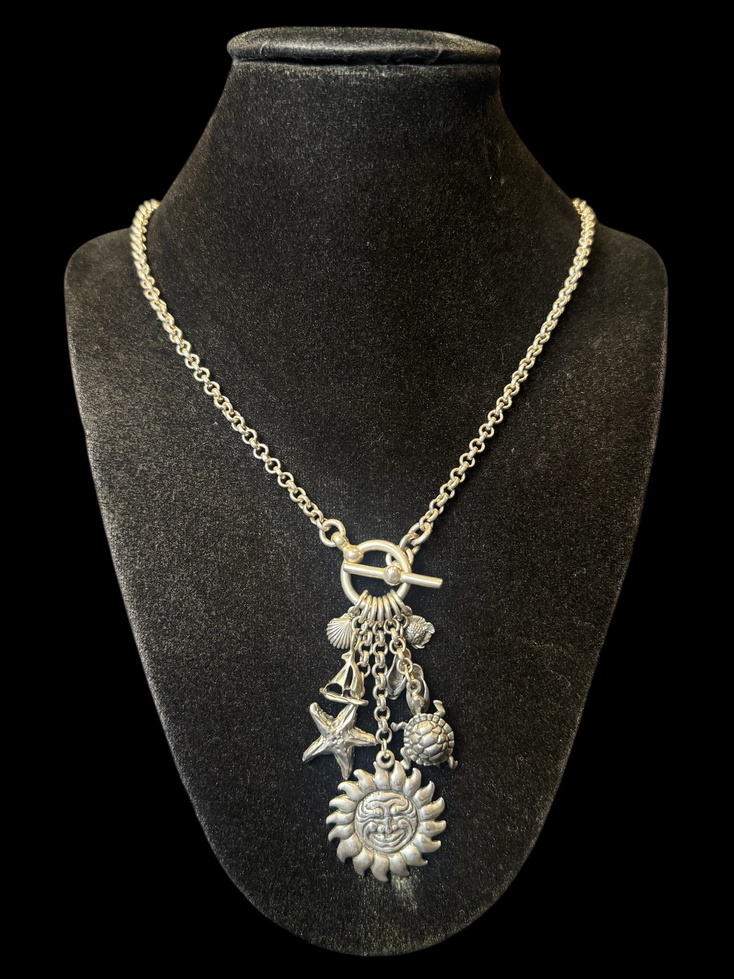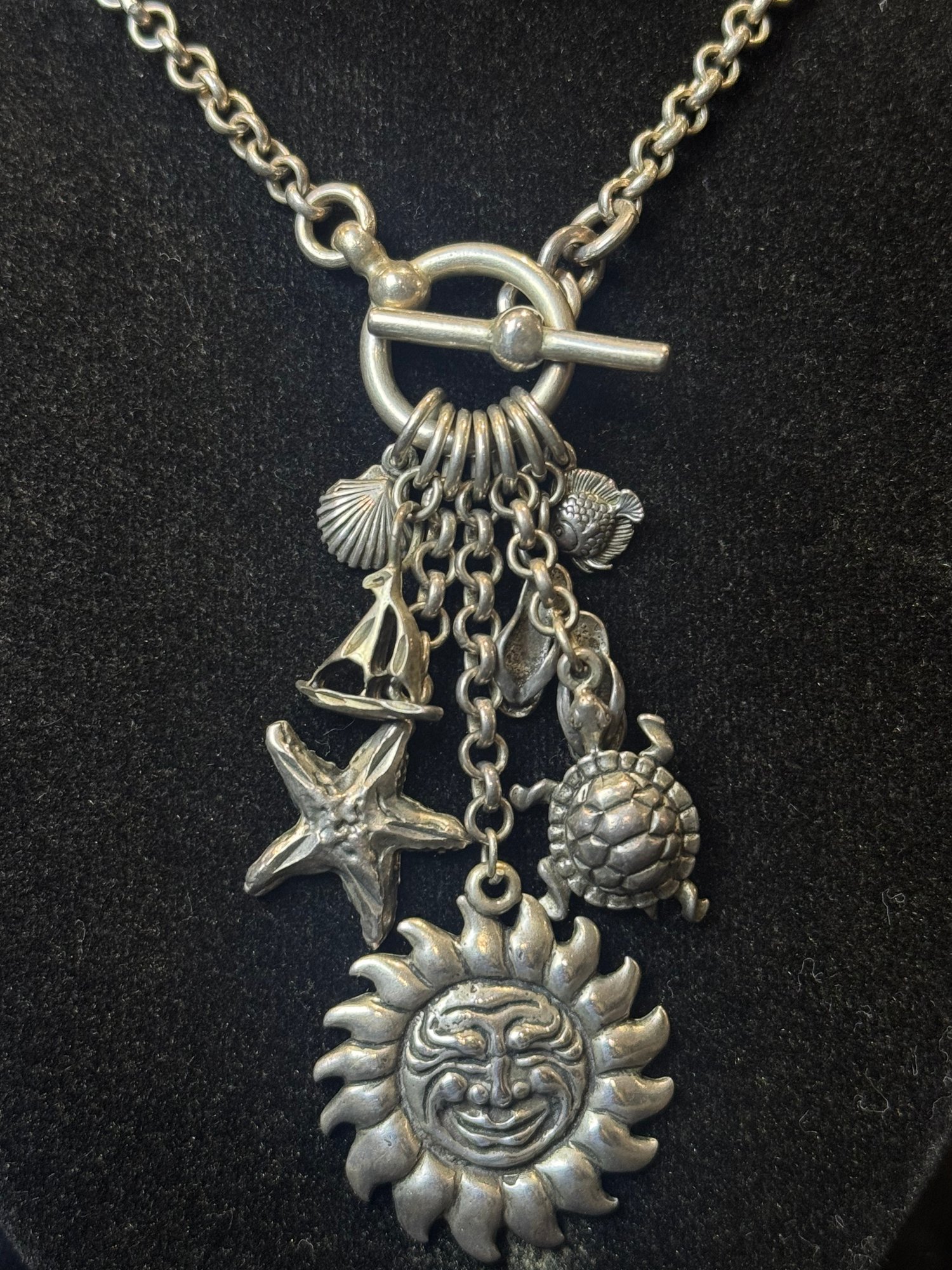 Charms include: sun, turtle, starfish, flip flops, sailboat, seashell, fish