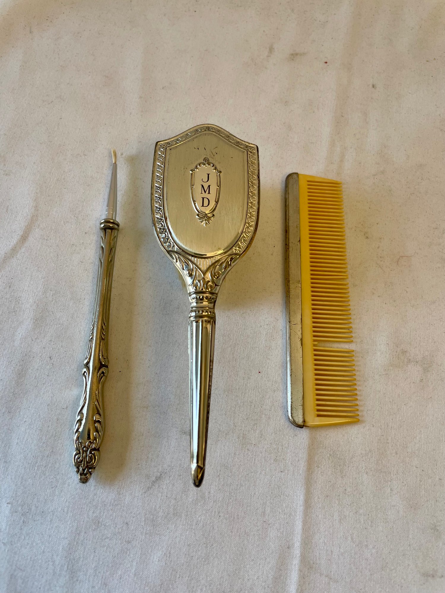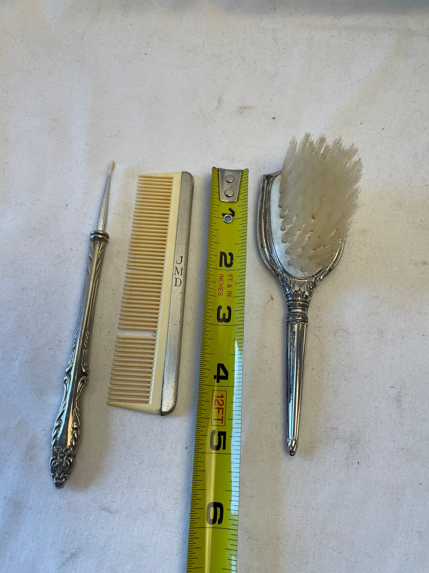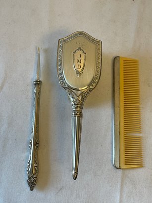 Comb and brush are marked ‘WEB sterling’