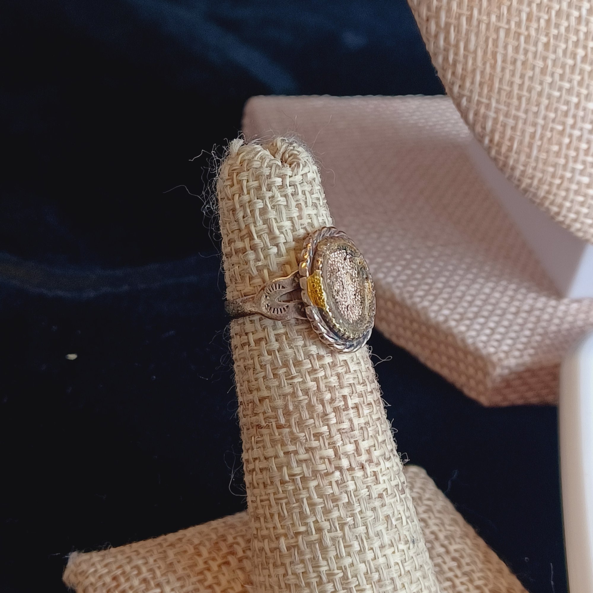 Ring is a size 3.5, missing a stone