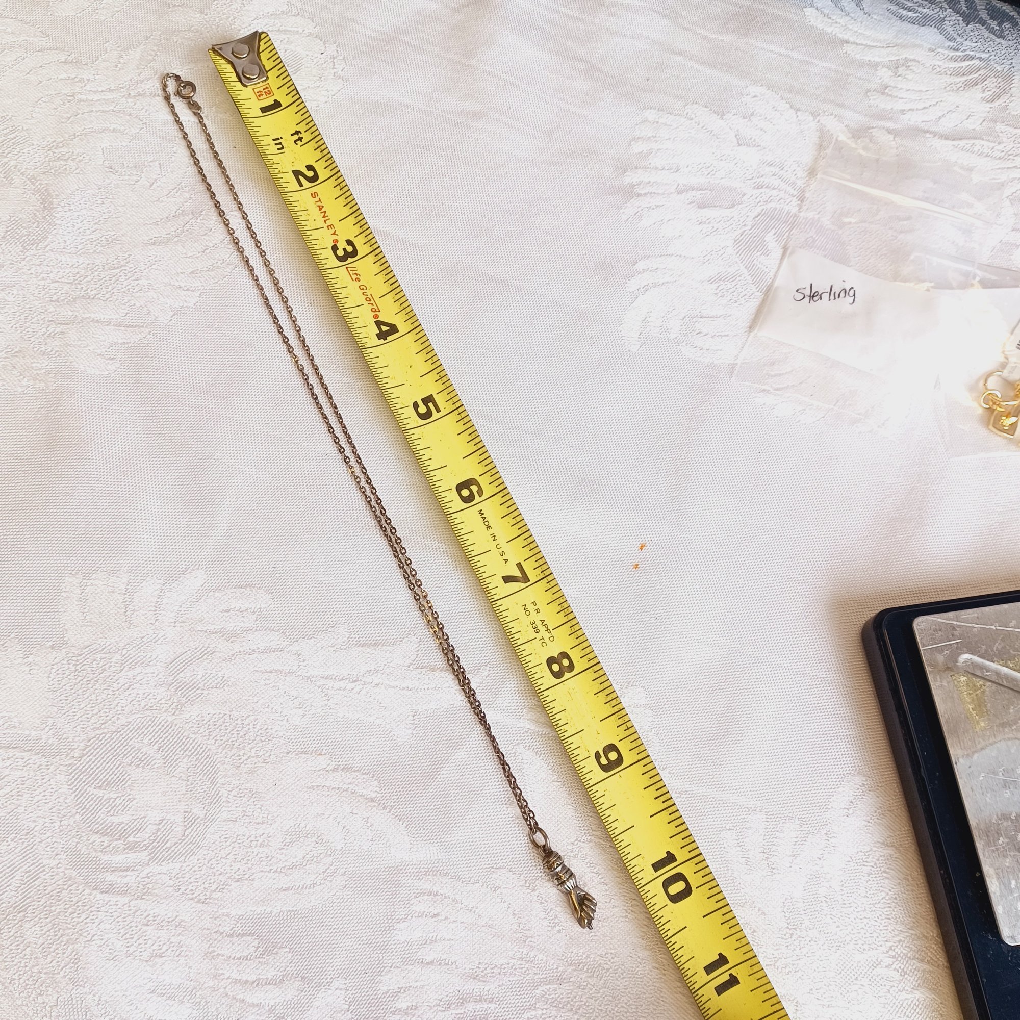 Necklace: 18" long; 800 sterling and Mano Figa pendant
