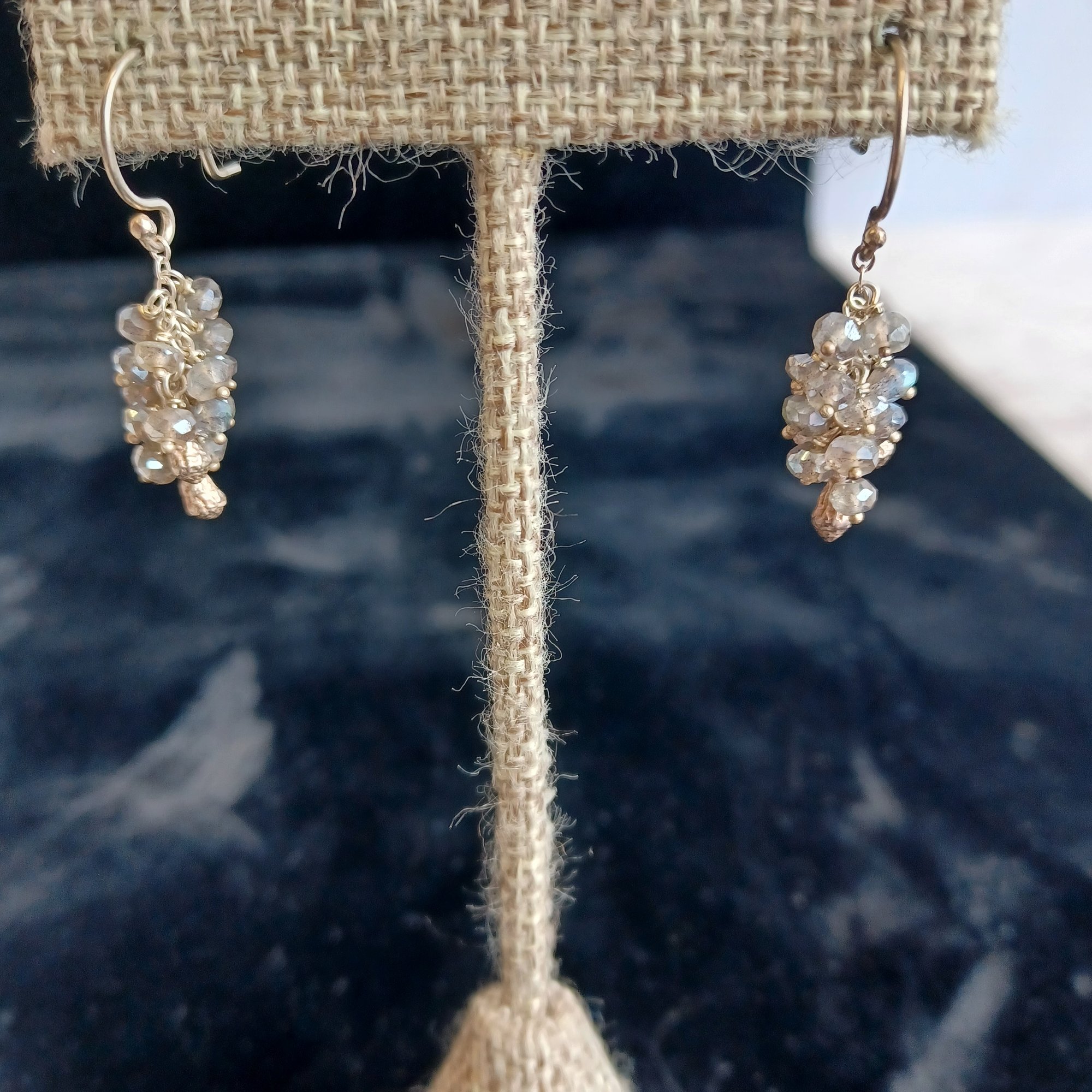 Earrings are silver and crystal