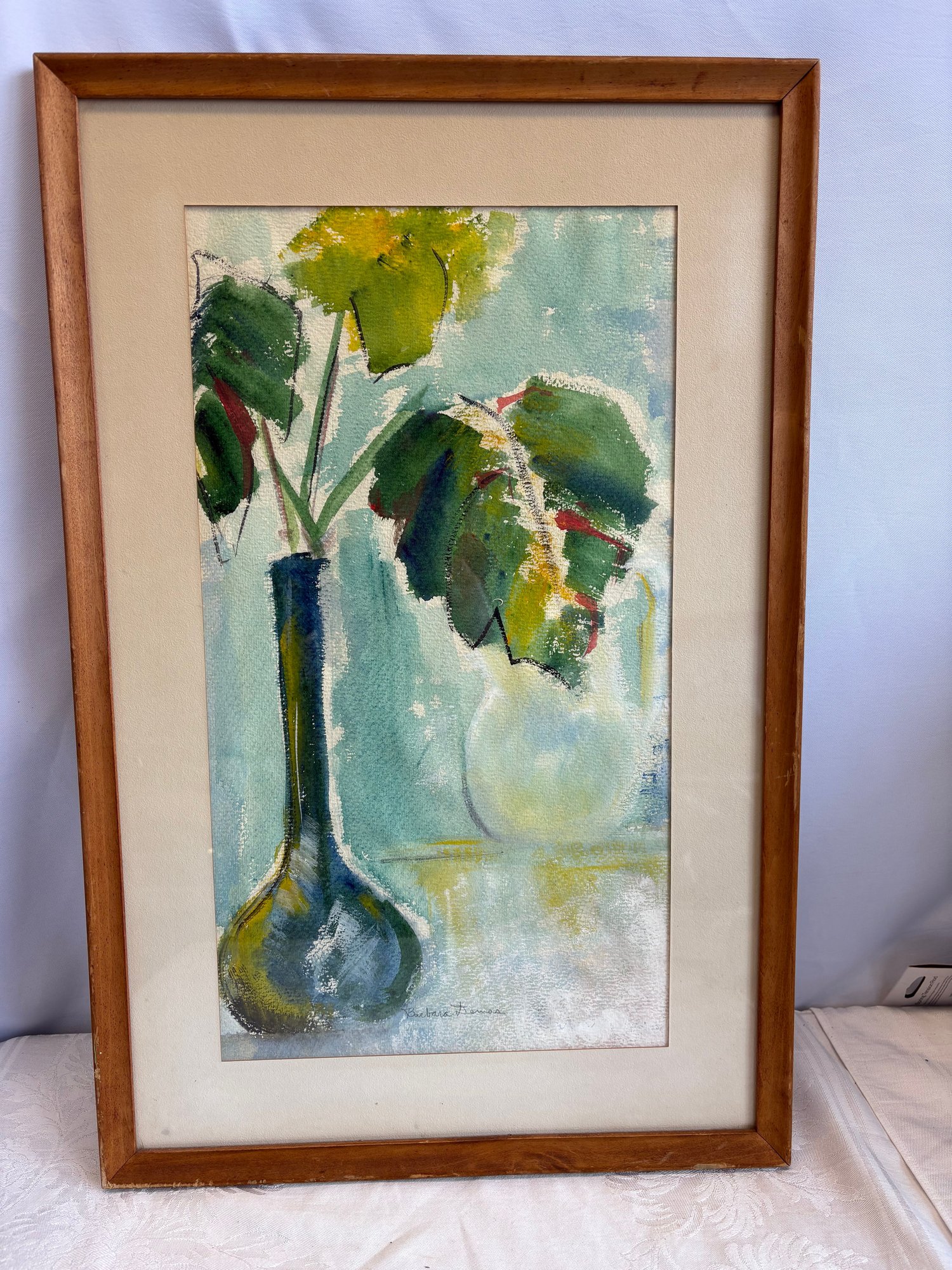 original Mid-Century Watercolor on Paper still life painting by artist Maxine James. Barbara James singed 16 by 24