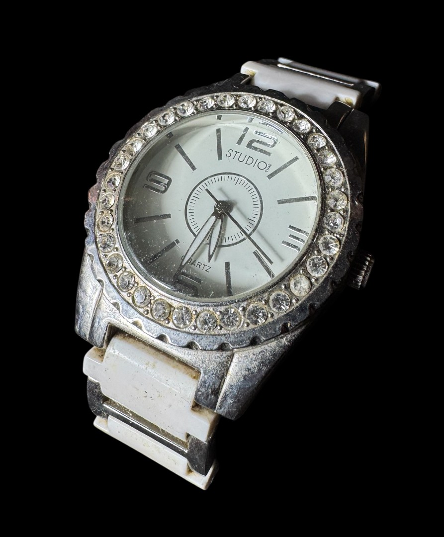 Studio Time Quartz Dial Faux Diamond Studded Ladies Wrist Watch