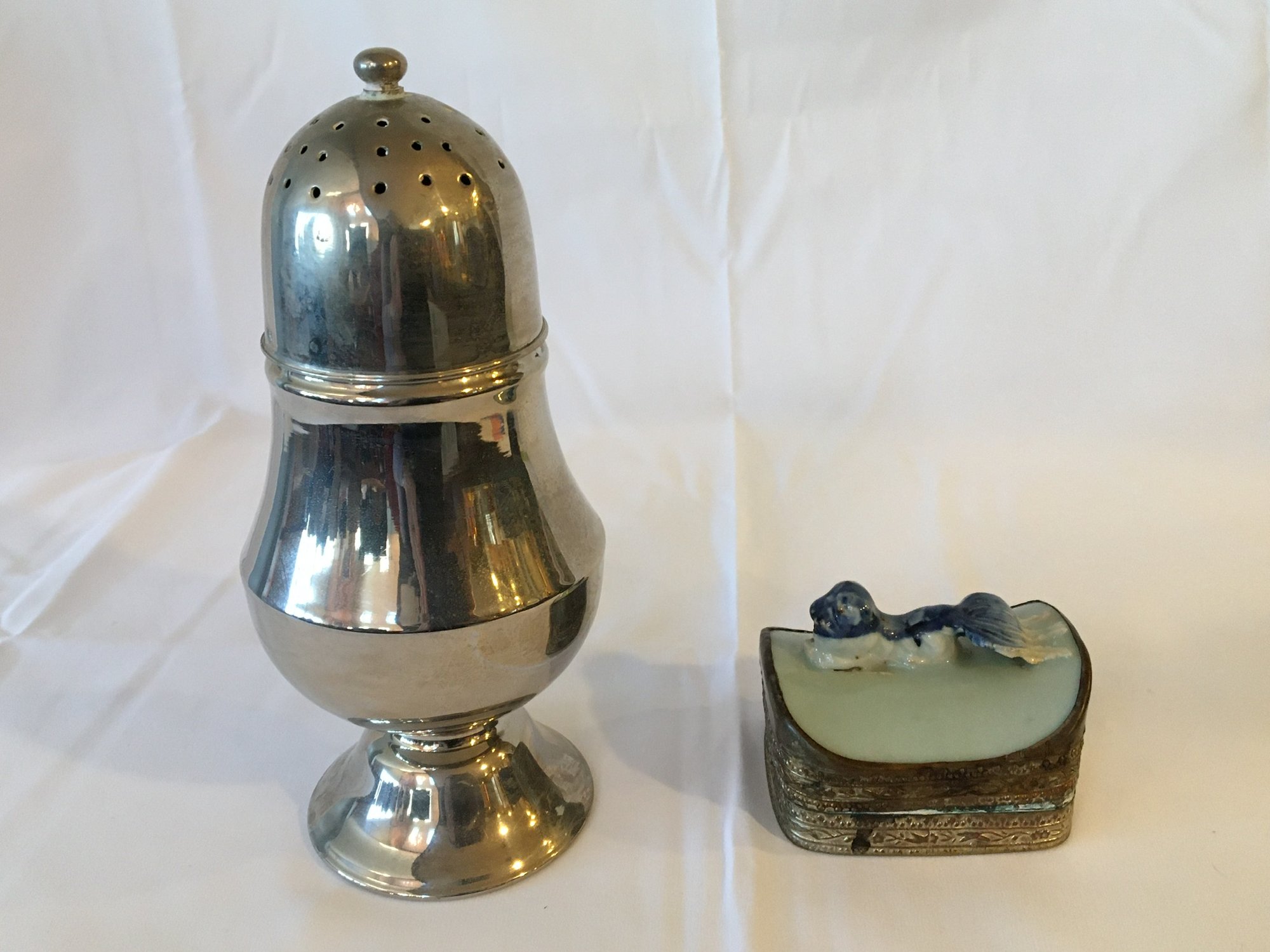 Trinket box has decorative ceramic top