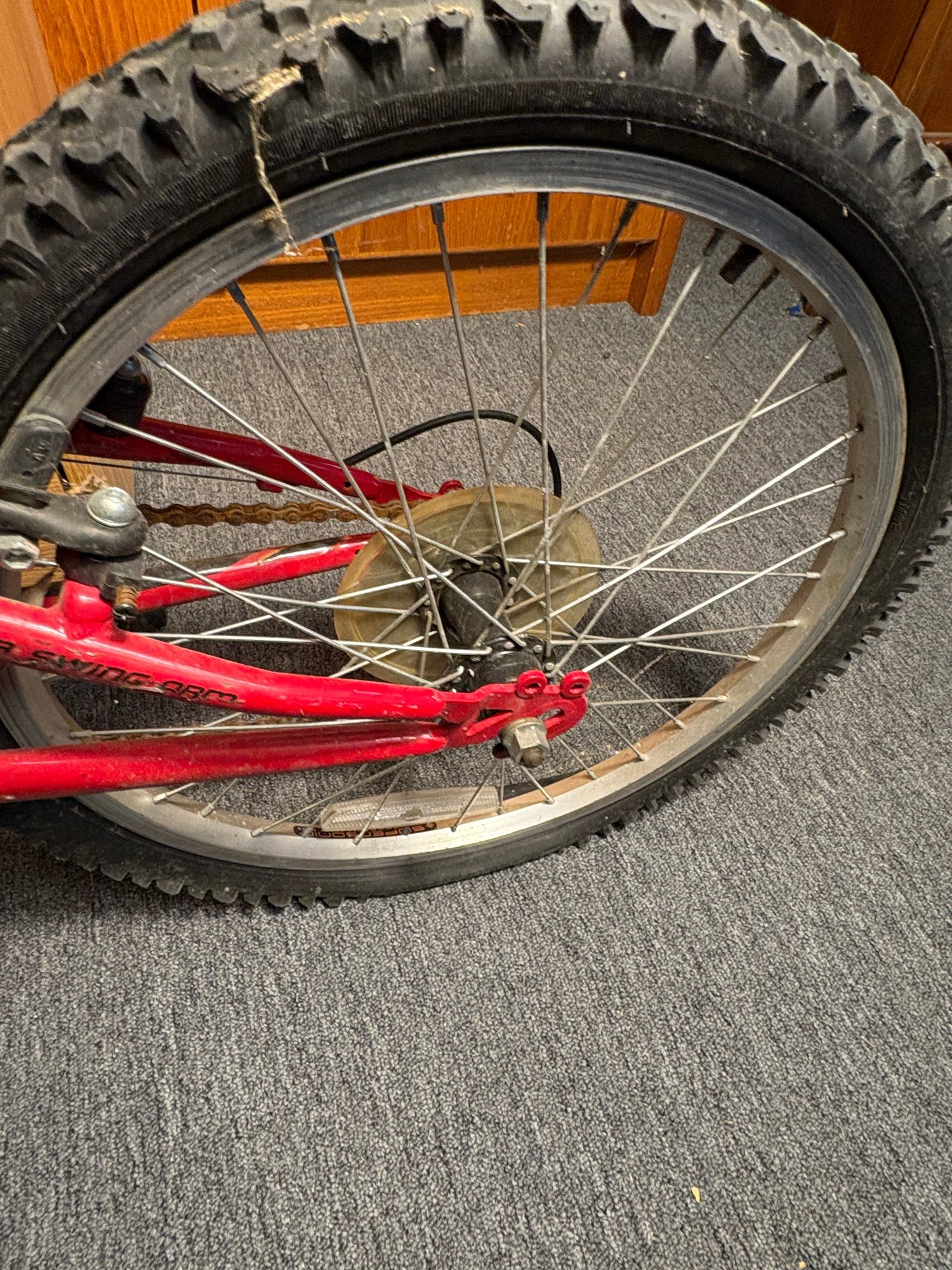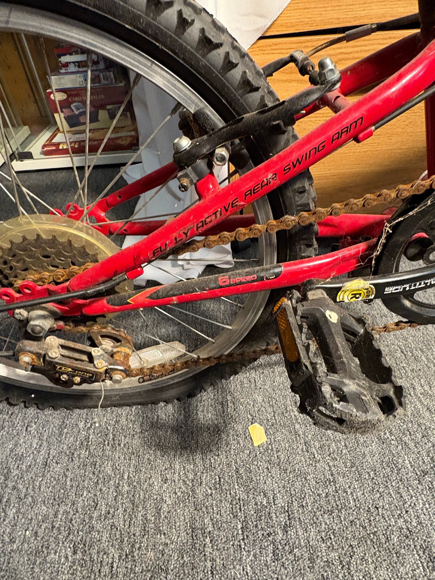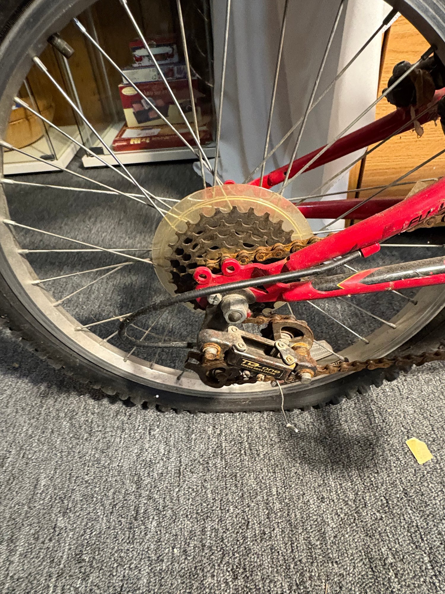 Notes: Bikes tires are deflated and some of the gears are a little rusted and has a hole in the seat