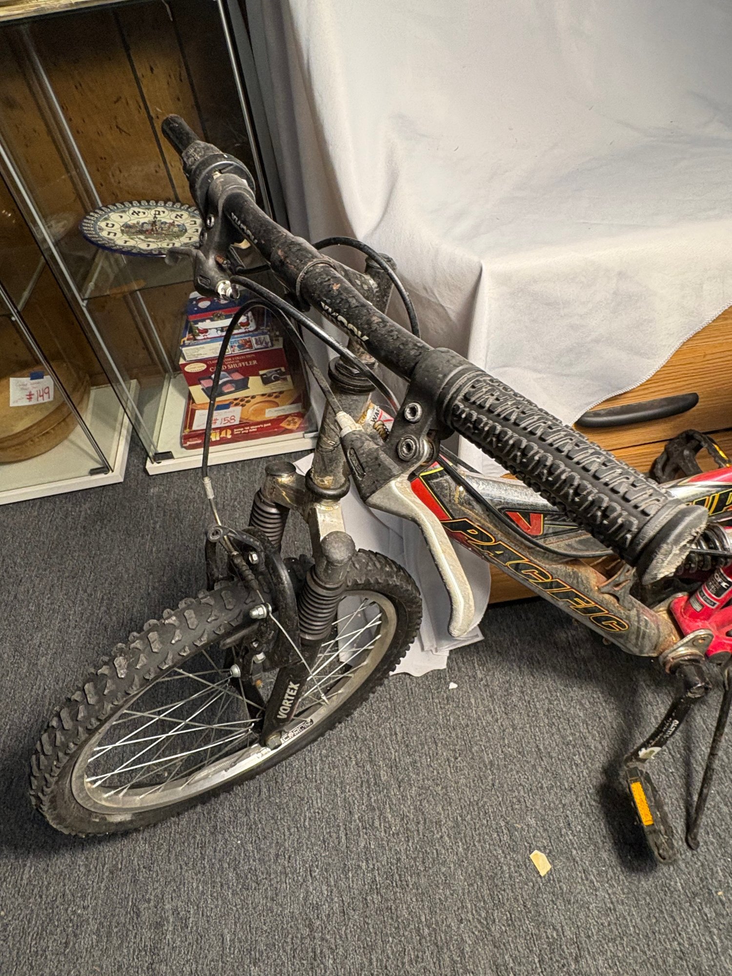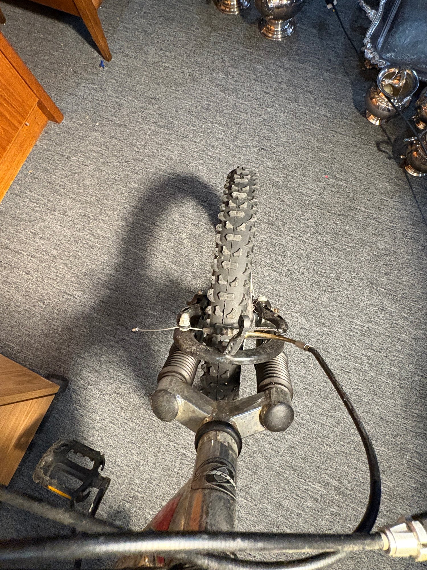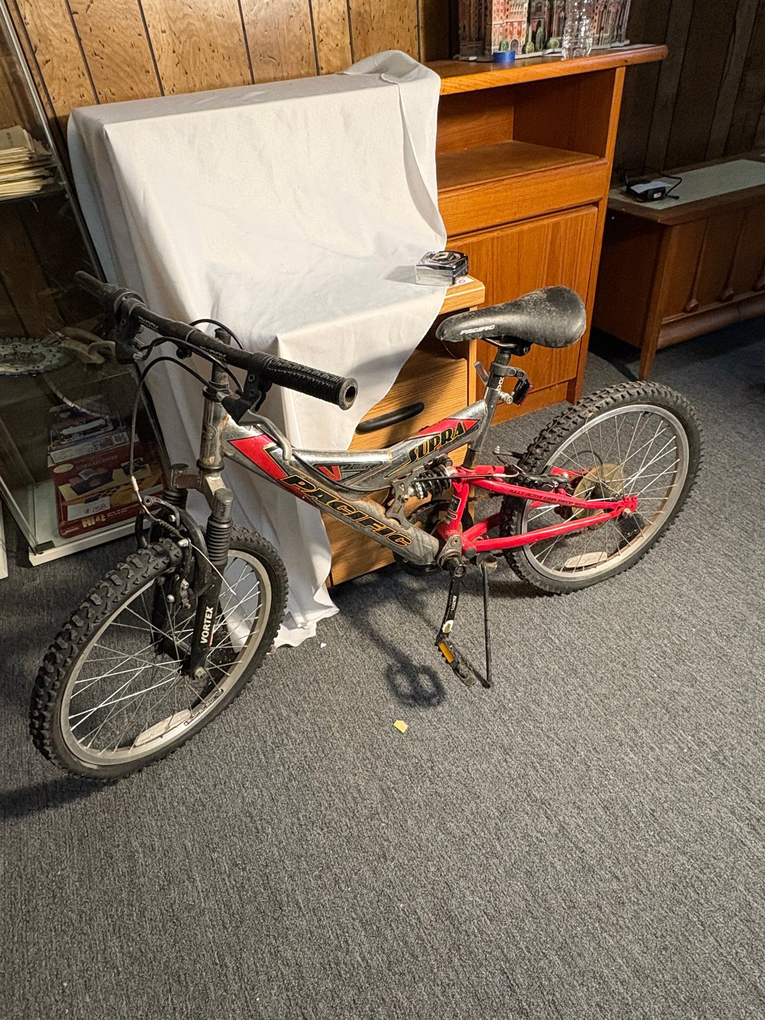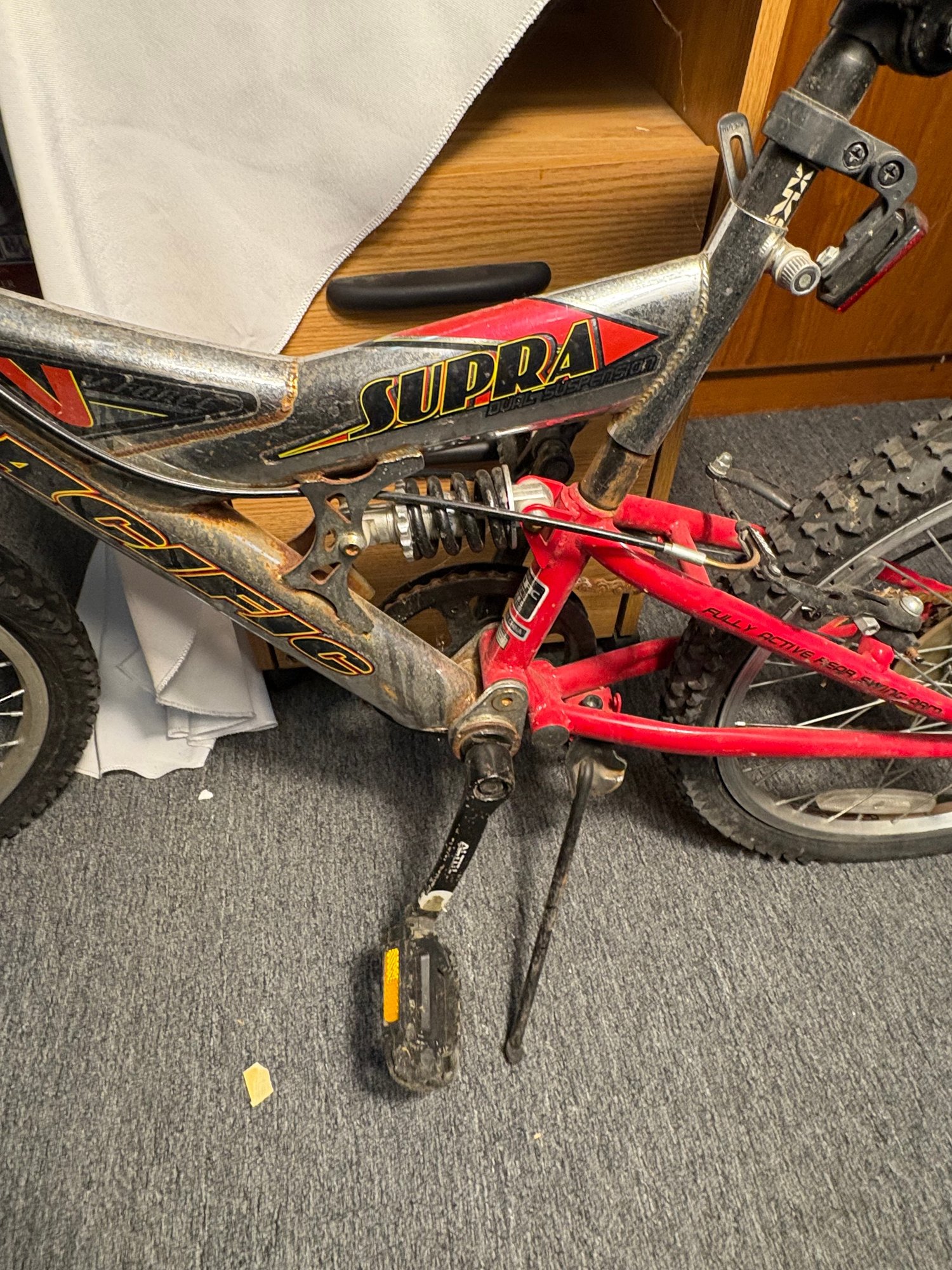 Notes: Bikes tires are deflated and some of the gears are a little rusted and has a hole in the seat