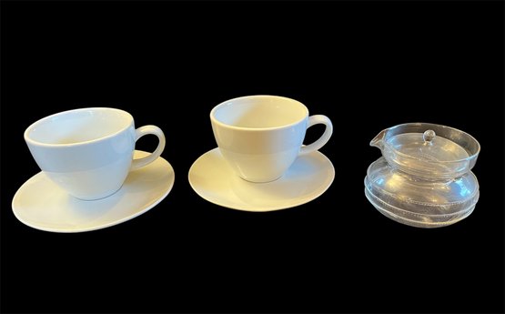 Sur La Table Teacup And Saucer Set & Thin Glass Dispenser (K)