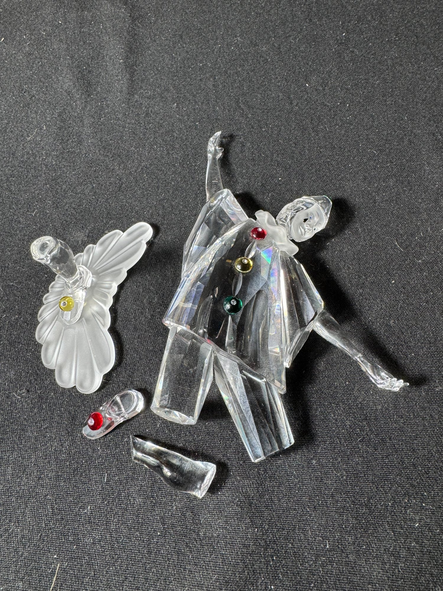 swarovski clown is broken into four pieces & needs to be glued back together