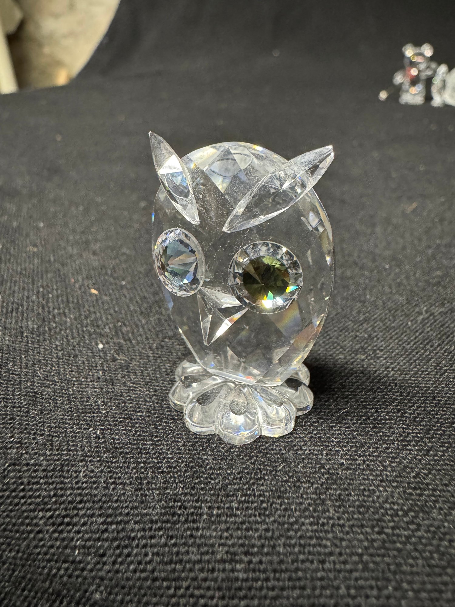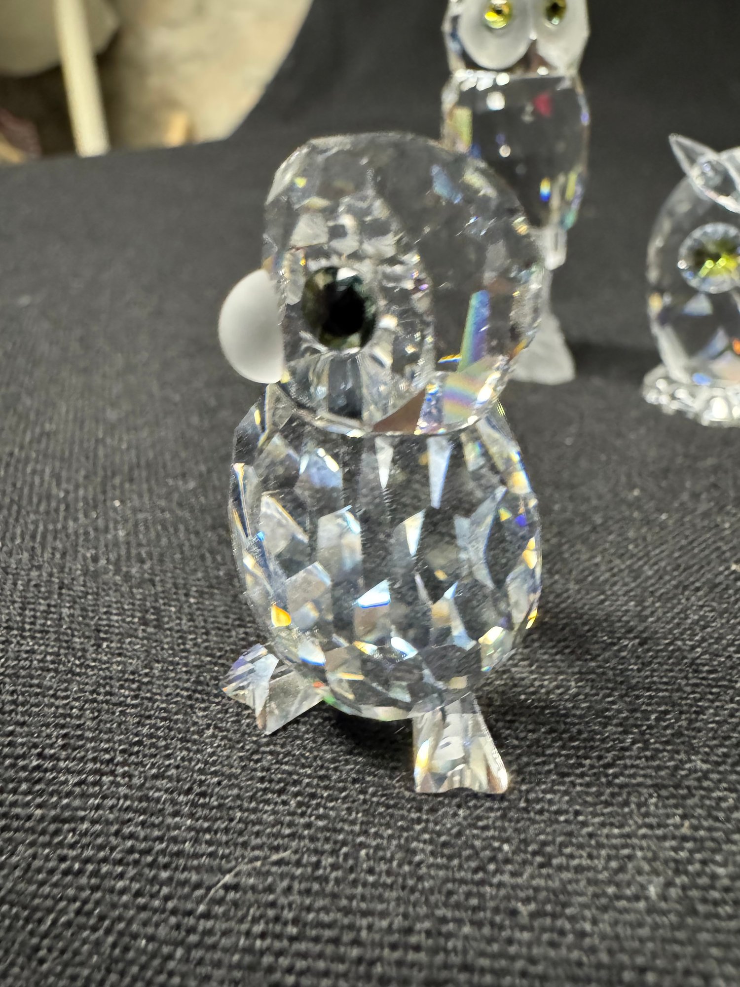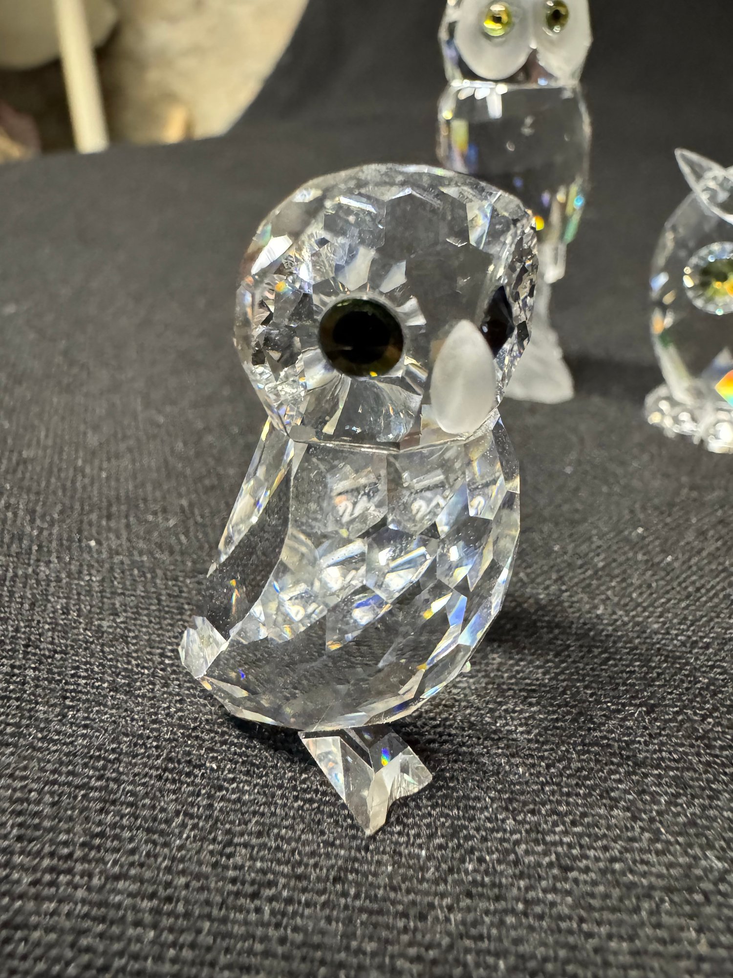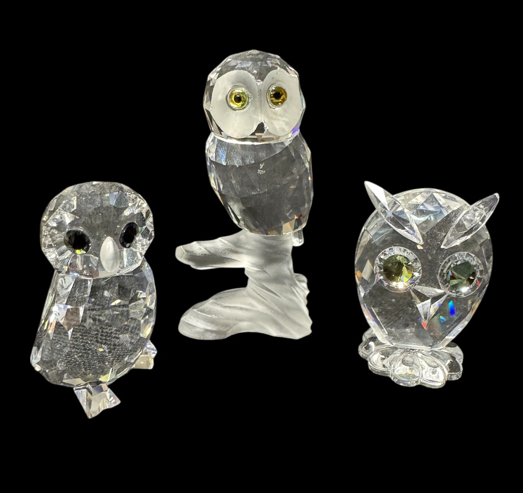 includes three crystal owls by Swarovski