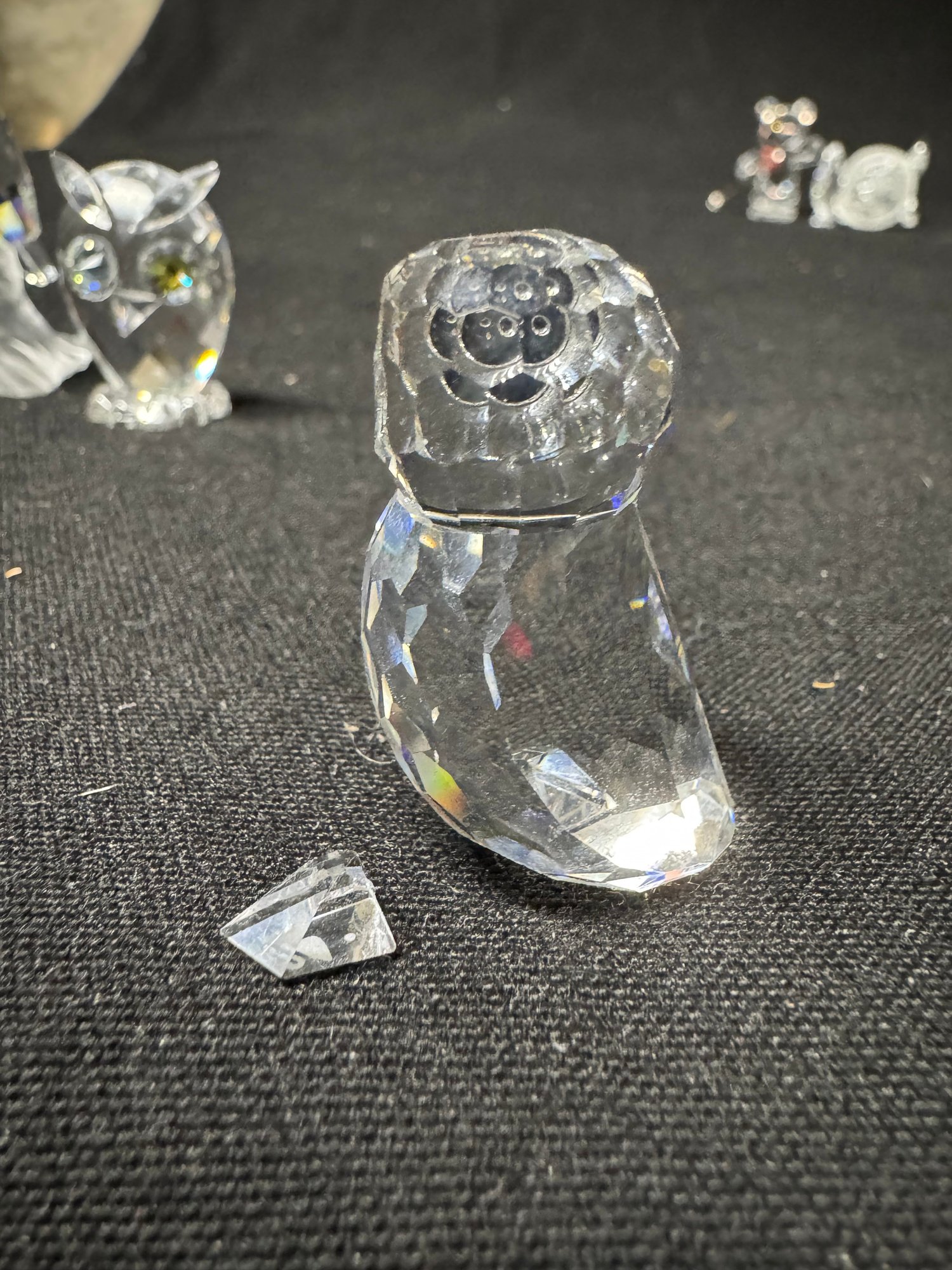 one owl has a broken foot that needs to be glued back on