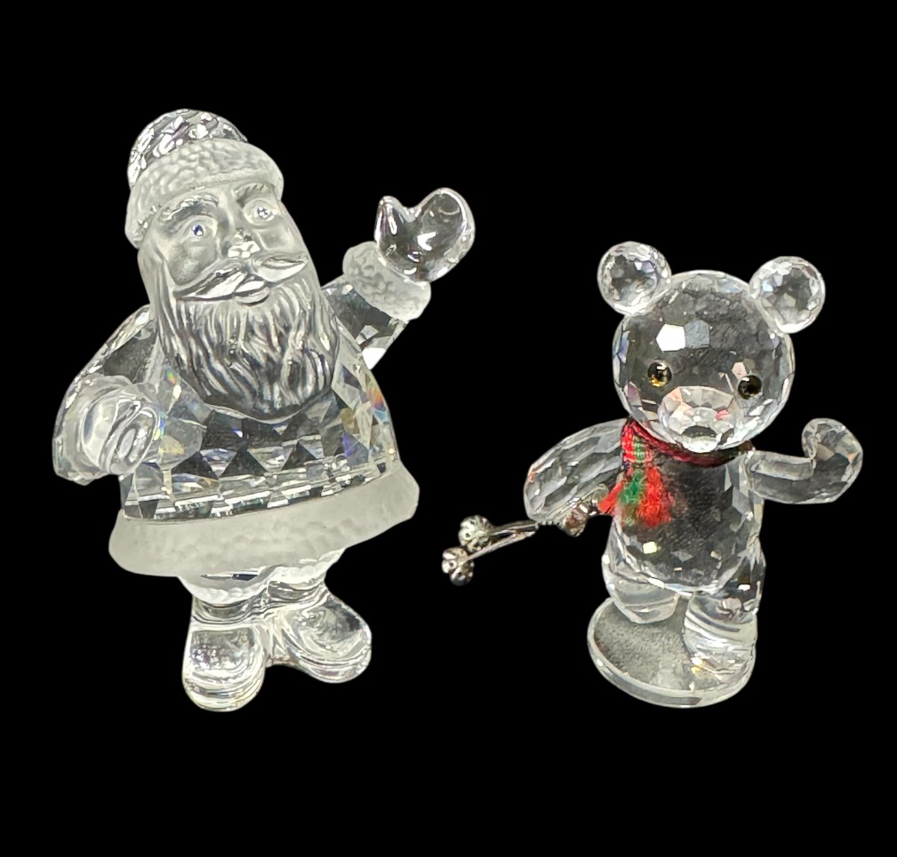 includes the Santa Claus & Teddy Bear Swarovski crystal figurines, along with one additional piece that is marked Swarovski but is chipped