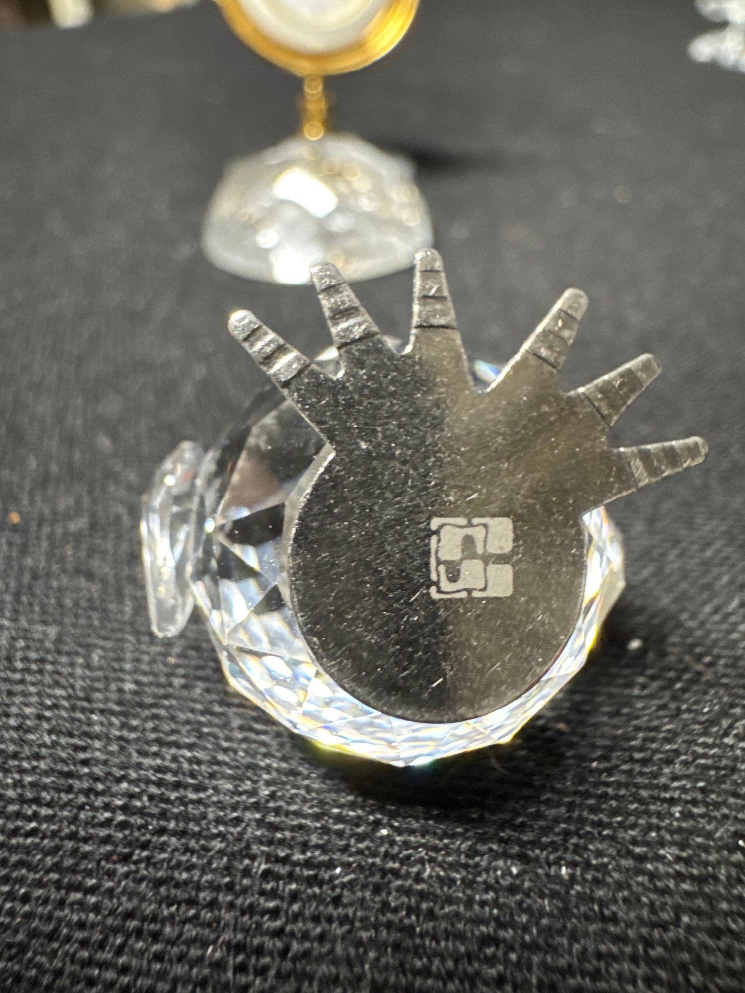 includes three pieces of Swarovski crystal