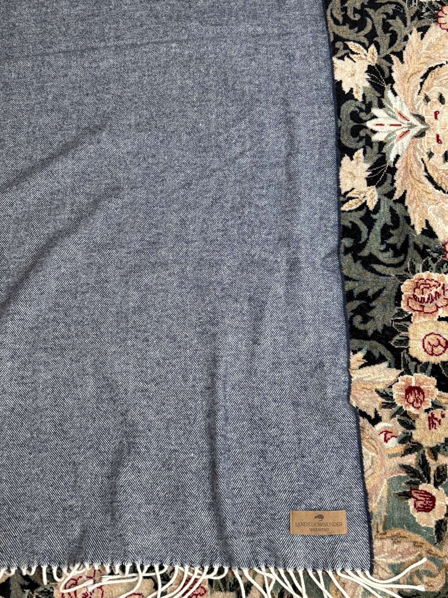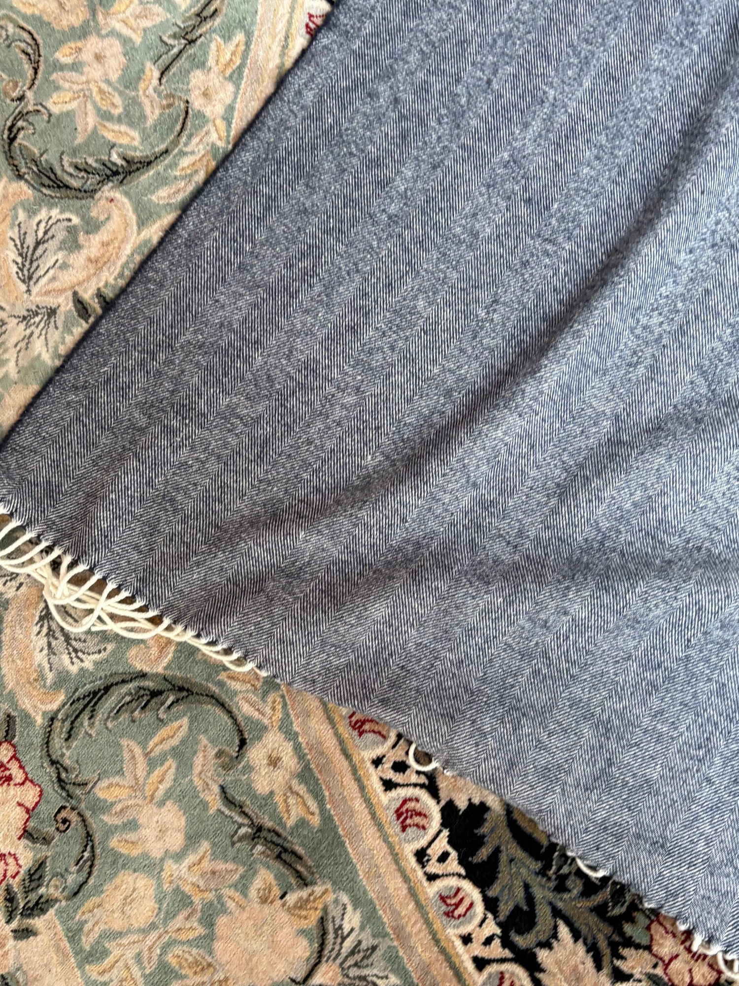 Pattern: Tasteful herringbone pattern with decorative fringe detailing