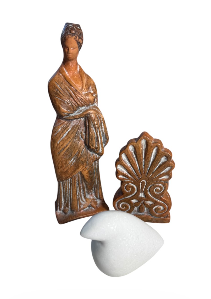 figurines appear to be terracotta but they are actually a resin material