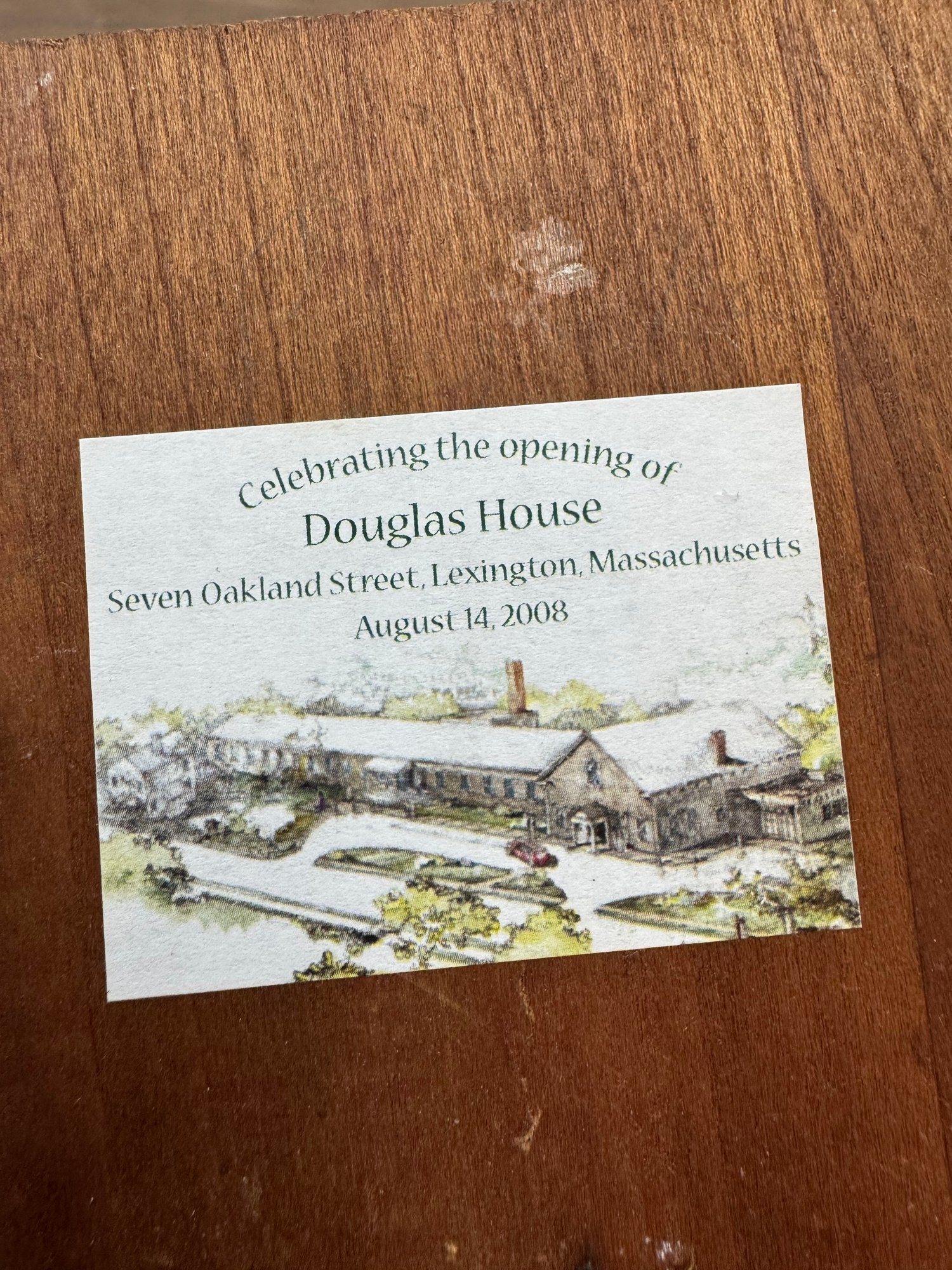 The Douglas House Lexington Mass Grand Opening Printing Block
